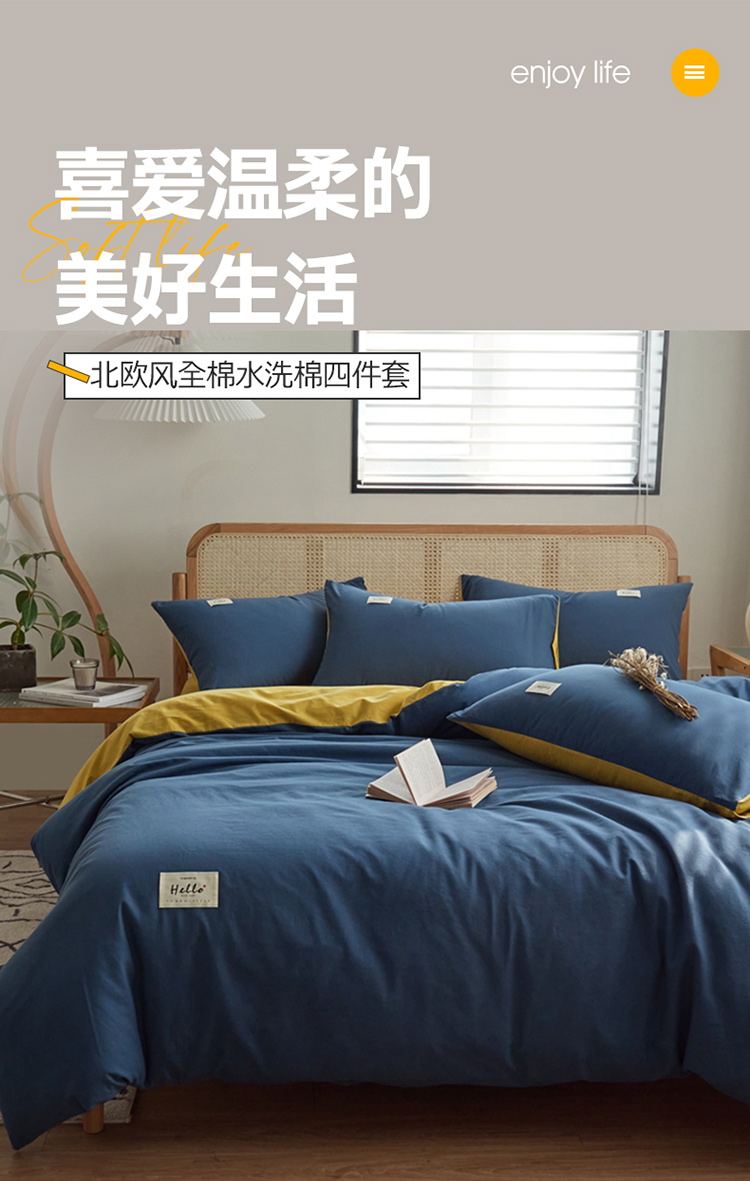 当前位置: 91家纺网 > 商品网购 > 床品套件 > 四件套 > 水洗棉四件套 > AB家纺 2022新款全棉水洗棉四件套 蔚蓝黄