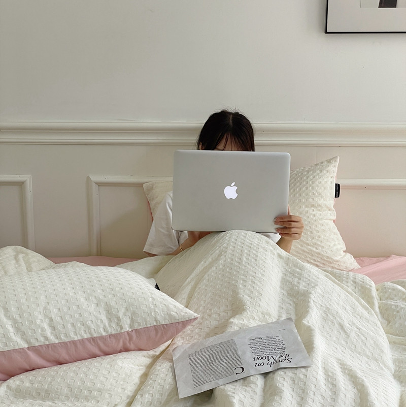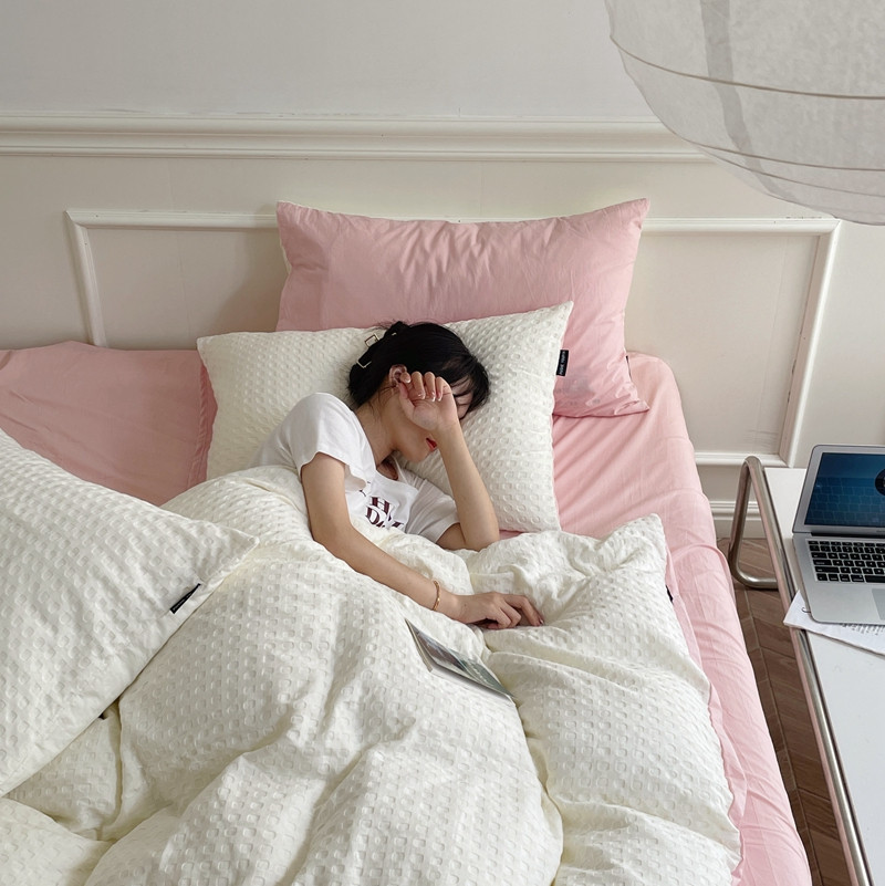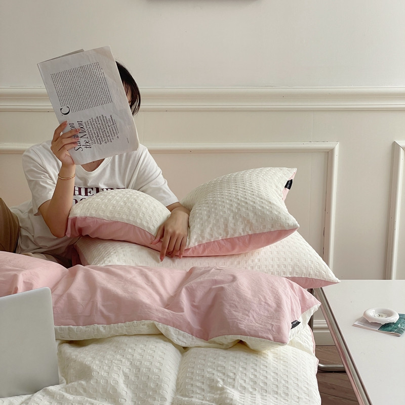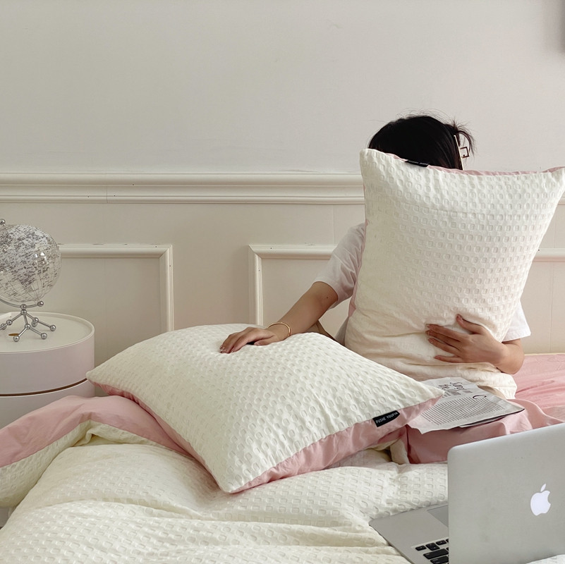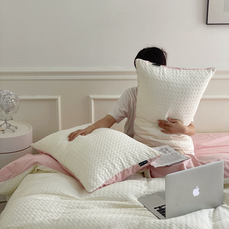 当前位置: 91家纺网 > 商品网购 > 床品套件 > 四件套 > 全棉普通四件套 > 梦享生活家居 2022新款华夫格四件套 奶昔双拼水粉