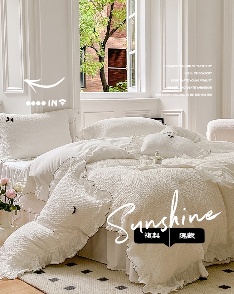 (总)婳庭家居 2025新款双层纱褶皱花边款四件套,春野来信,繁梦,玫瑰故事,清秋,云上,紫萱