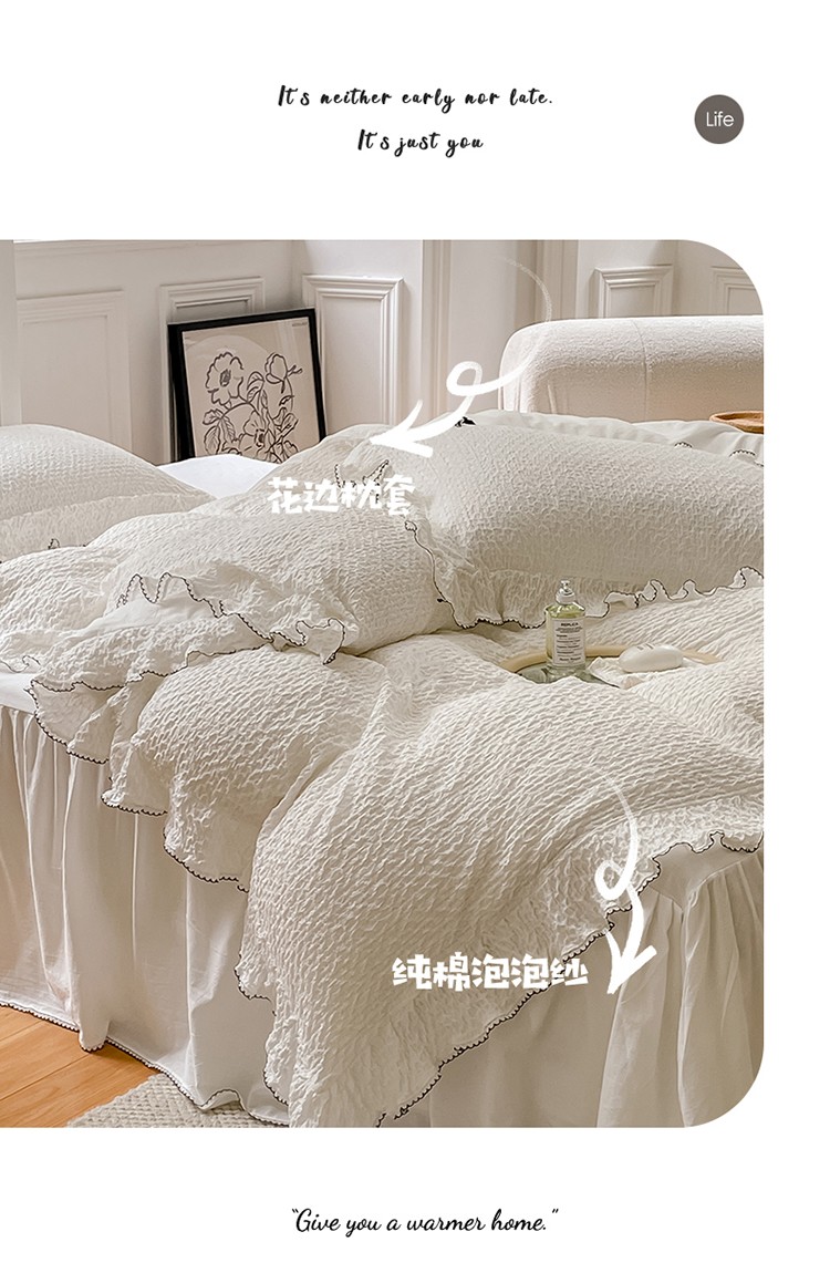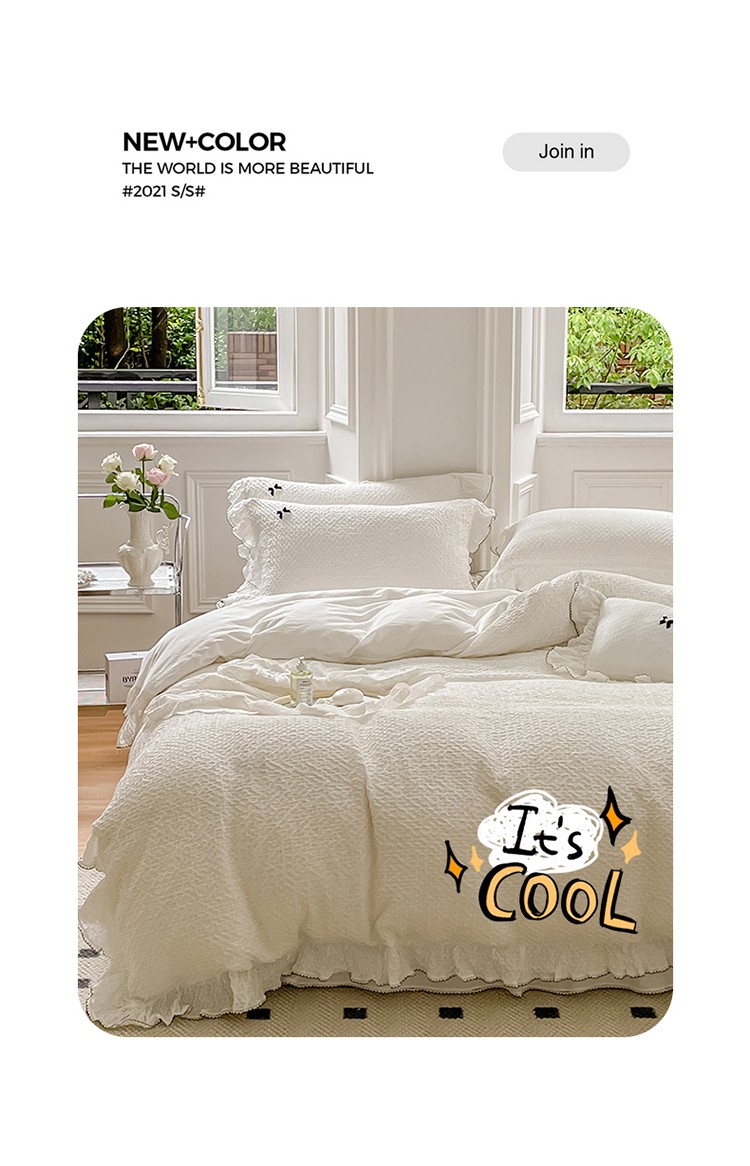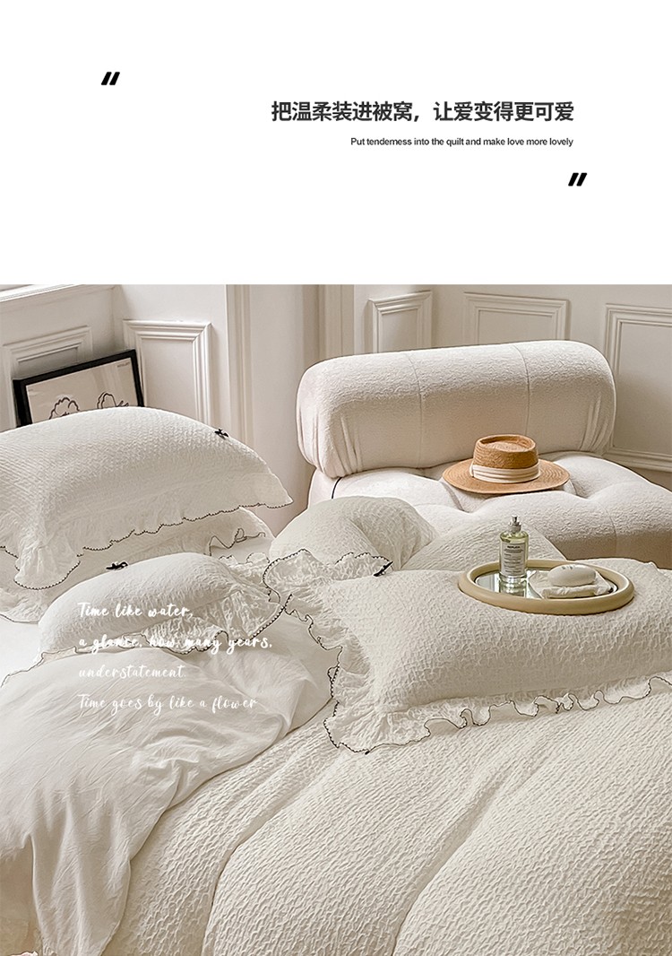 商品名称:婳庭家居 2023新款雪山系列全棉泡泡纱四件套 雪山-奶油白