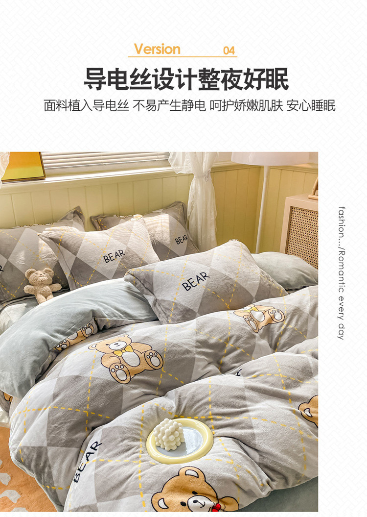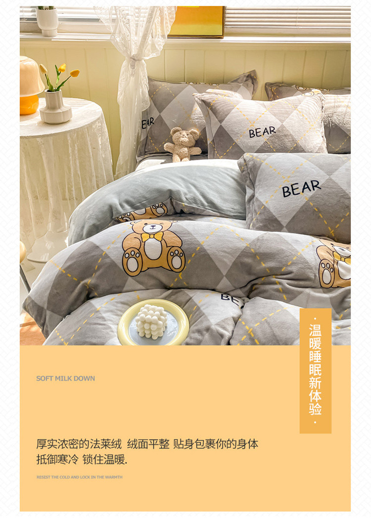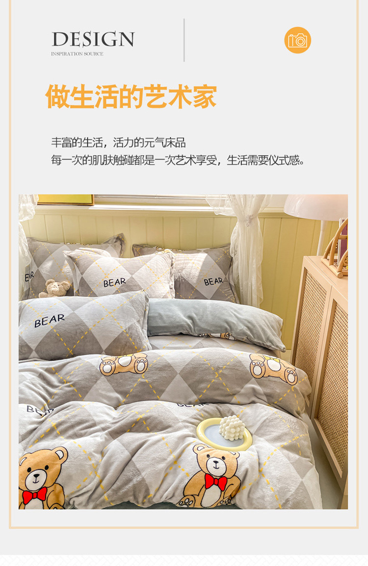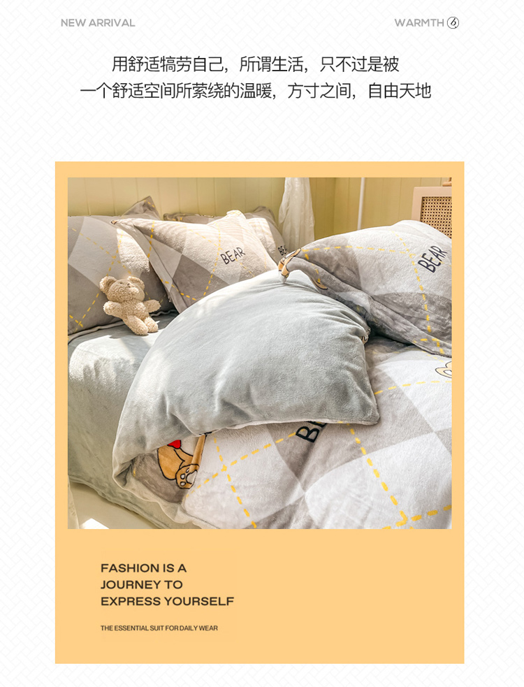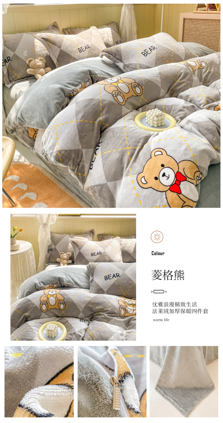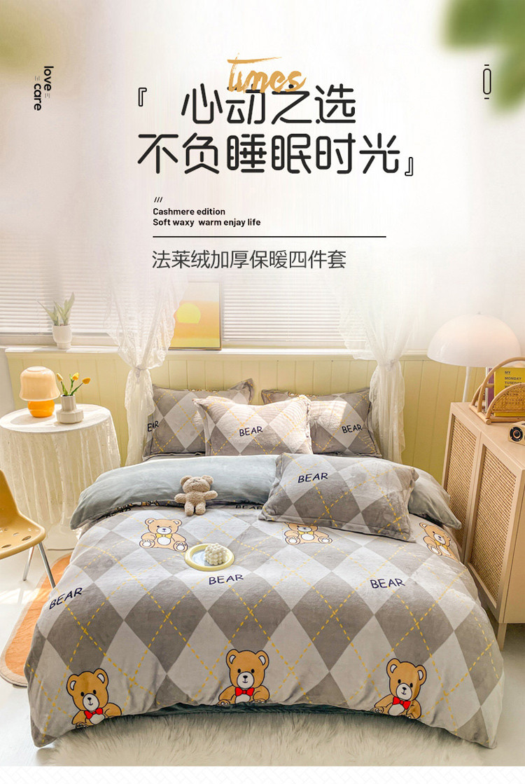 当前位置: 91家纺网 > 商品网购 > 床品套件 > 四件套 > 法莱绒四件套 > 柒月家居 2022新款小清新法莱绒四件套 菱格熊
