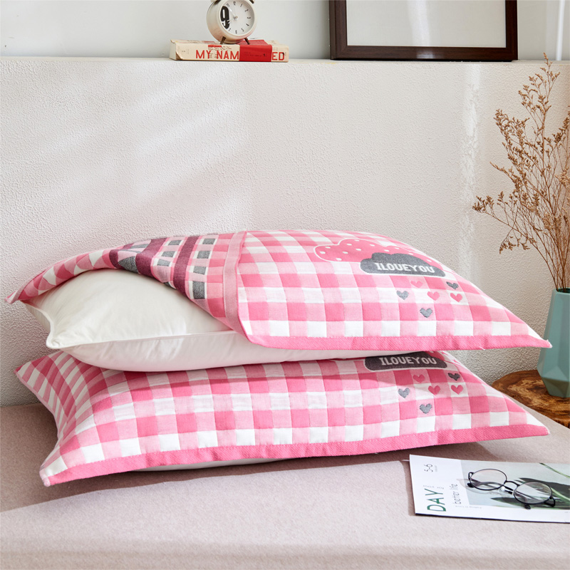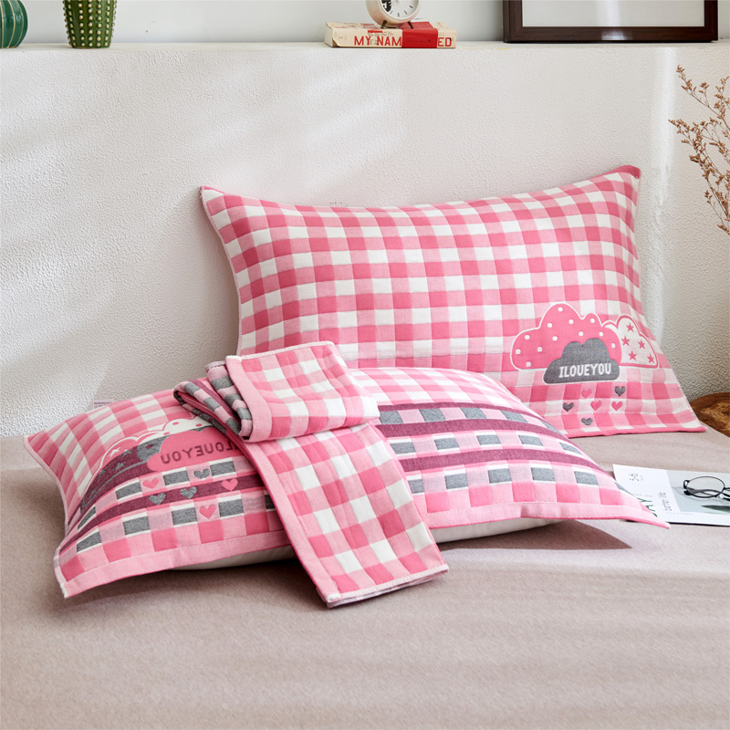 • 91家纺网 家纺一手货源 找家纺 朴尔 2022新款三层纱布枕巾(一对) 云朵-粉(52*78)