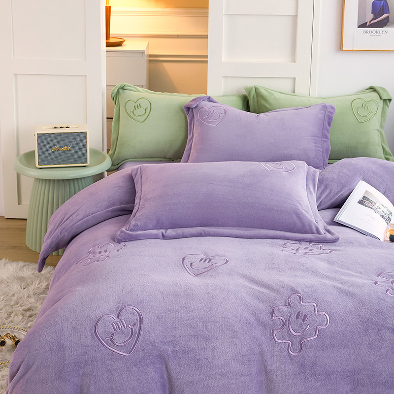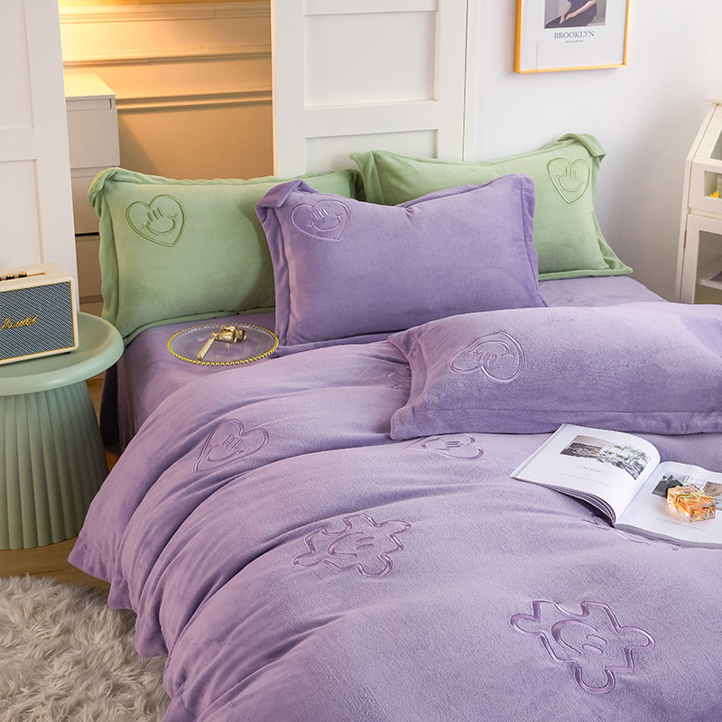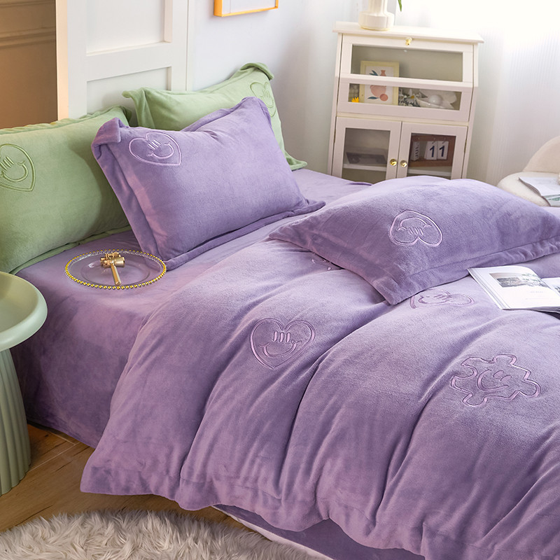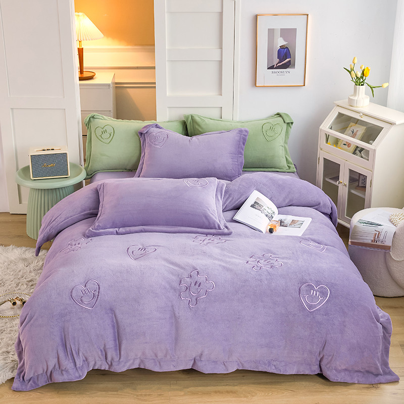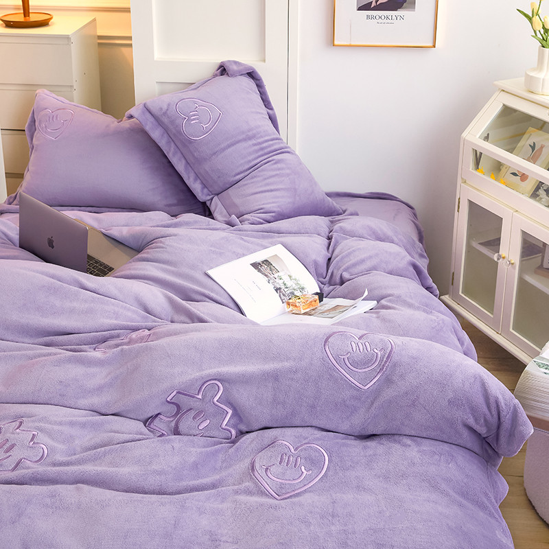 凡客家居 2022新款牛奶绒立体绣花四件套 星际潮牌-仙紫