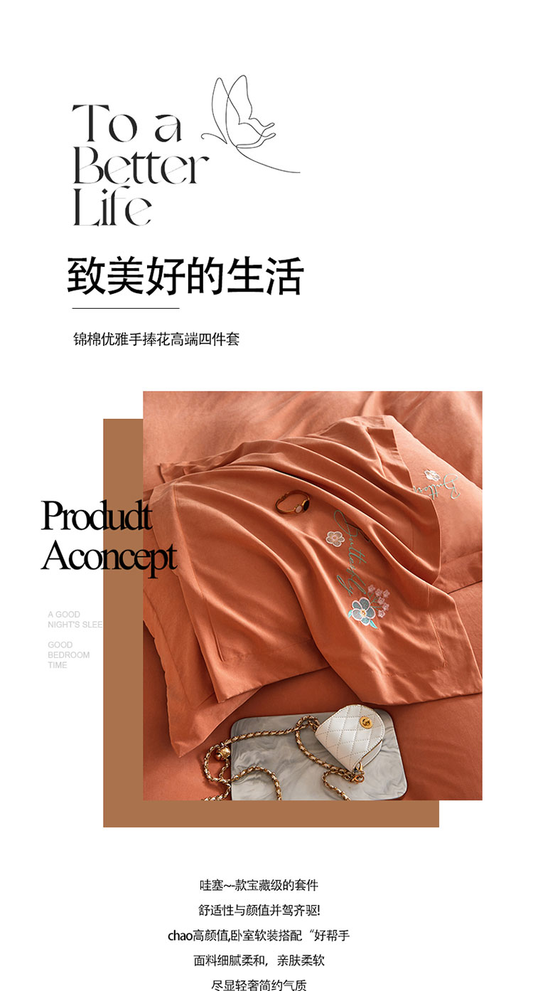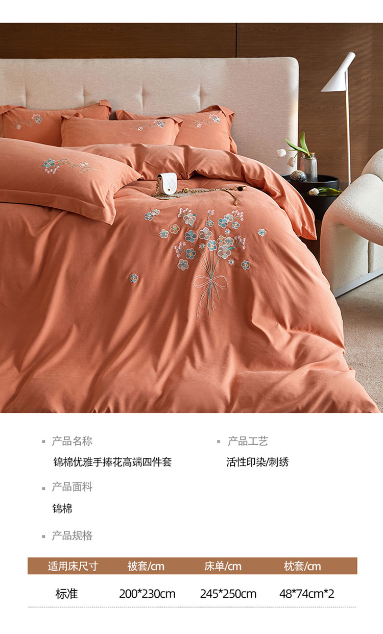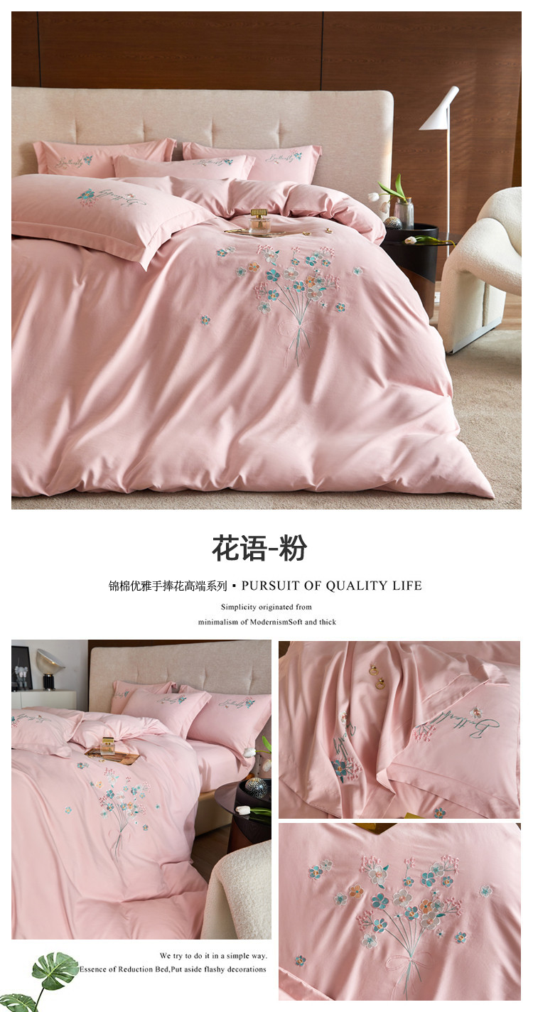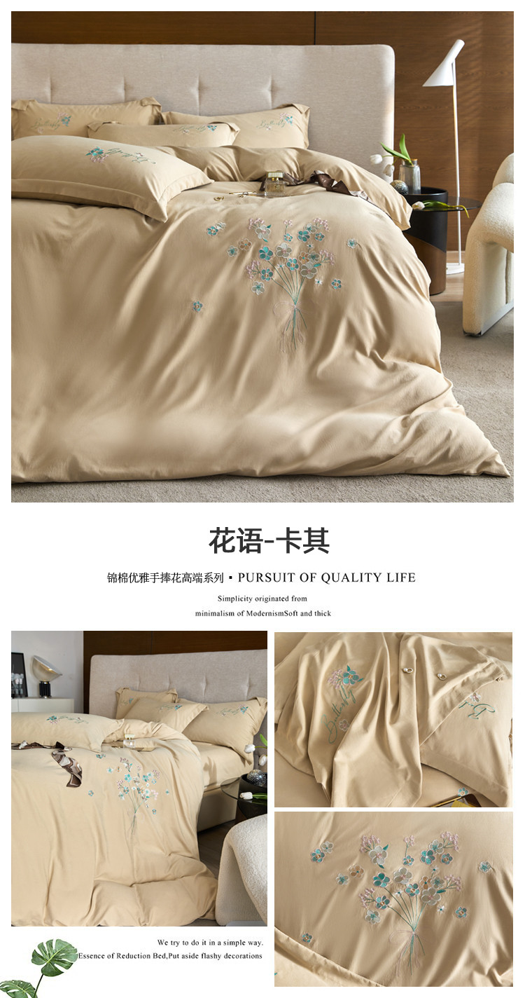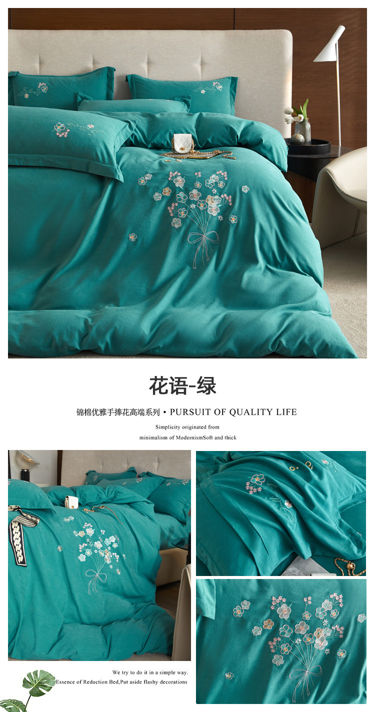 (总)凡客家居 2022新款60支高端锦棉优雅手捧花绣花系列四件套学生宿舍三件套