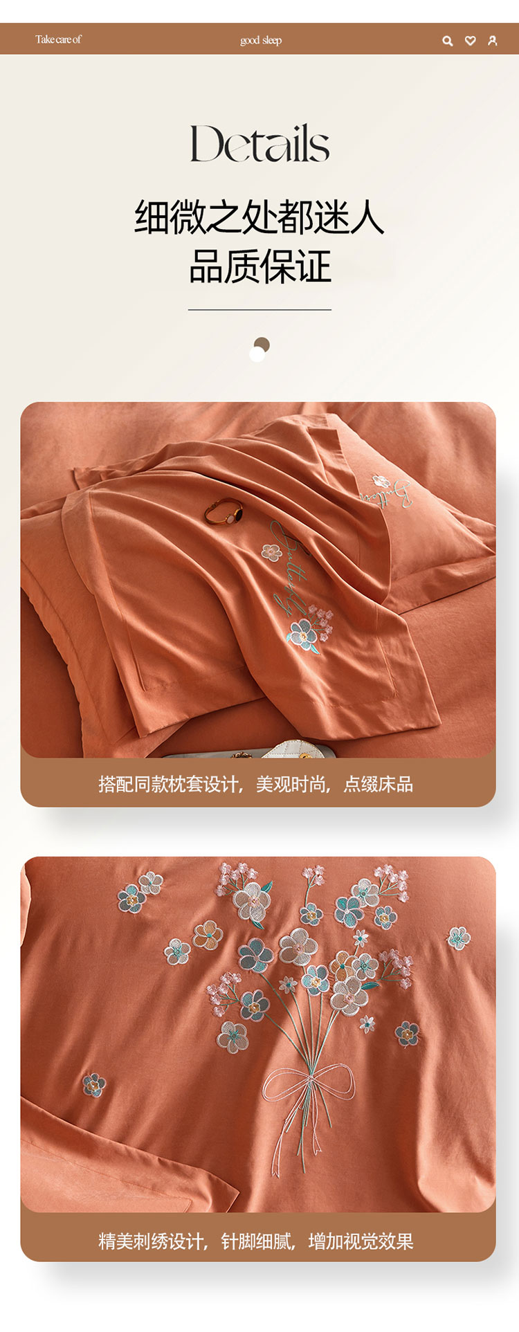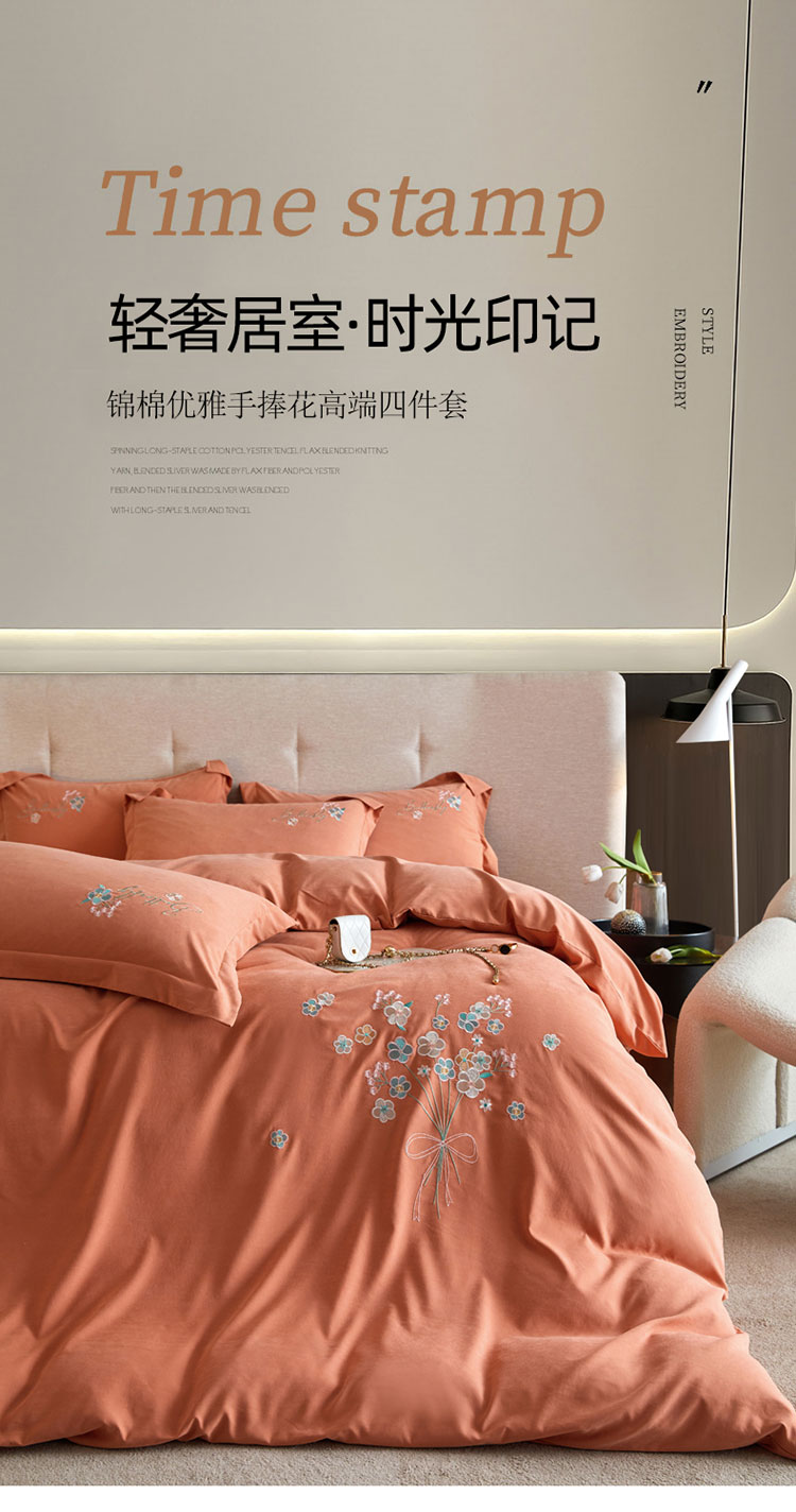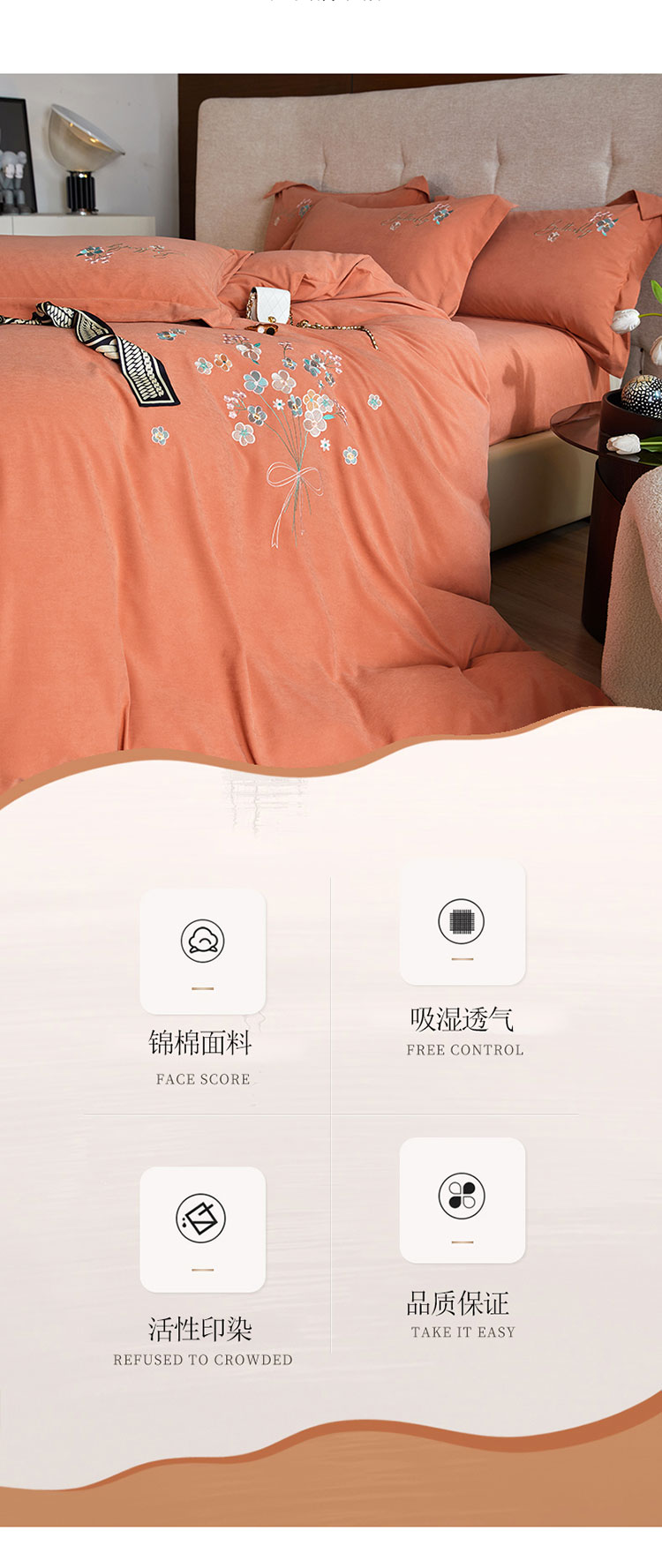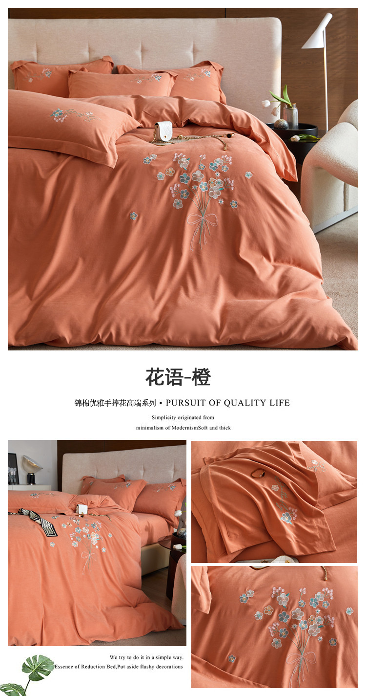 (总)凡客家居 2022新款60支高端锦棉优雅手捧花绣花系列四件套学生宿舍三件套