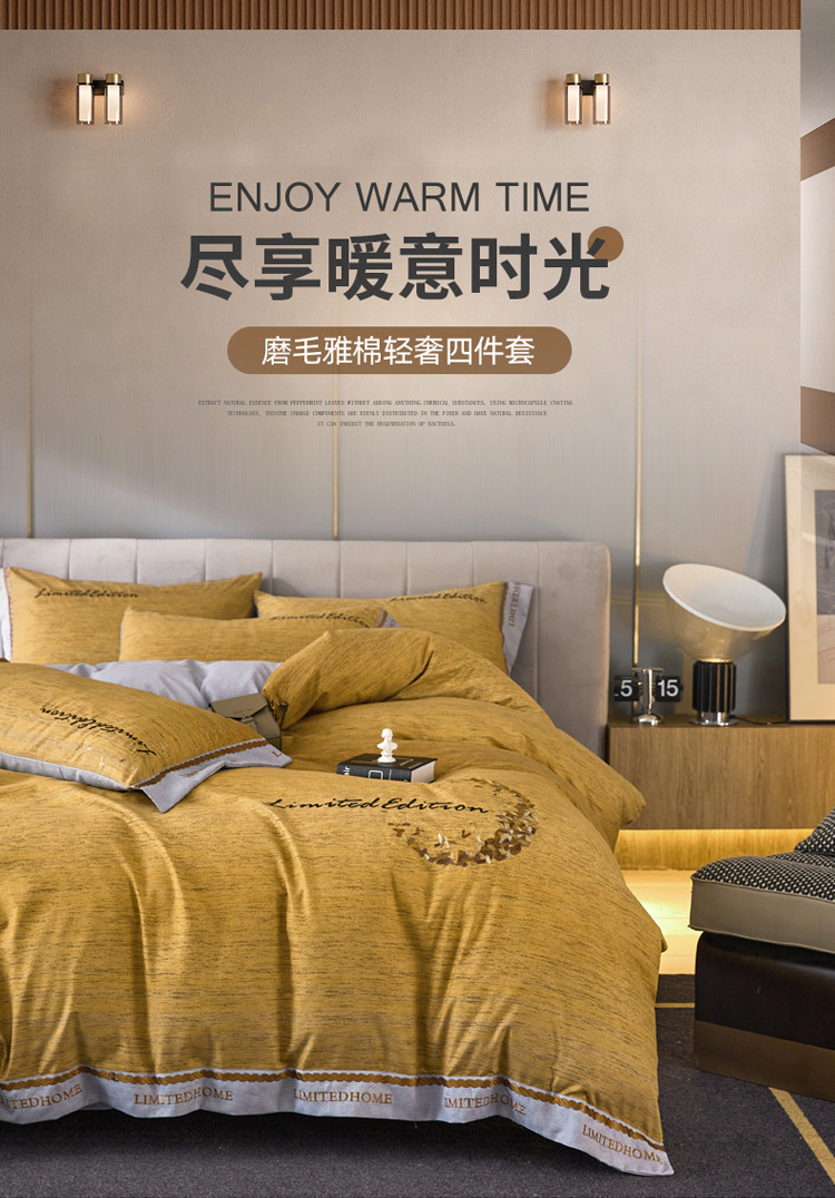 凡客家居 2022新款阳绒磨毛刺绣卡曼系列四件套 卡曼-卡其