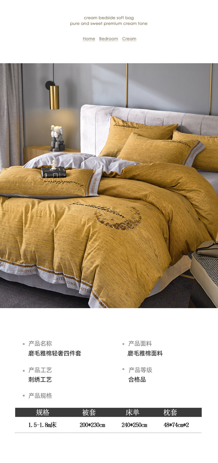 商品名称:凡客家居 2022新款阳绒磨毛刺绣卡曼系列四件套 卡曼-卡其