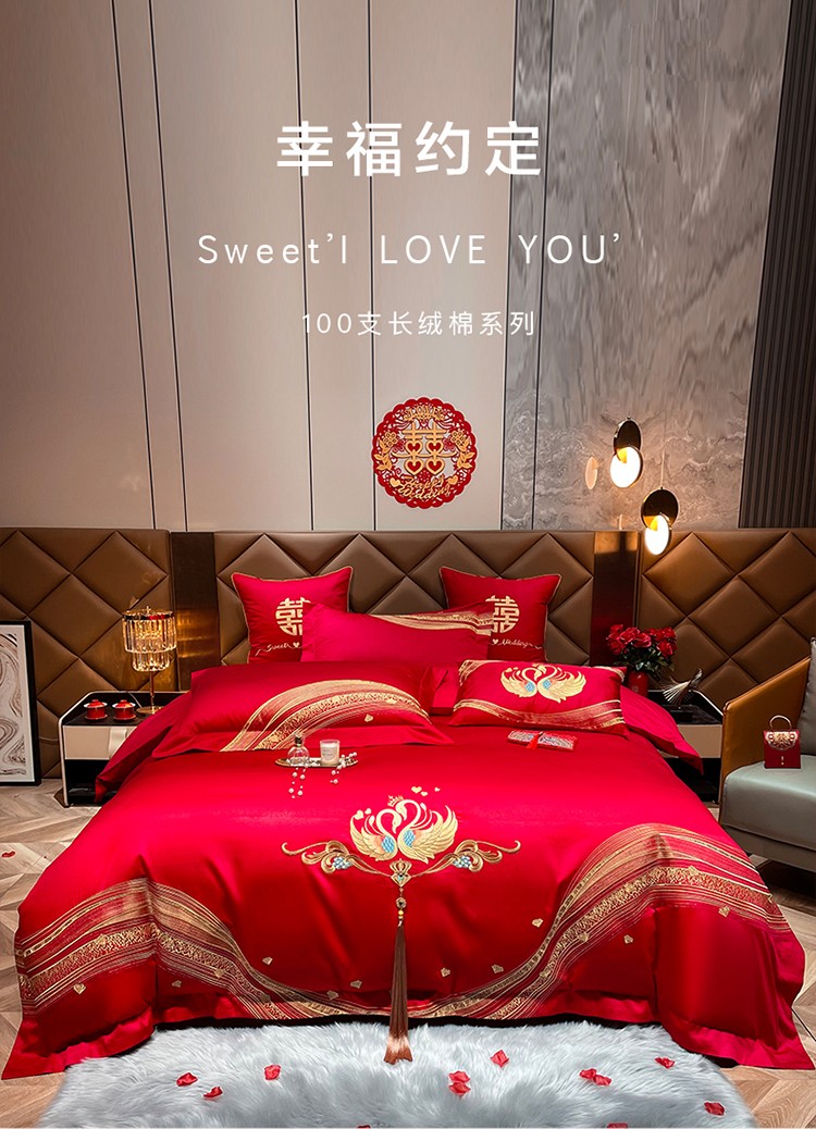 (总)甜咪咪婚庆 2025新款50支长绒棉全棉婚庆床单床盖四件套多件套刺绣工艺,洛可可,爱恋小熊,爱意久久,多子多福,花田喜事,节节高升,克拉恋人,浪漫情怀,怦然心动红,怦然心动玉,甜心玫瑰,温莎公主,伊甸园,醉红妆