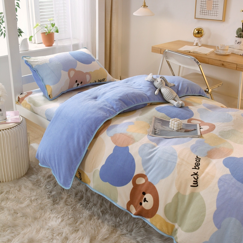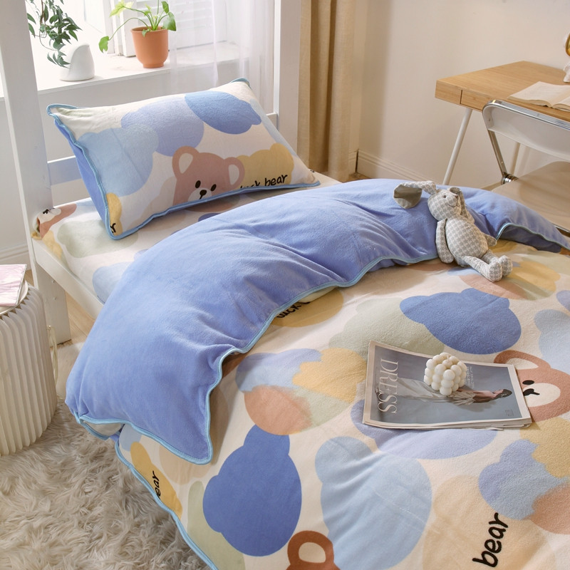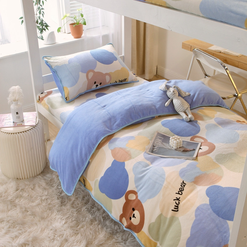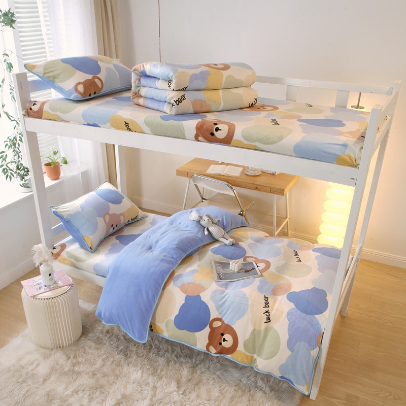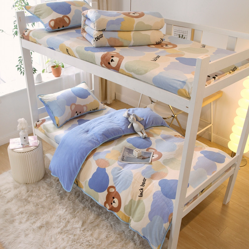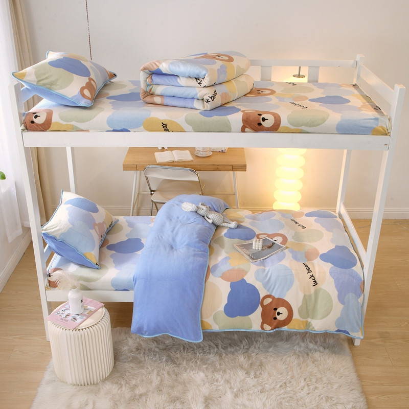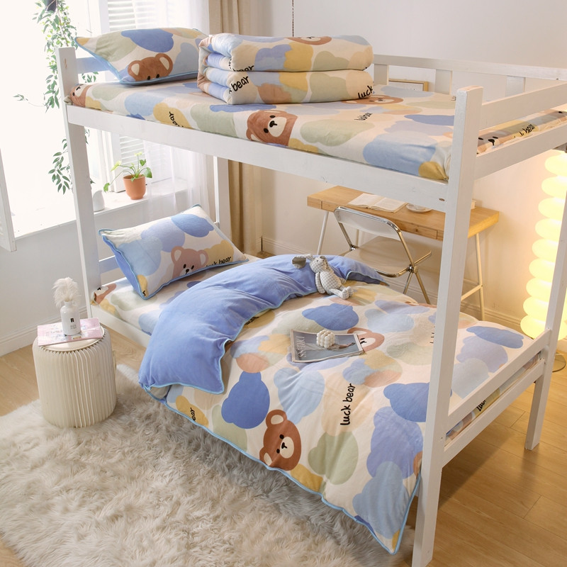 当前位置: 91家纺网 > 商品网购 > 床品套件 > 四件套 > 牛奶绒四件套 > 金鑫汇 2022新款牛奶绒学生上下铺三件套 开心熊-米白