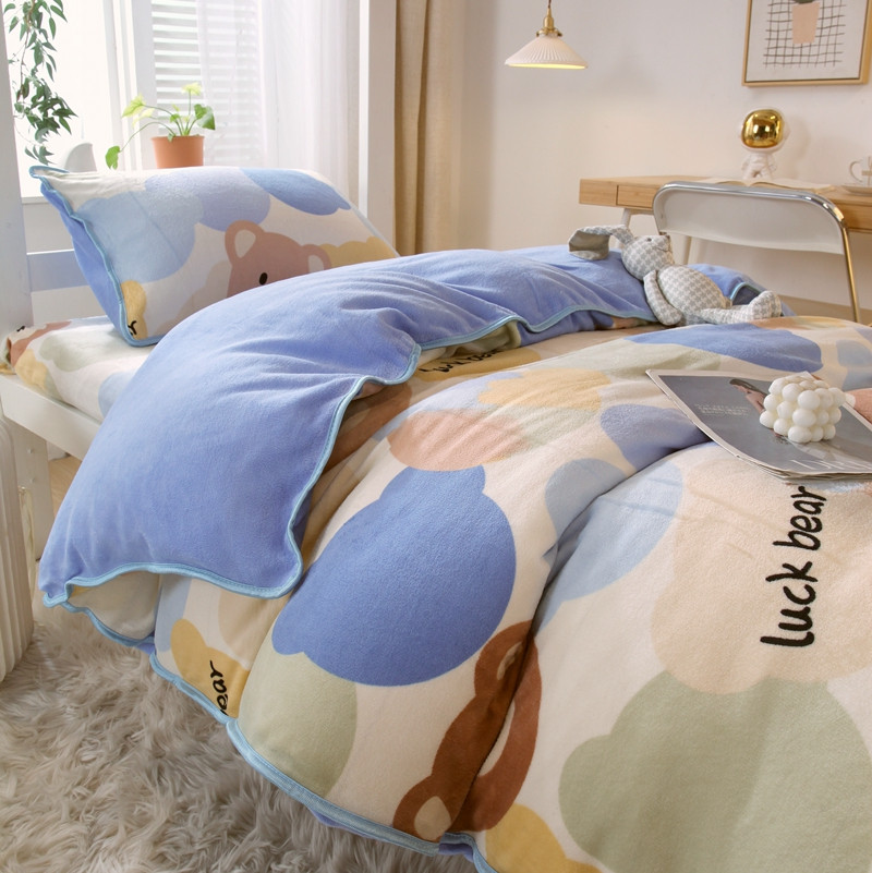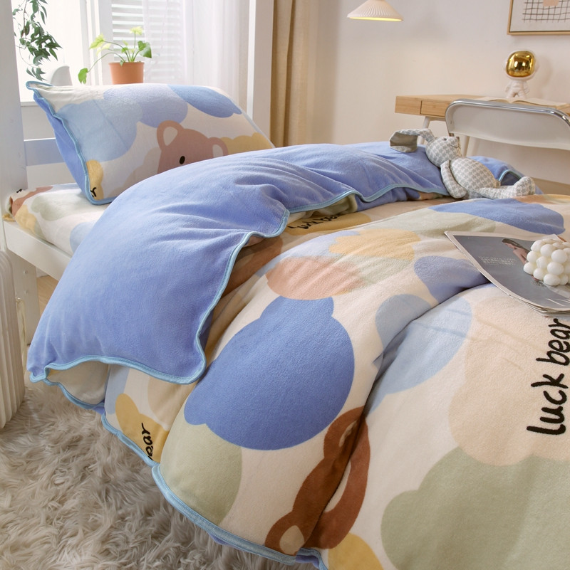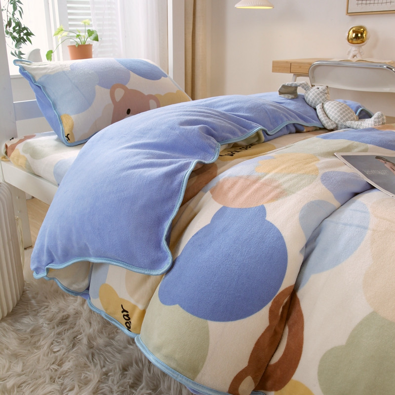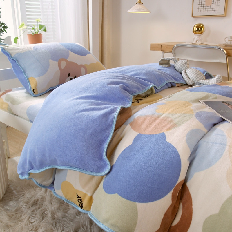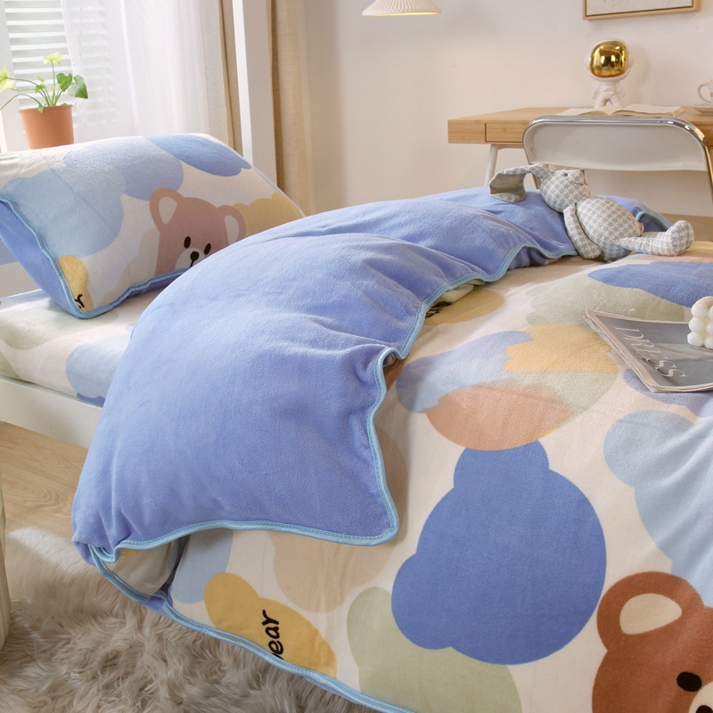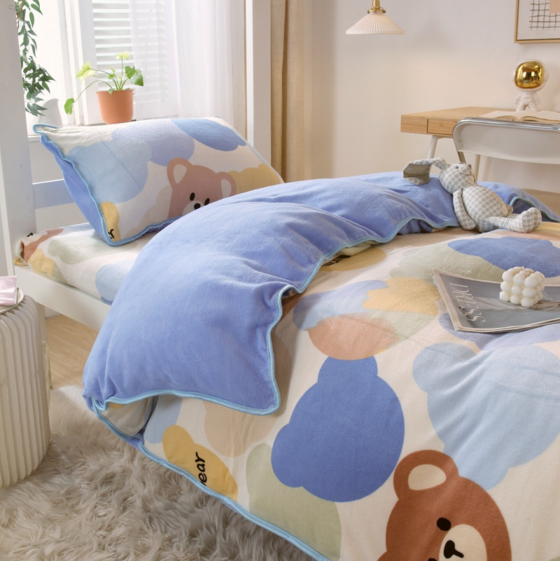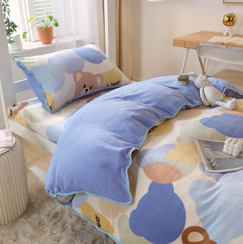 当前位置: 91家纺网 > 商品网购 > 床品套件 > 四件套 > 牛奶绒四件套 > 金鑫汇 2022新款牛奶绒学生上下铺三件套 开心熊-米白