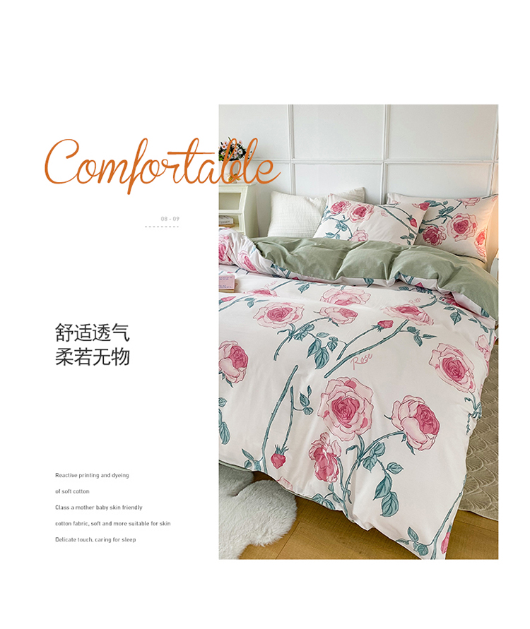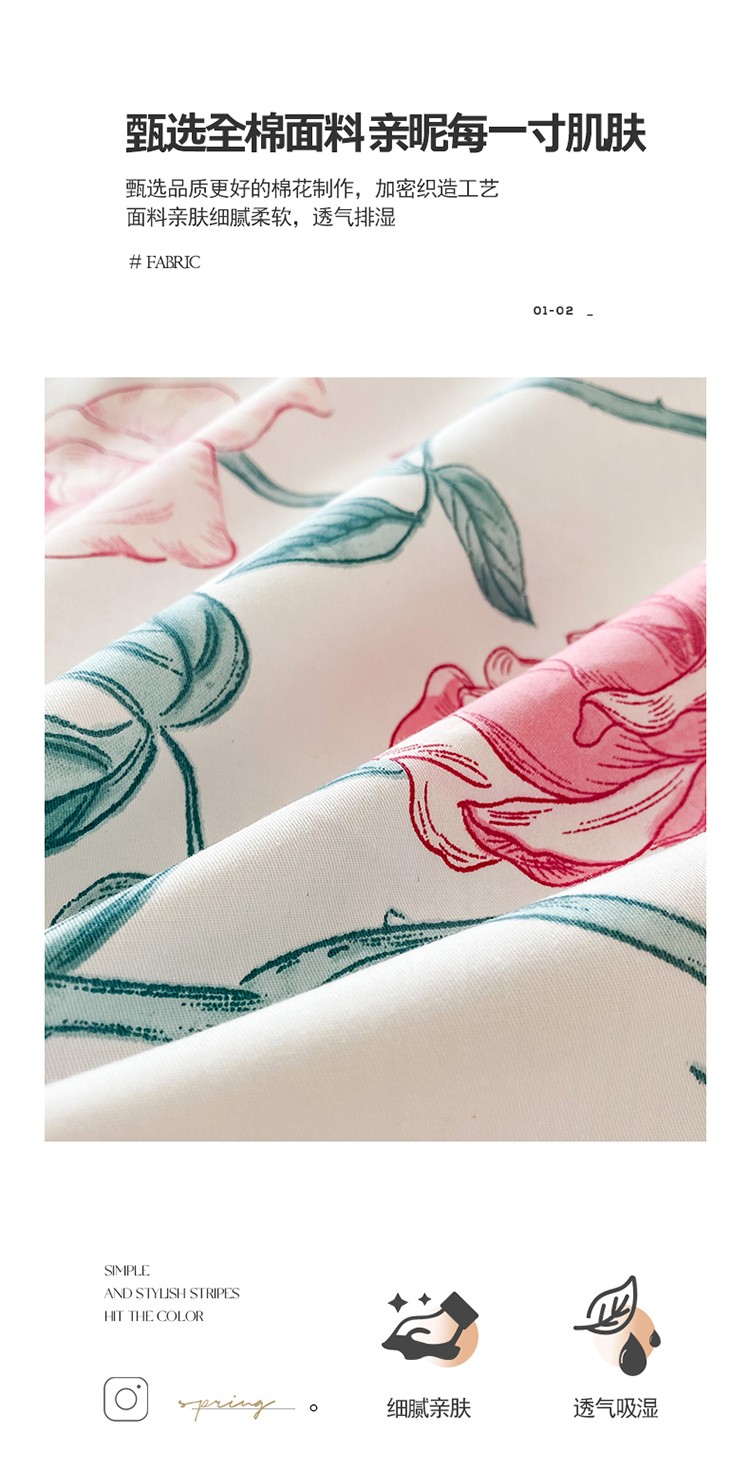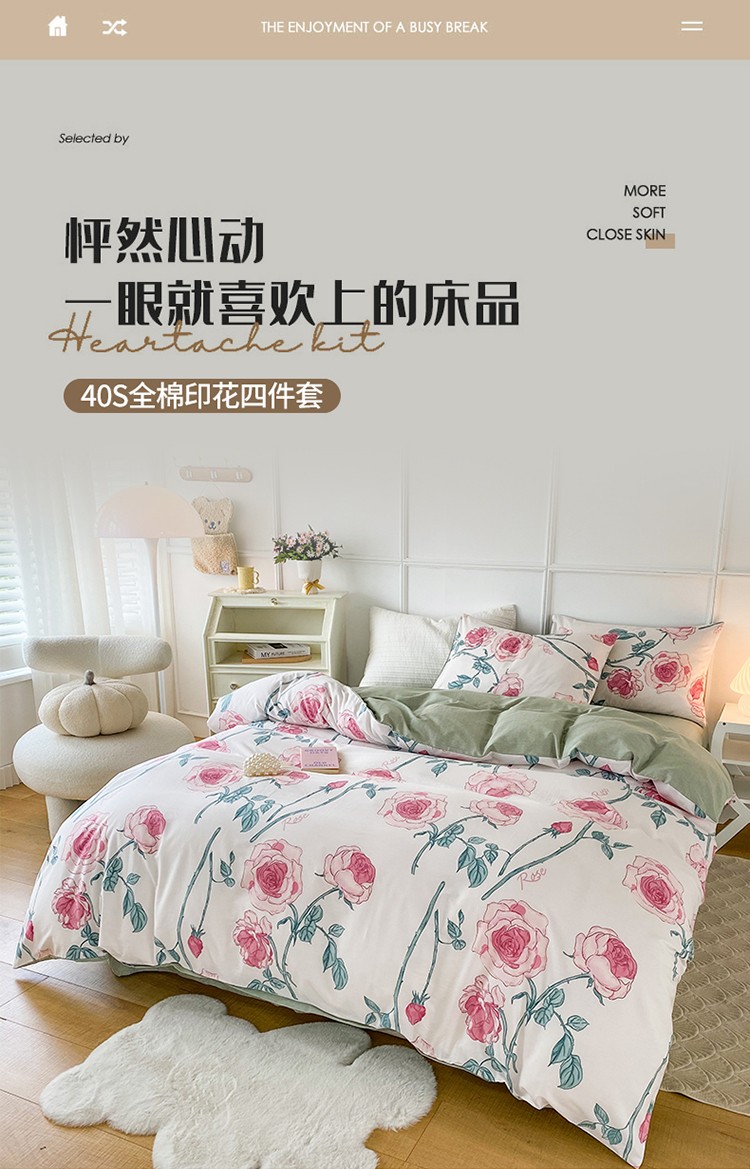 商品名称:珺柔 2022年新款13372全棉四件套纯棉印花套件 红颜
