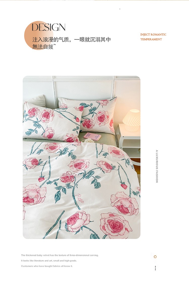 珺柔 2022年新款13372全棉四件套纯棉印花套件 红颜