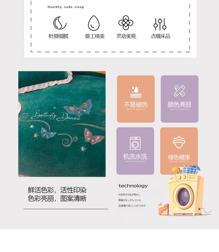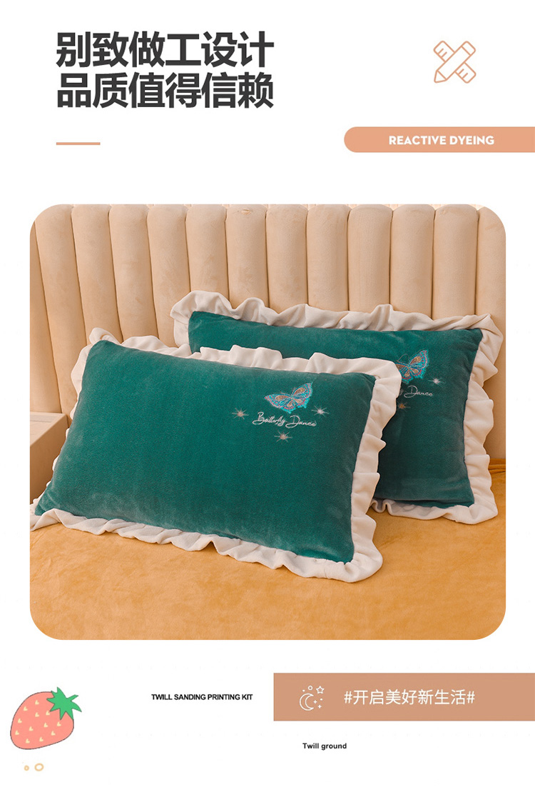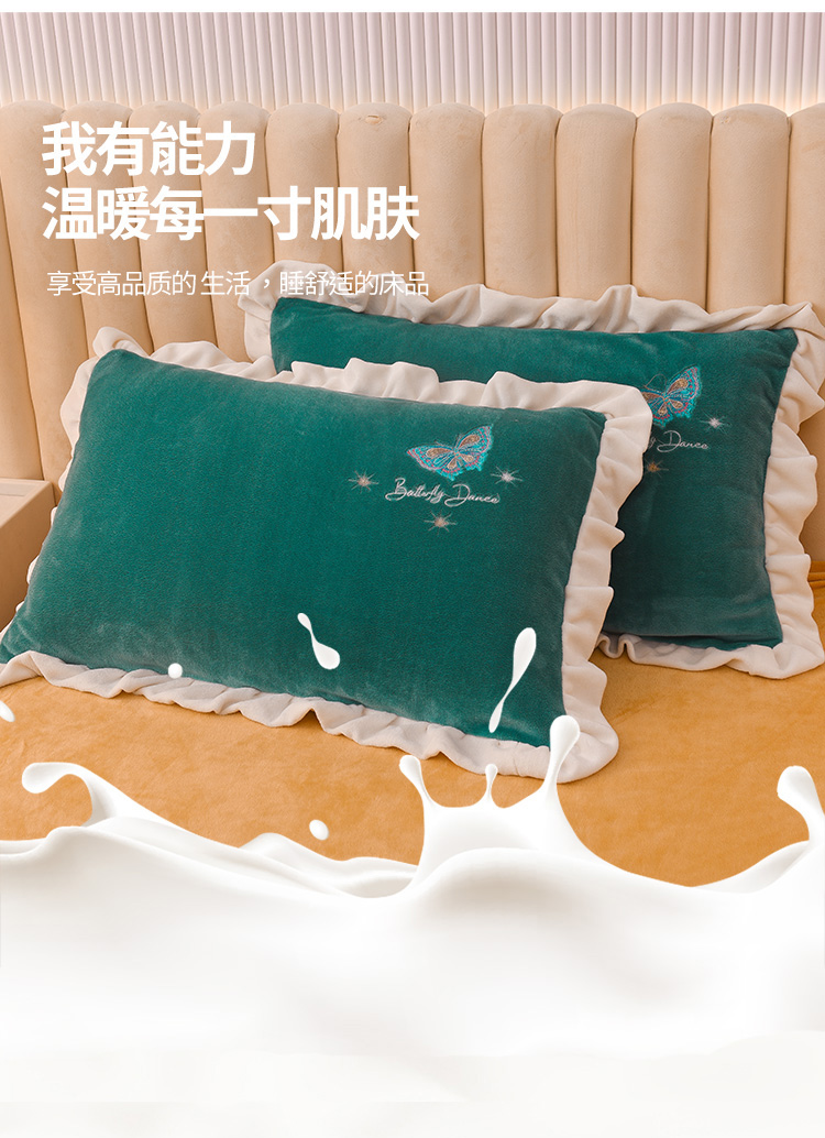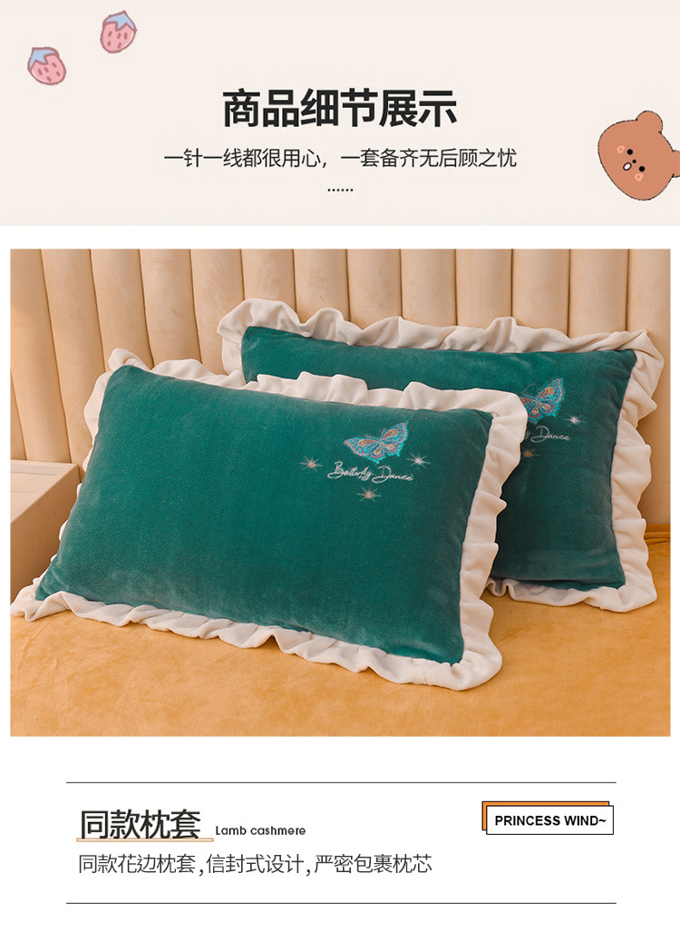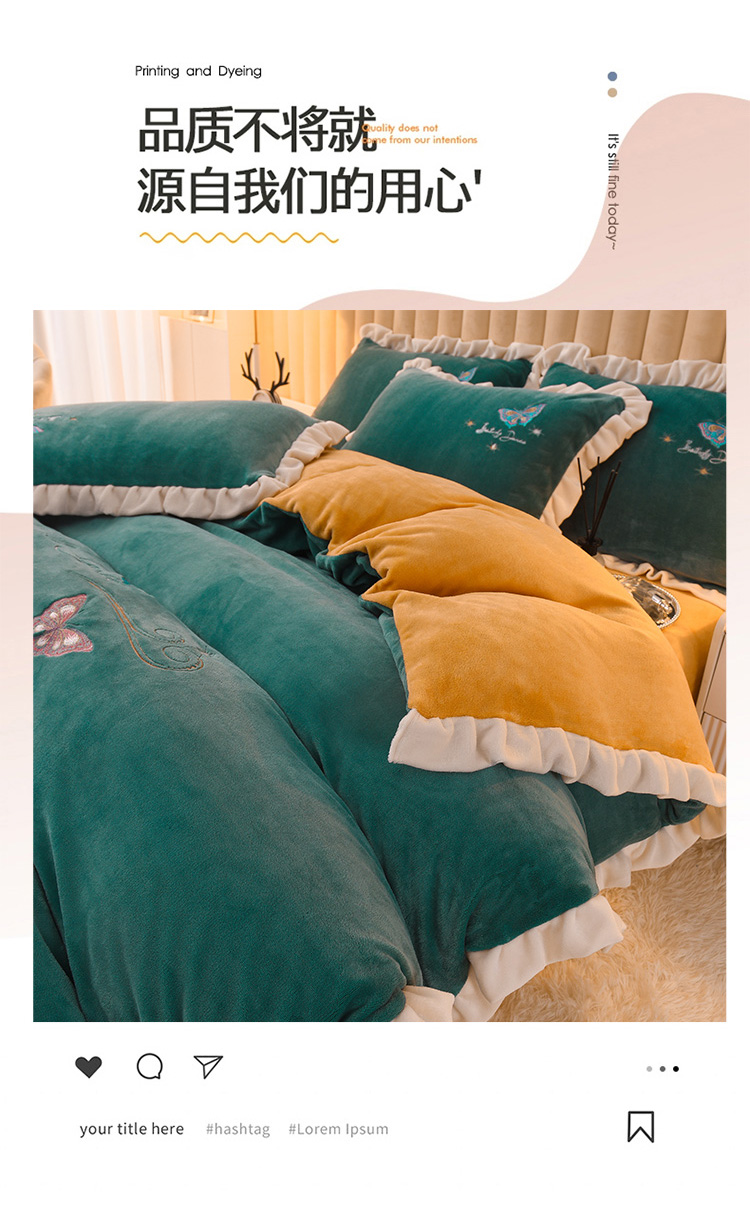 商品名称:芃成 2022新款加厚保暖牛奶绒绣花四件套 蝶舞 玛瑙绿