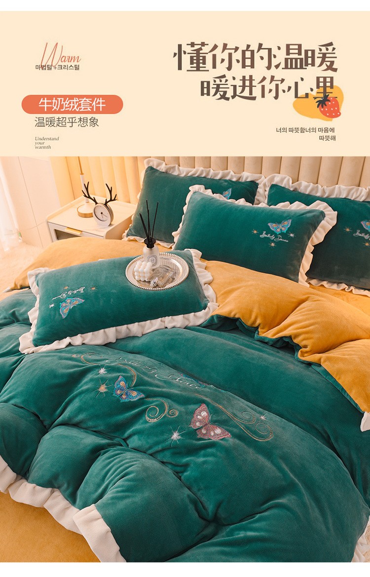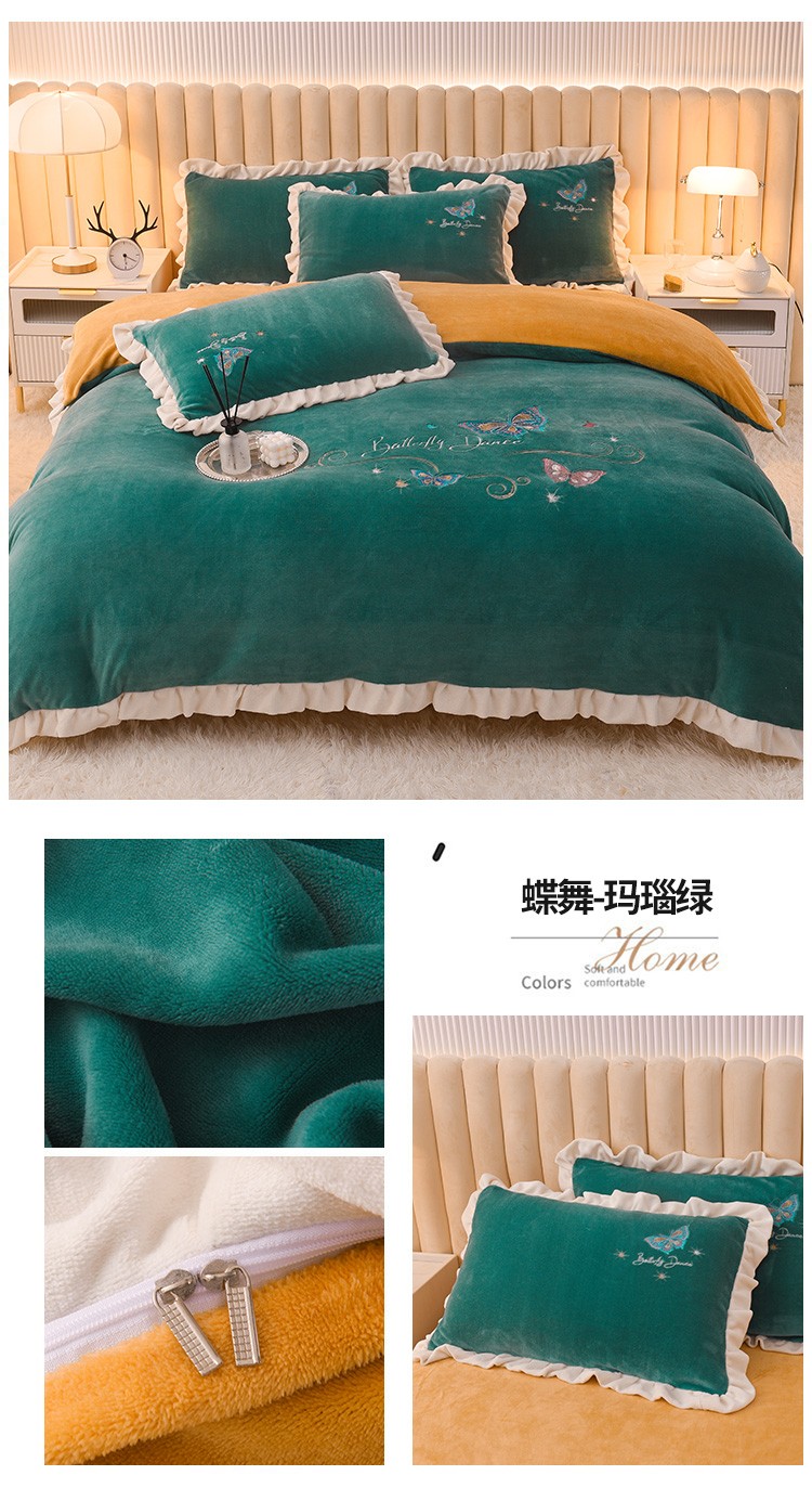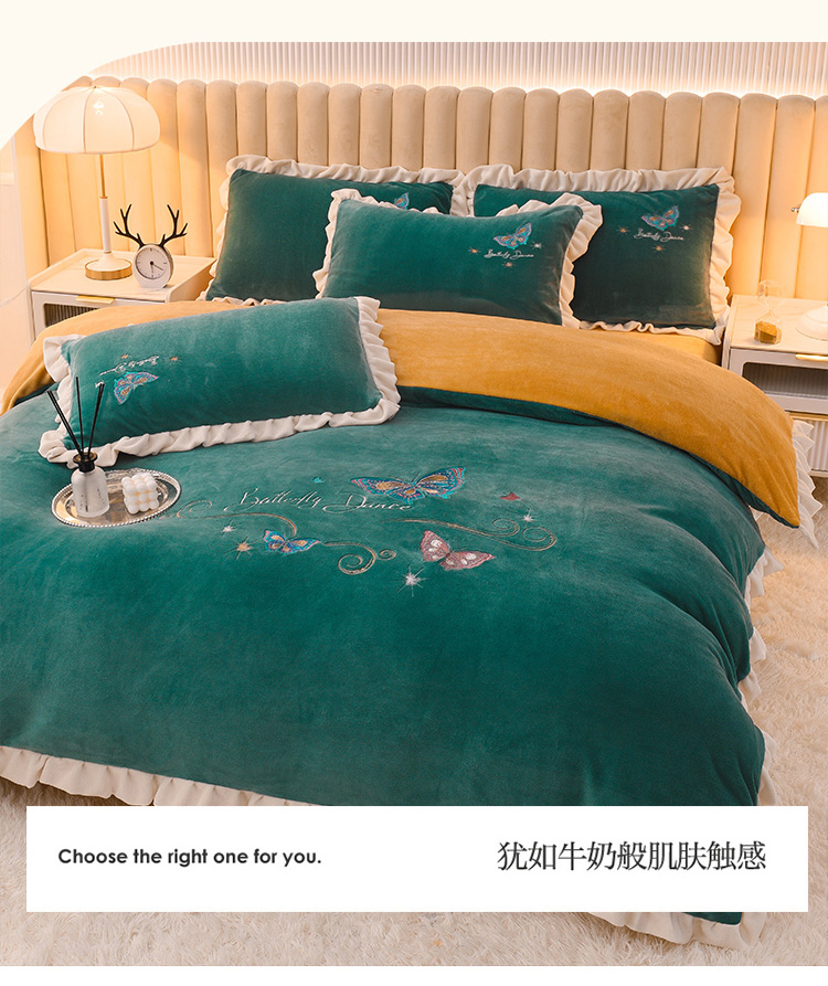 芃成 2022新款加厚保暖牛奶绒绣花四件套 蝶舞 玛瑙绿