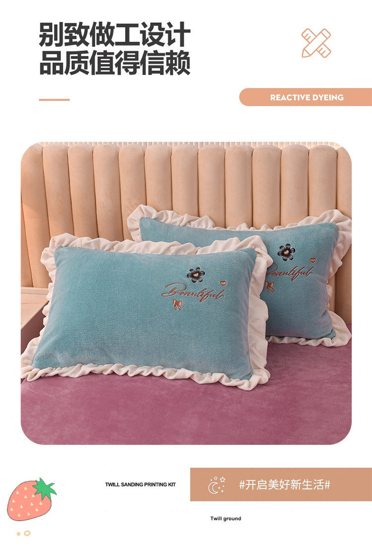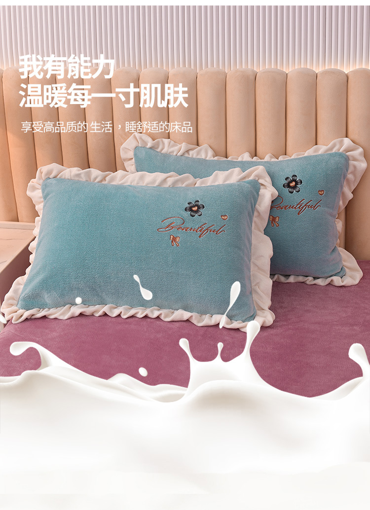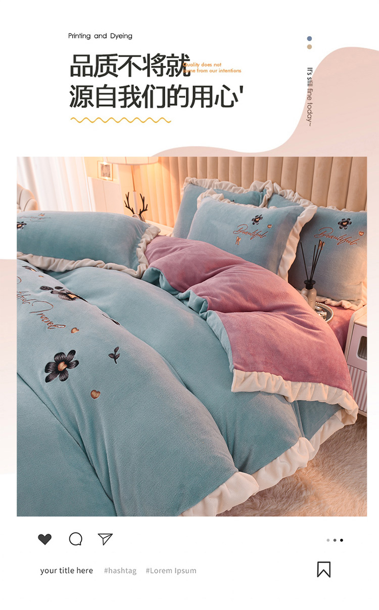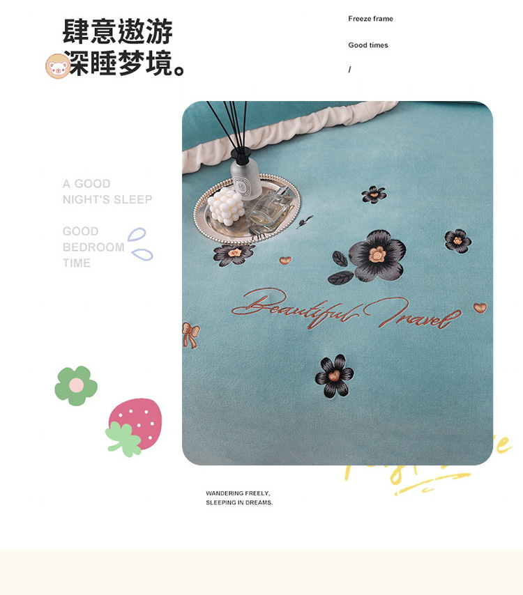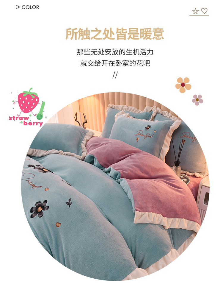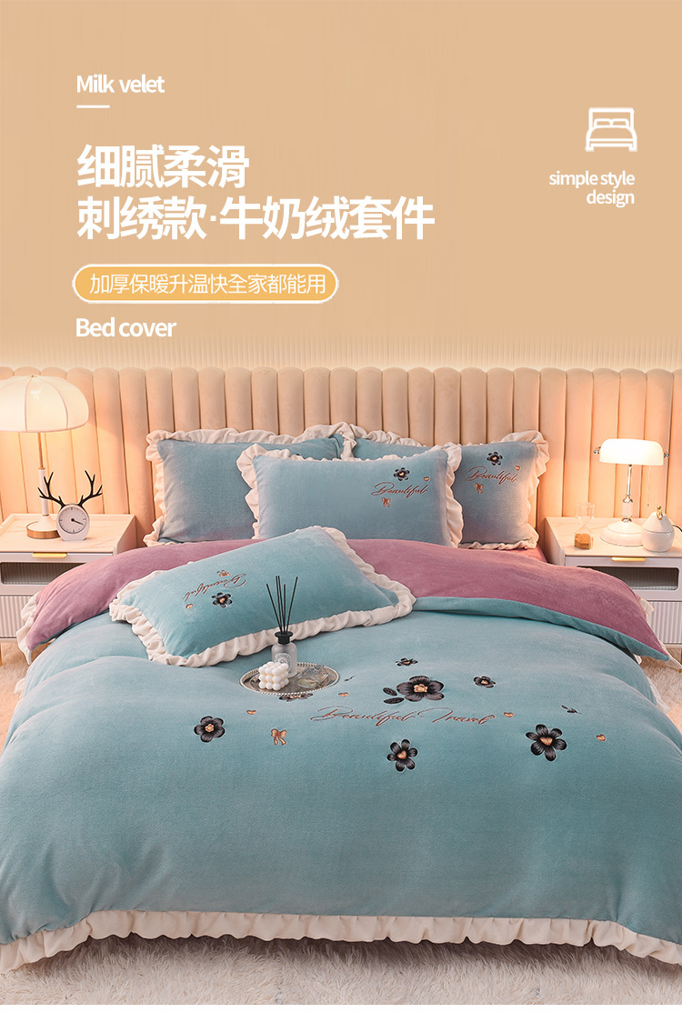 芃成 2022新款加厚保暖牛奶绒绣花四件套 花漾 湖兰