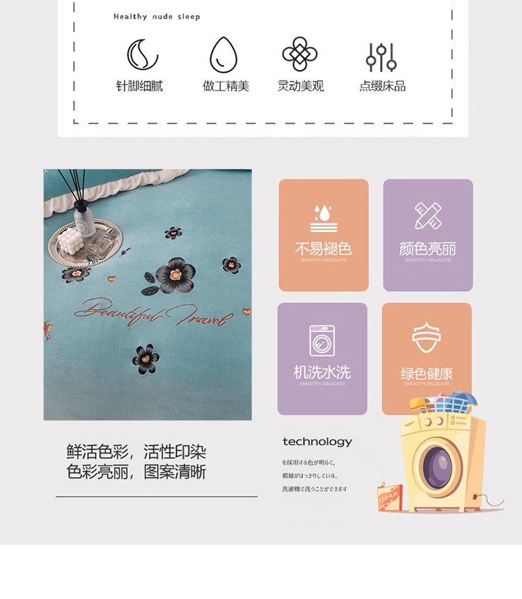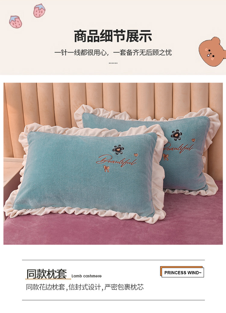 商品名称:芃成 2022新款加厚保暖牛奶绒绣花四件套 花漾 湖兰