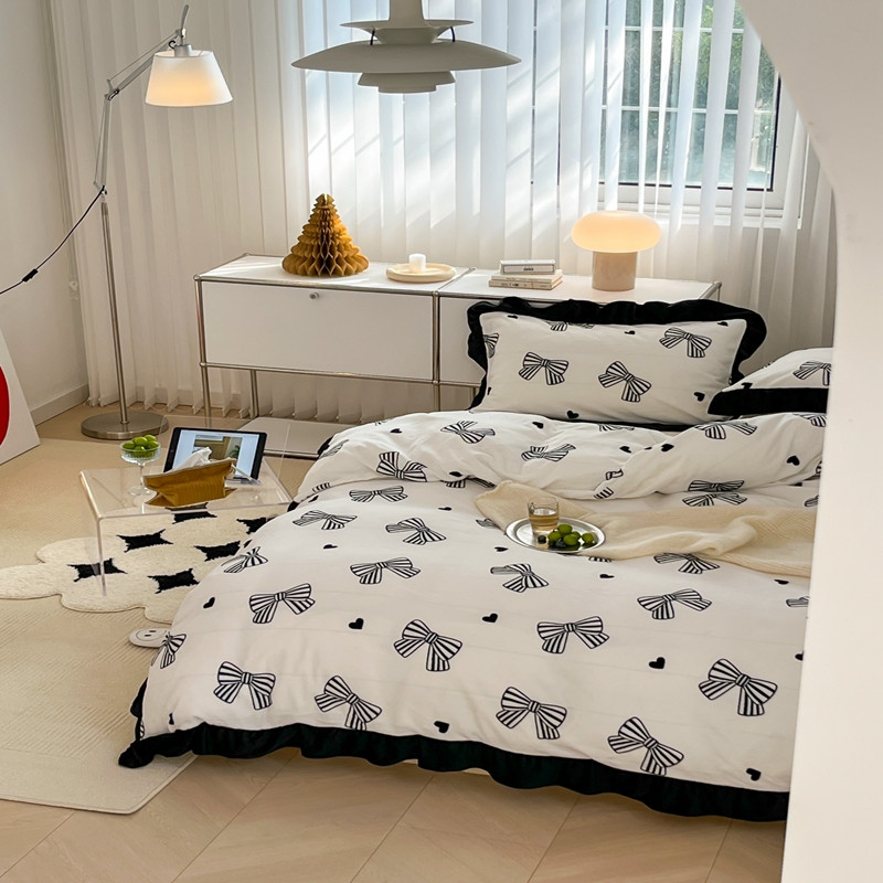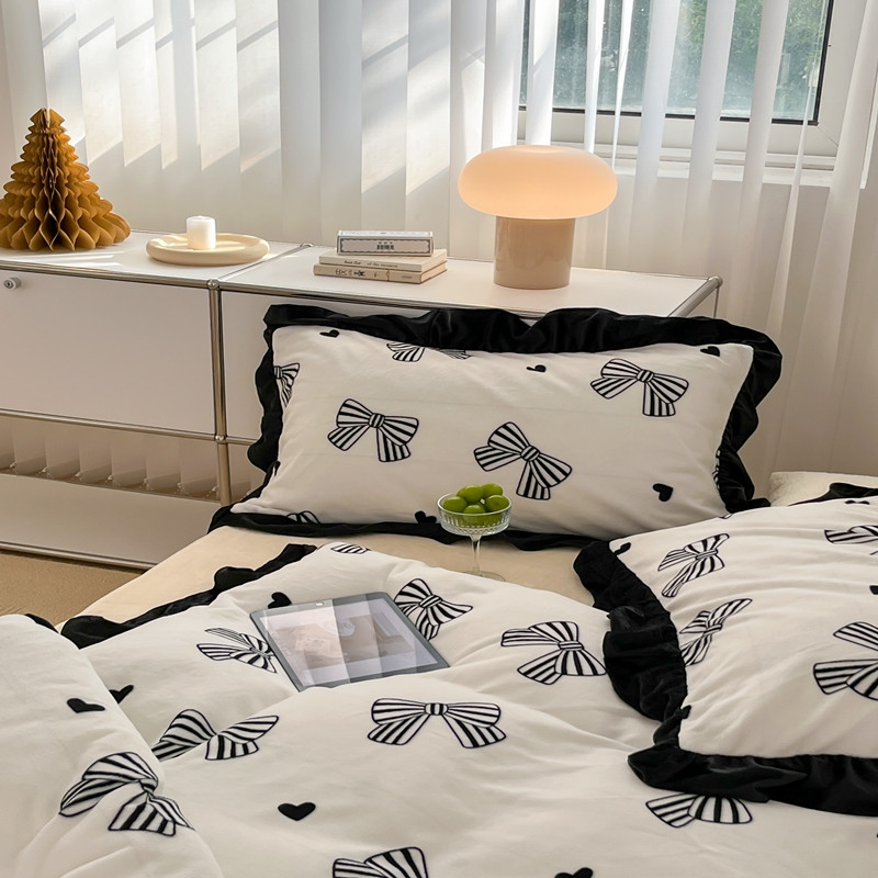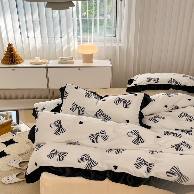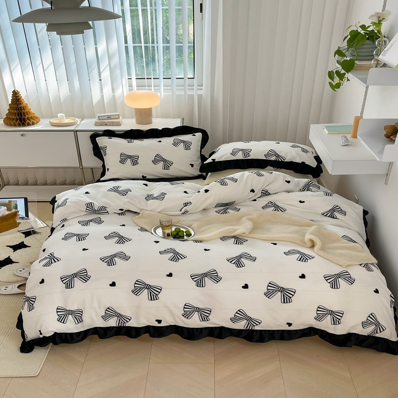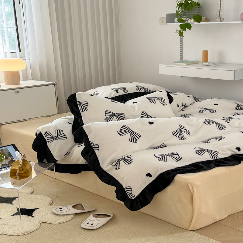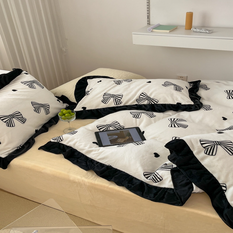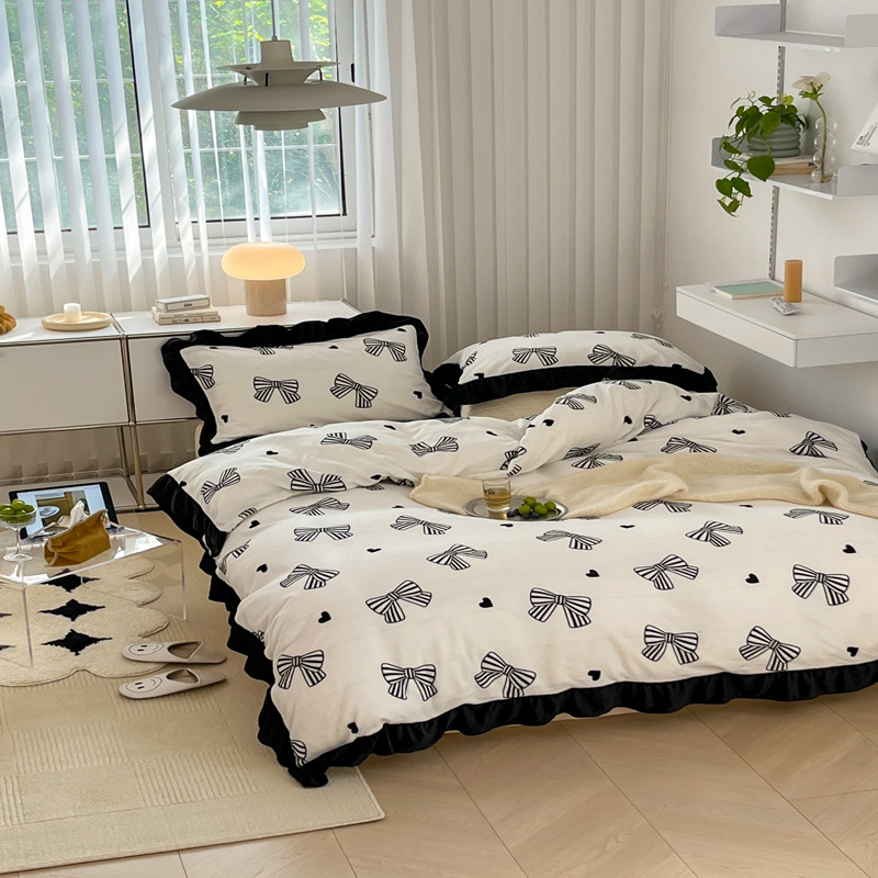昔可 2022新款花边牛奶绒四件套 赫本蝴蝶结