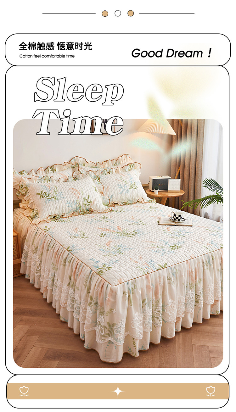 商品名称:宜凡 2023新款四季款全棉夹棉床裙三件套 茗香玉露