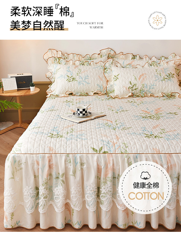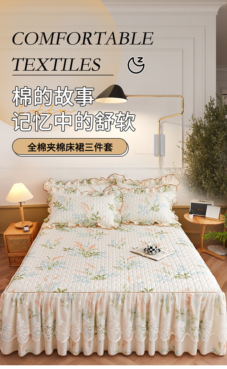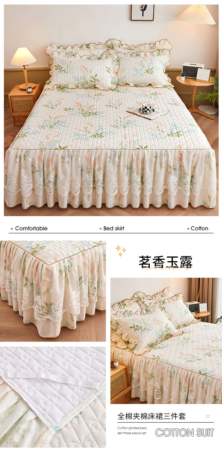 宜凡 2023新款四季款全棉夹棉床裙三件套 茗香玉露