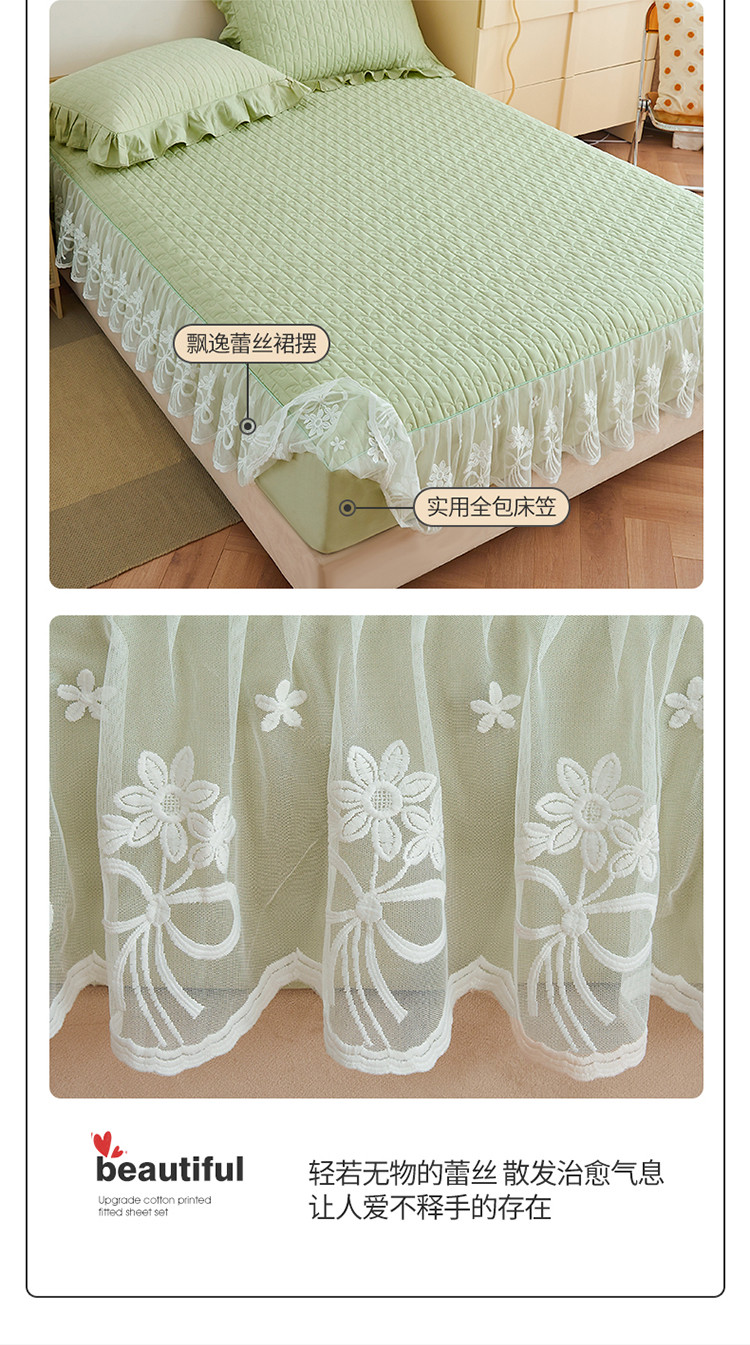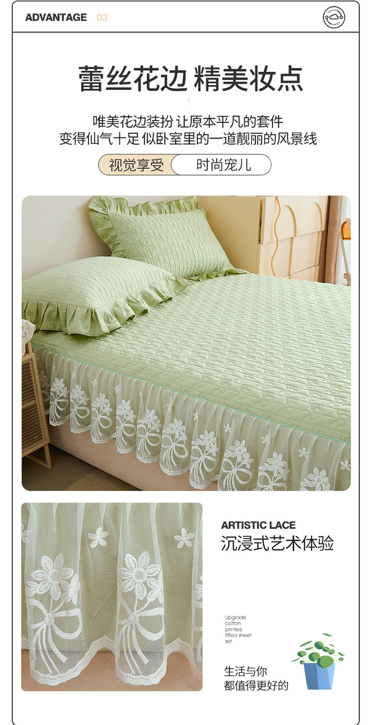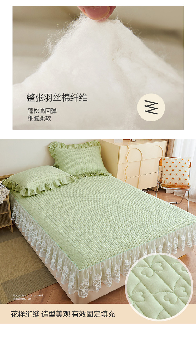 宜凡 2023新款四季款夹棉小清新床笠三件套 春禾集 奶绿