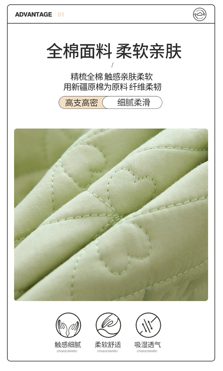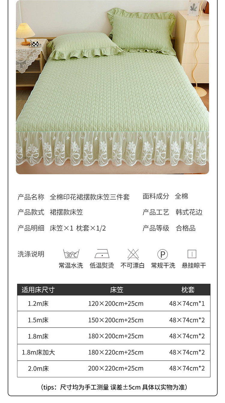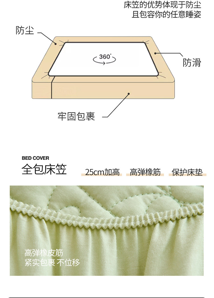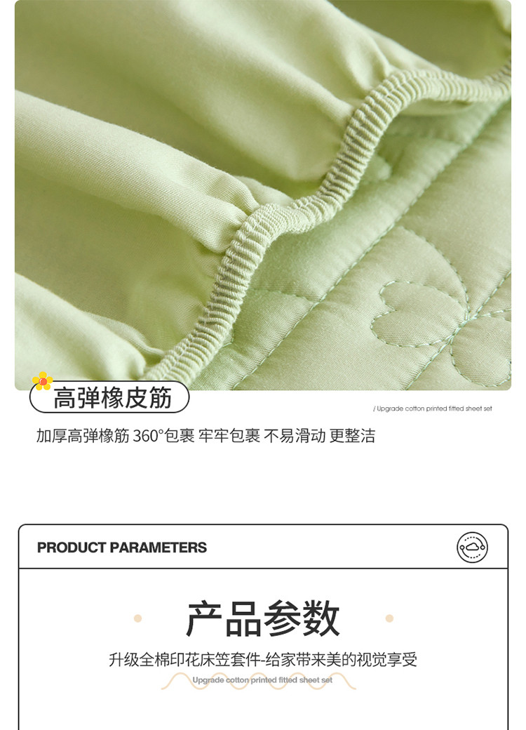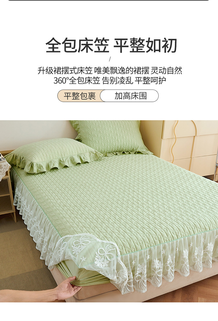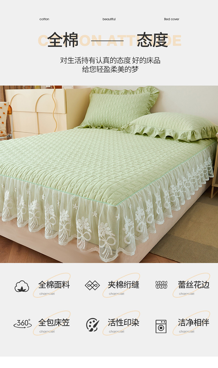 商品名称:宜凡 2023新款四季款夹棉小清新床笠三件套 春禾集 奶绿