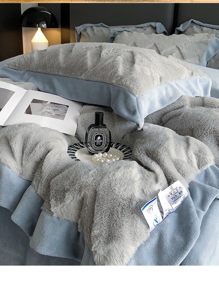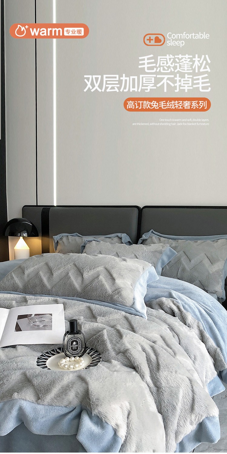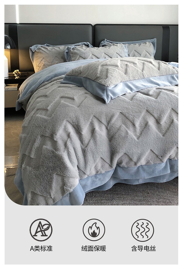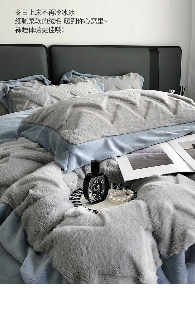 商品名称:罗优 2023新款A类兔毛绒轻奢系列四件套 轻奢-高级灰