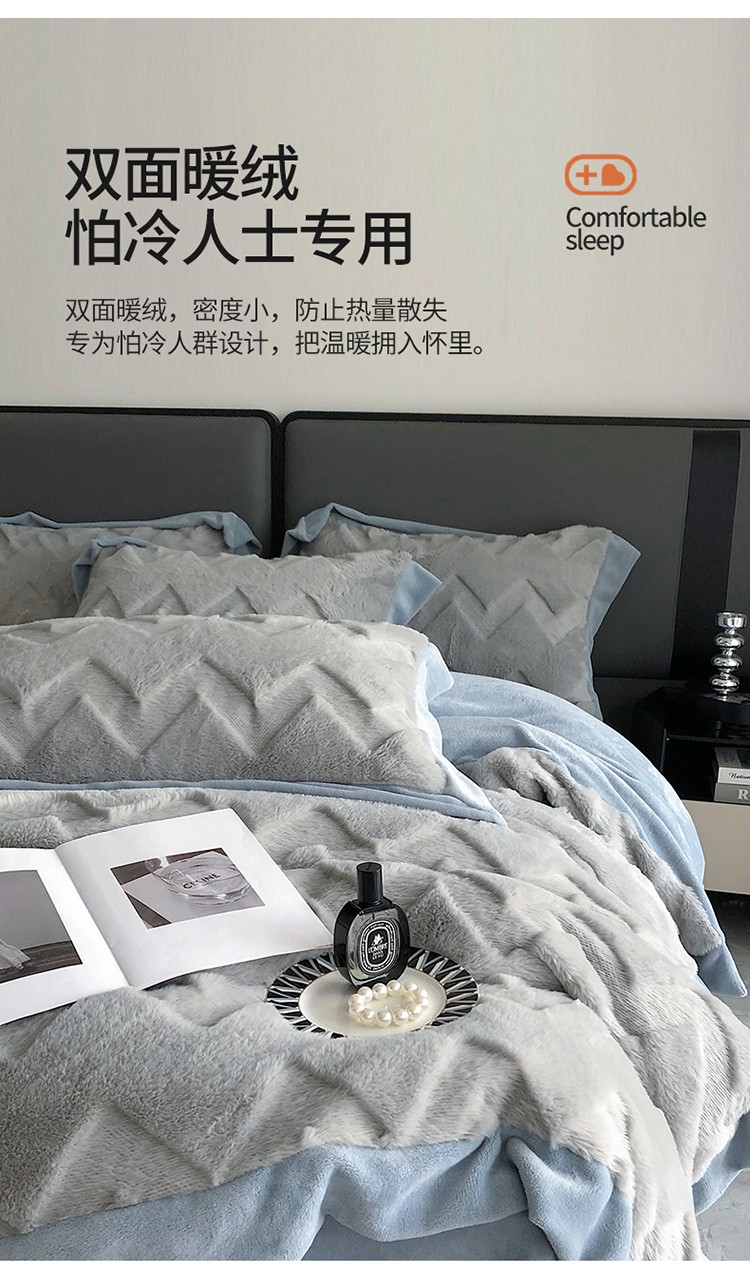 (总)罗优家纺 2025新款柔暖皱幔款暖绒四件套,浅粉,浅灰,浅蓝,浅杏