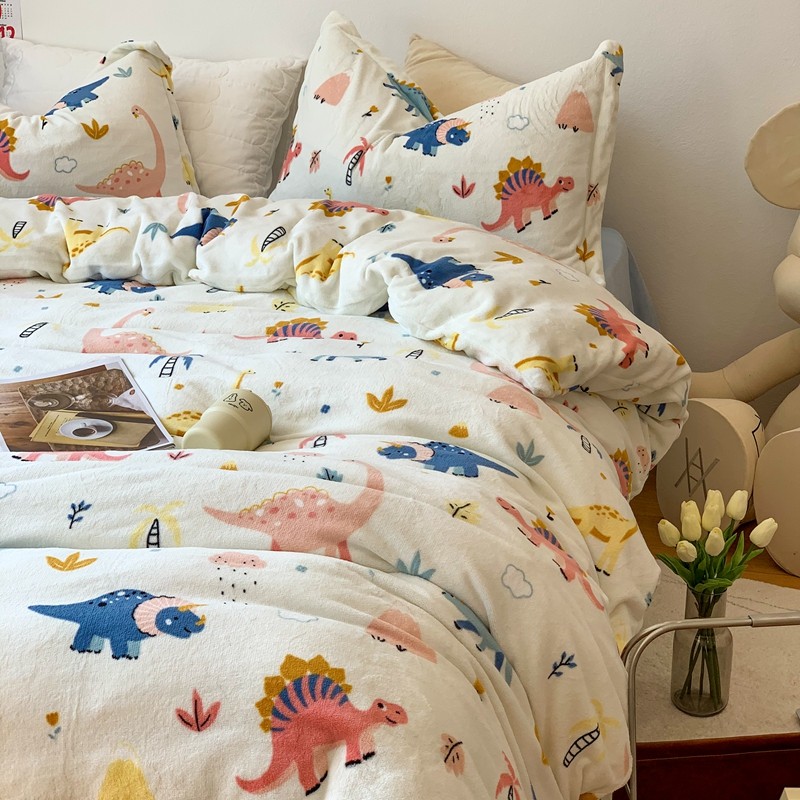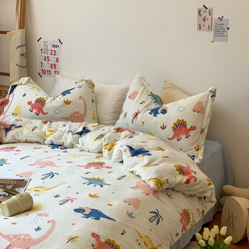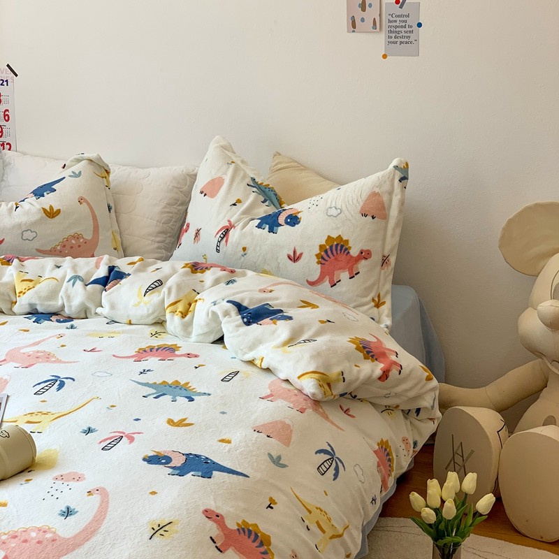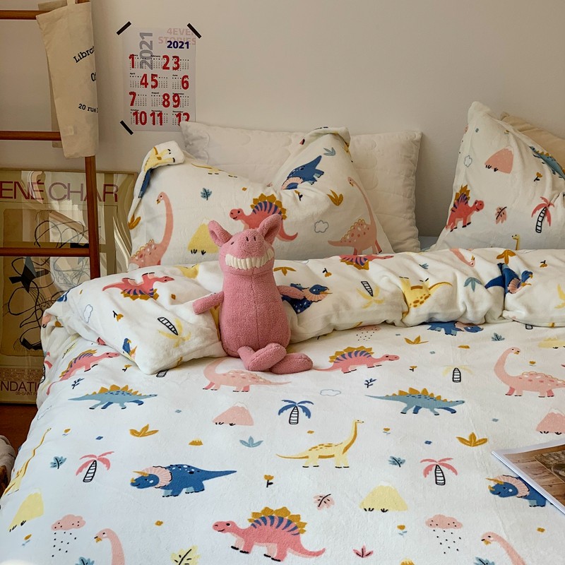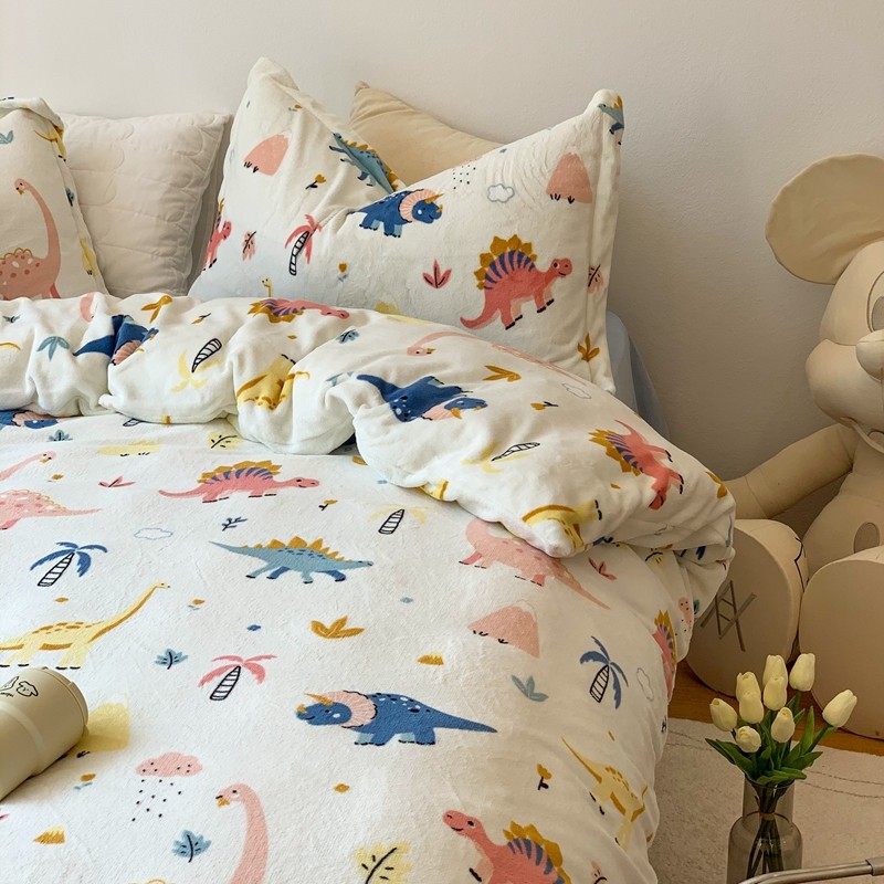 时年 2022新款全消光牛奶绒印花四件套 侏罗纪