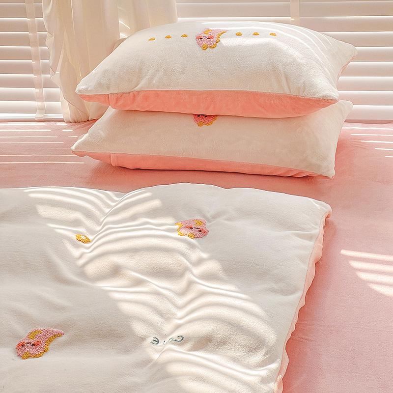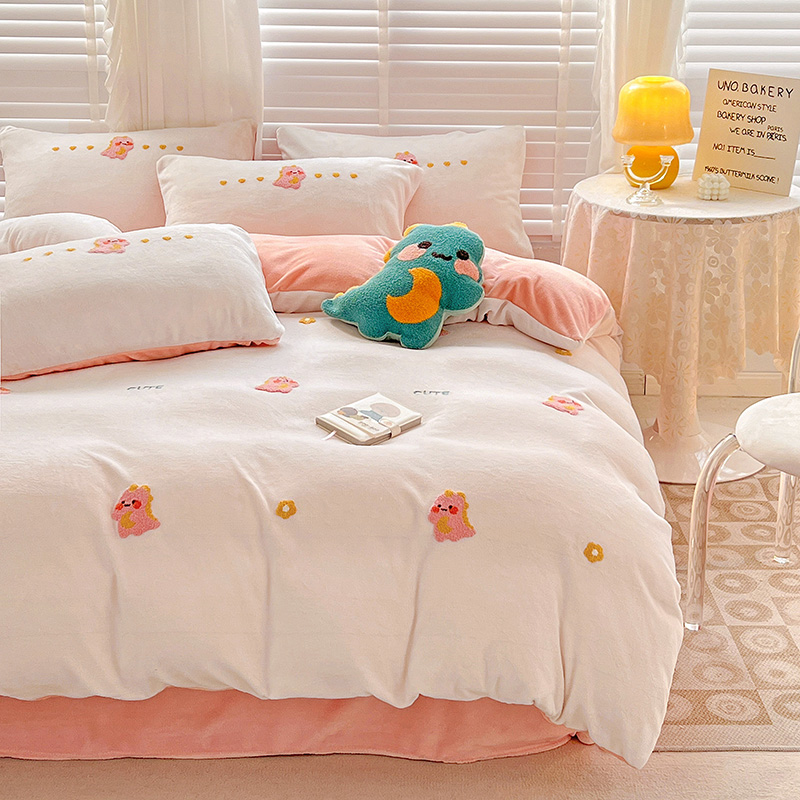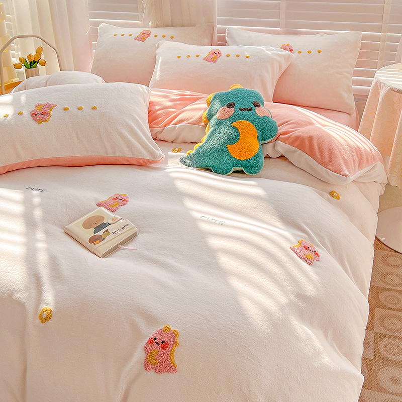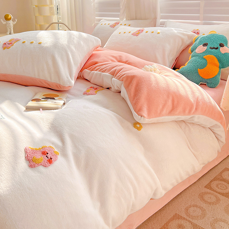 (总)寐居家纺 2025新款贴布绣高克重牛奶绒四件套,安吉拉喵,查理狗,粉糯kitty,皮皮布布