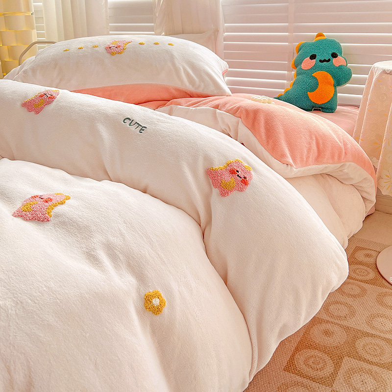 (总)寐居家纺 2025新款毛球毛巾绣牛奶绒四件套,毛球球·巴克汪仔,毛球球·豆蔻女孩,毛球球·奶黄拉布,毛球球·心动KT喵,组合图仅供展示不可下单
