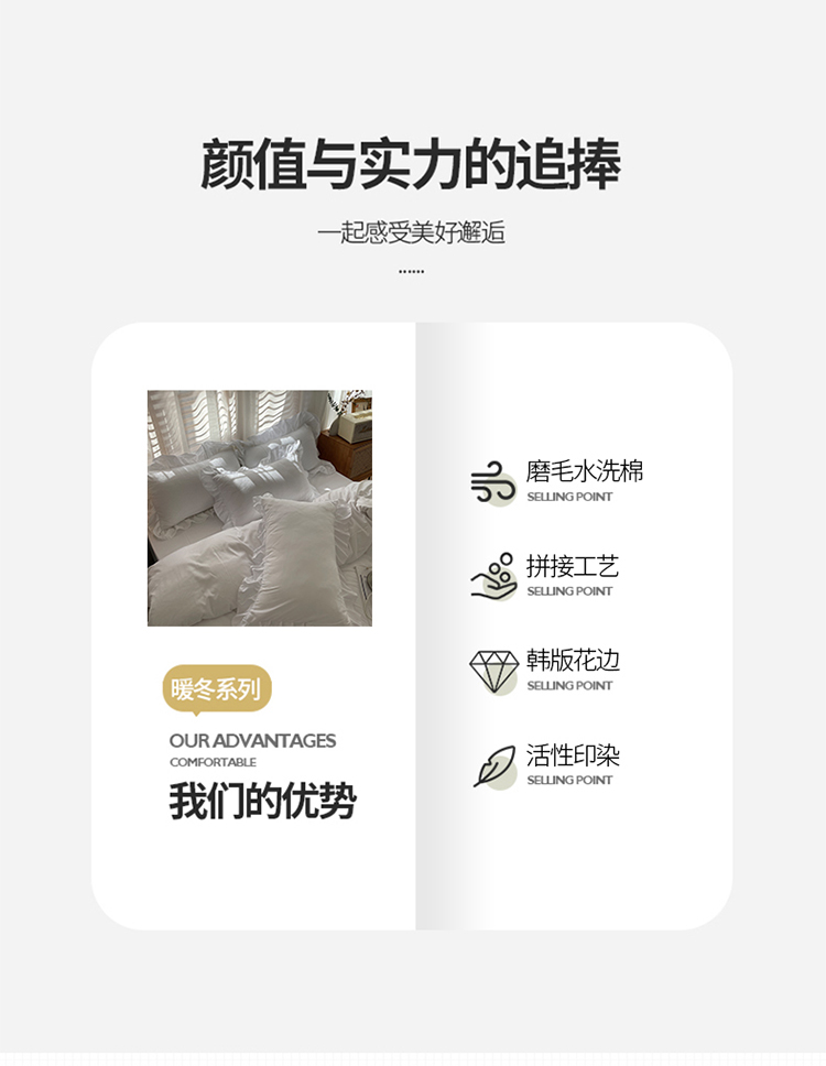 当前位置: 91家纺网 > 商品网购 > 床品套件 > 四件套 > 水洗棉四件套 > 小主驾到 2023新款公主风水洗棉四件套-花半里系列 花半里 白