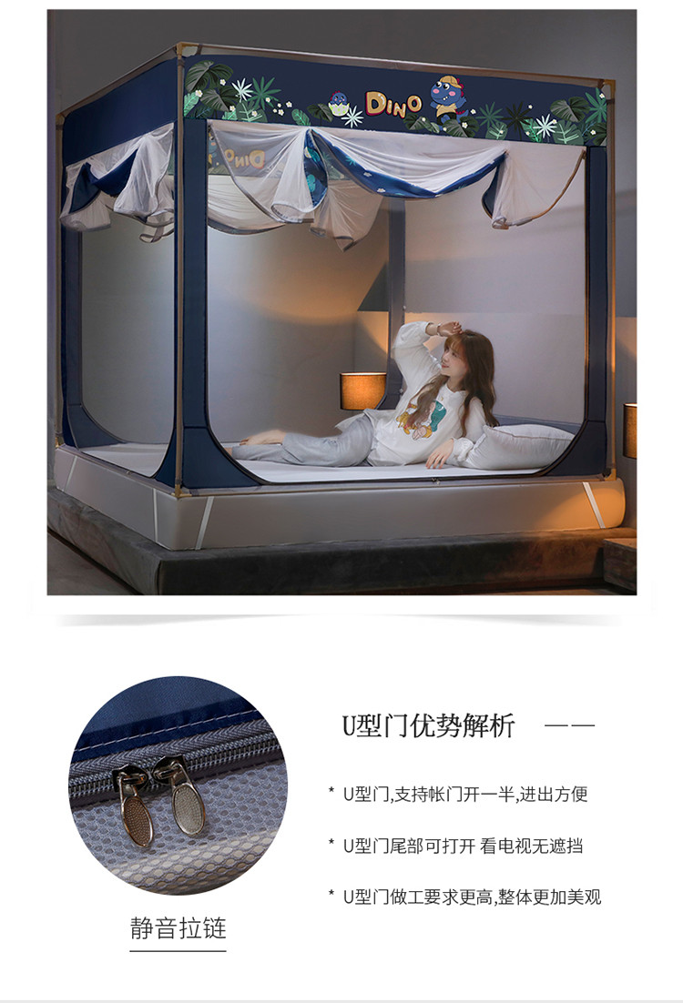 (总)飞轮海蚊帐 2023新款U型三开门遮光坐床蚊帐-Z-75,黛蓝,奶油黄,香槟