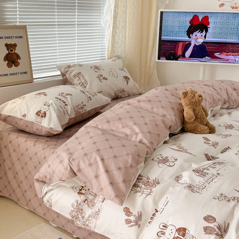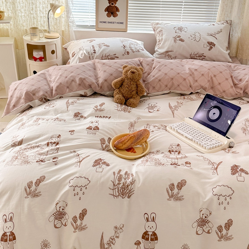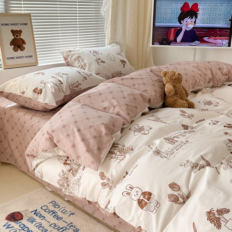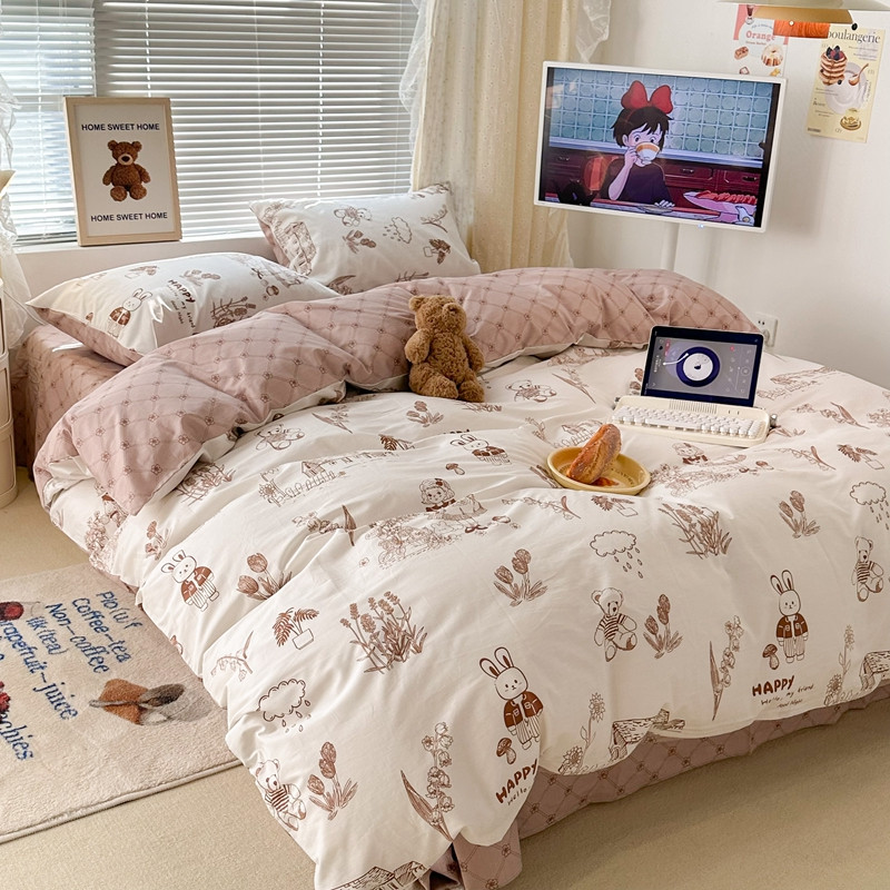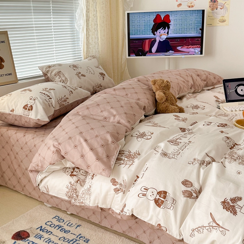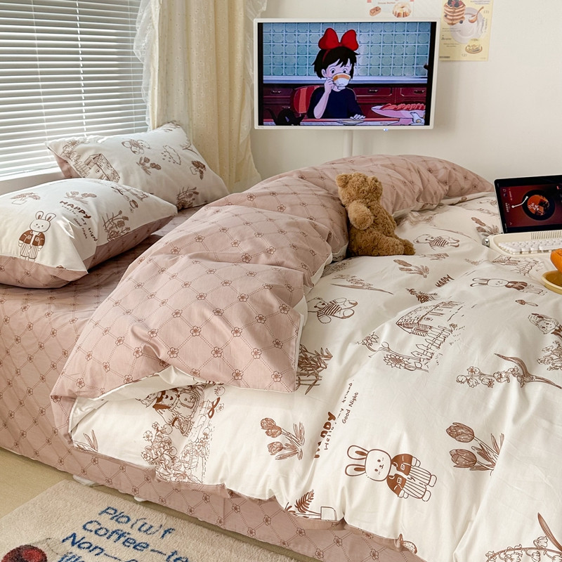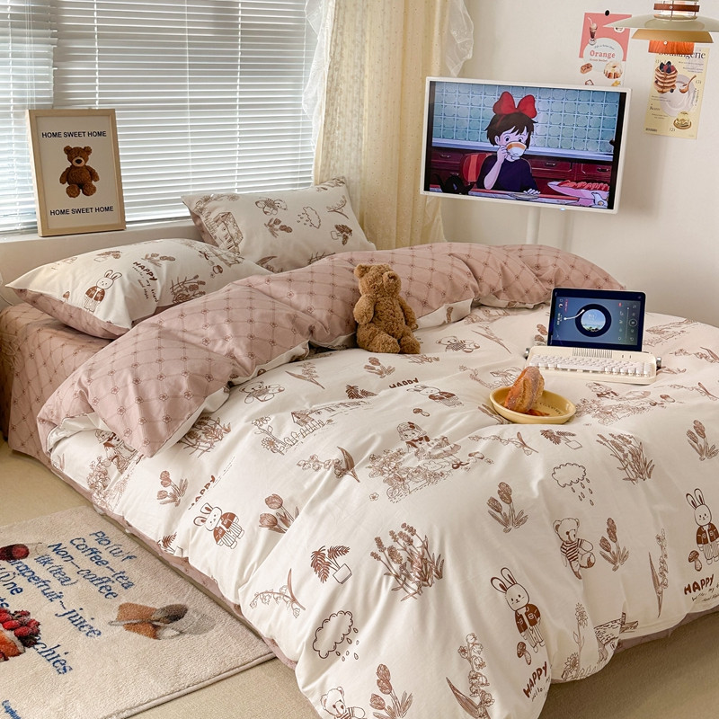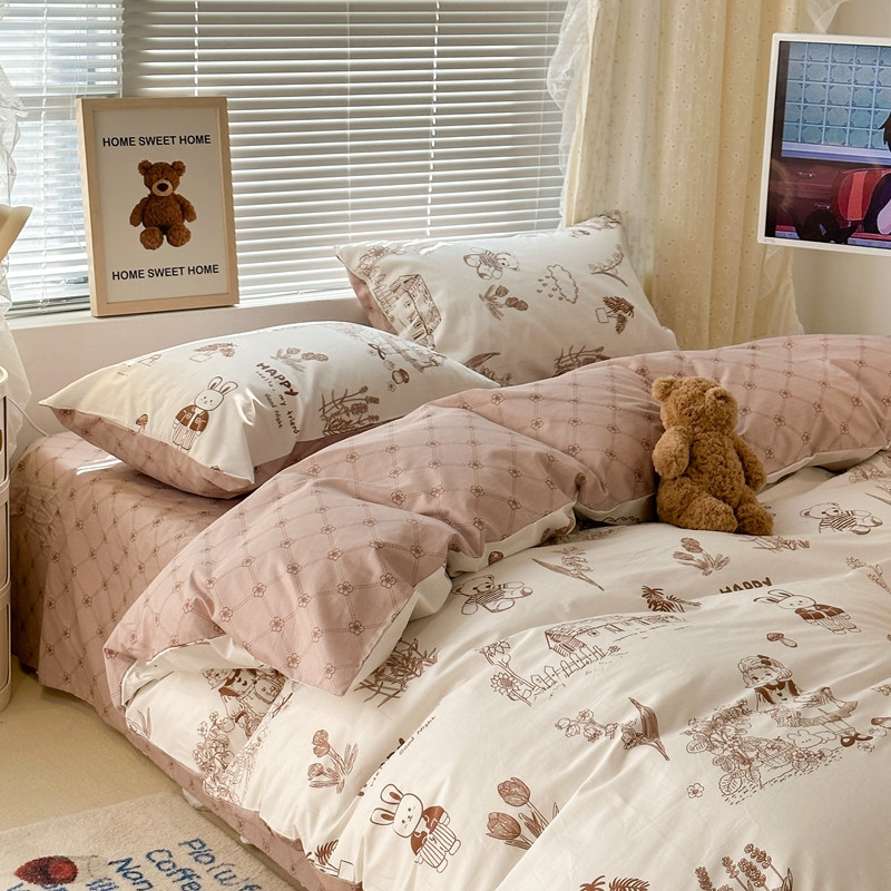 (总)昔可家纺 2024新款印花牛奶绒四件套系列-洛丽塔风,萝莉小兔,小熊烘焙屋,小熊玩偶屋