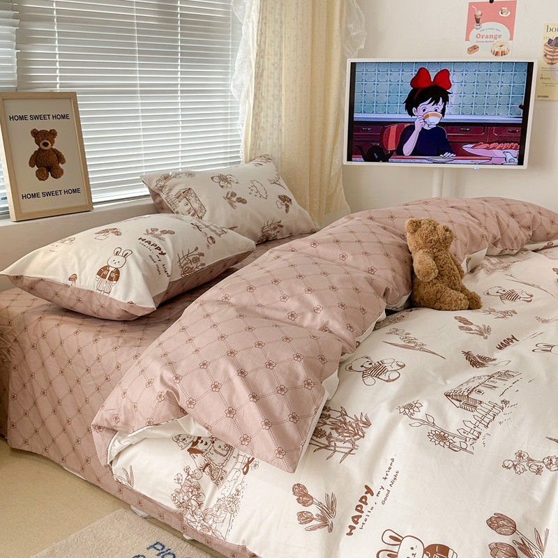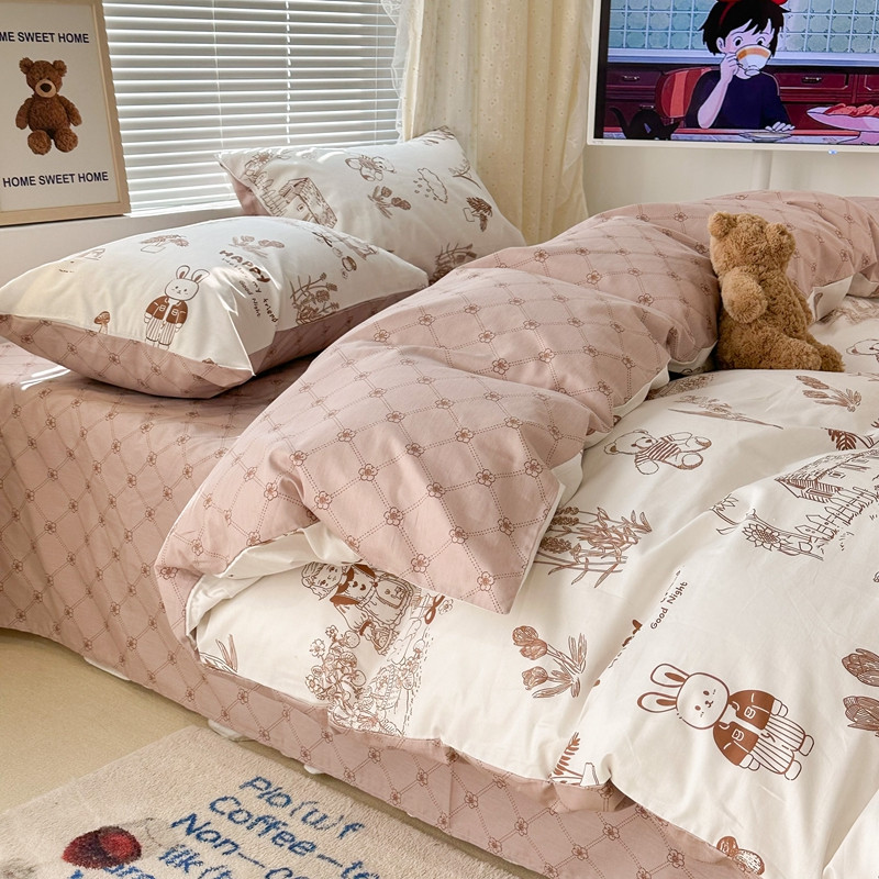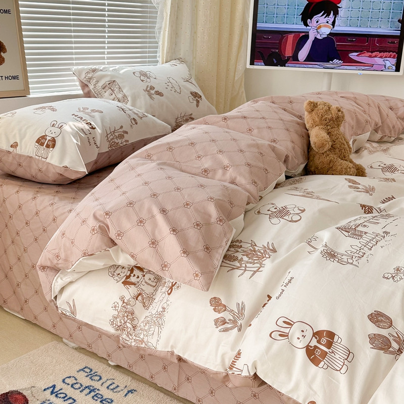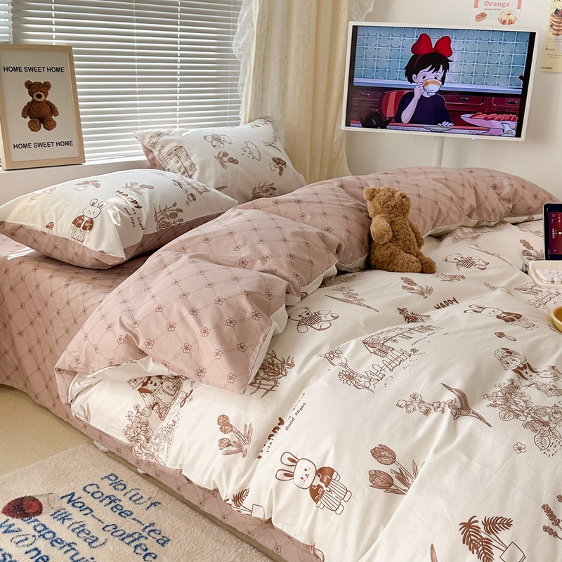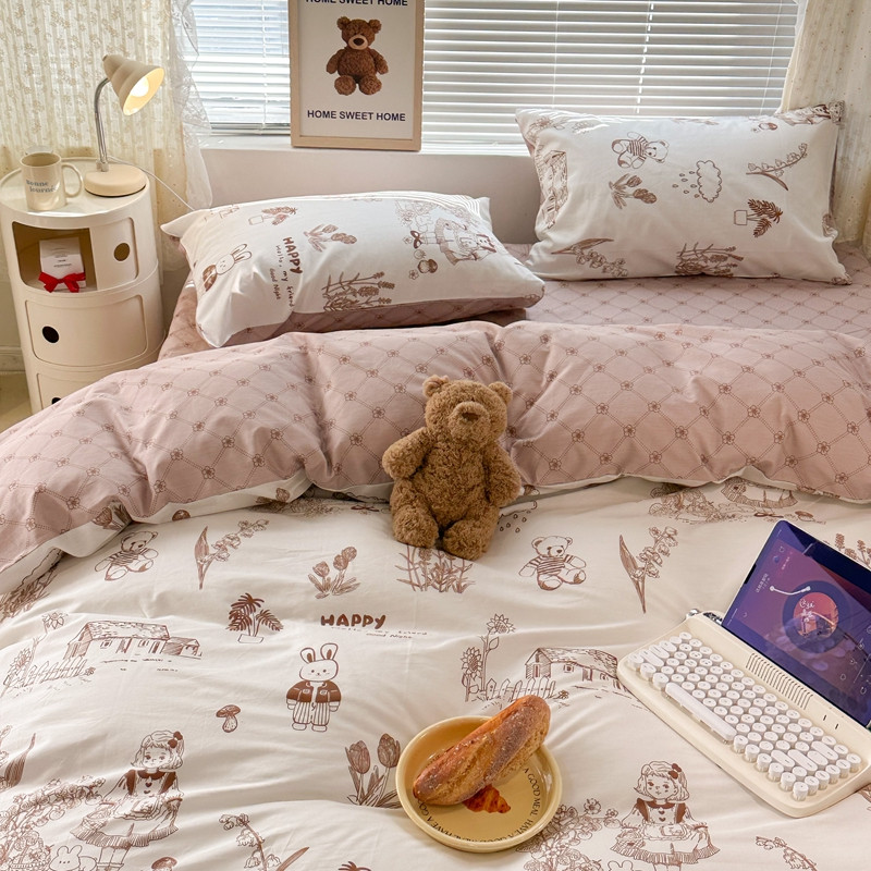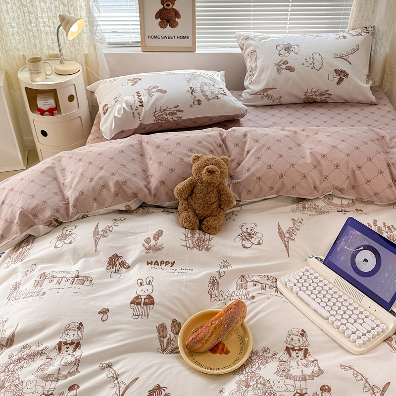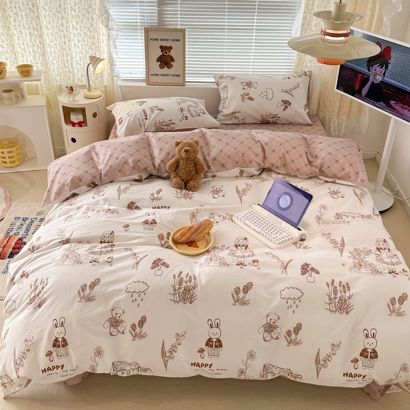(总)昔可家纺 2024新款印花牛奶绒四件套系列-洛丽塔风,萝莉小兔,小熊烘焙屋,小熊玩偶屋