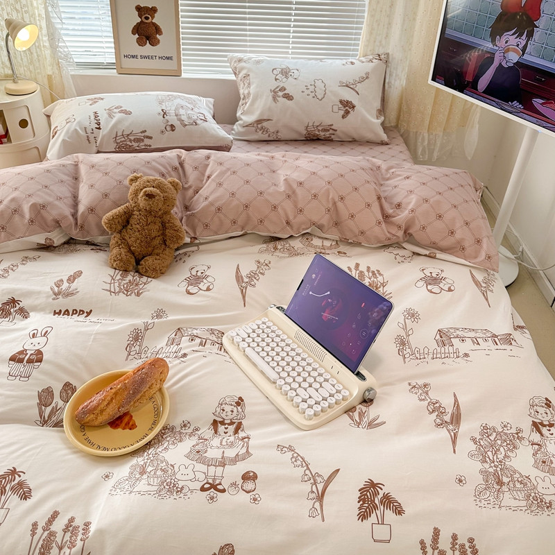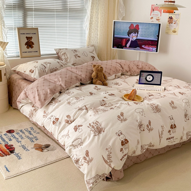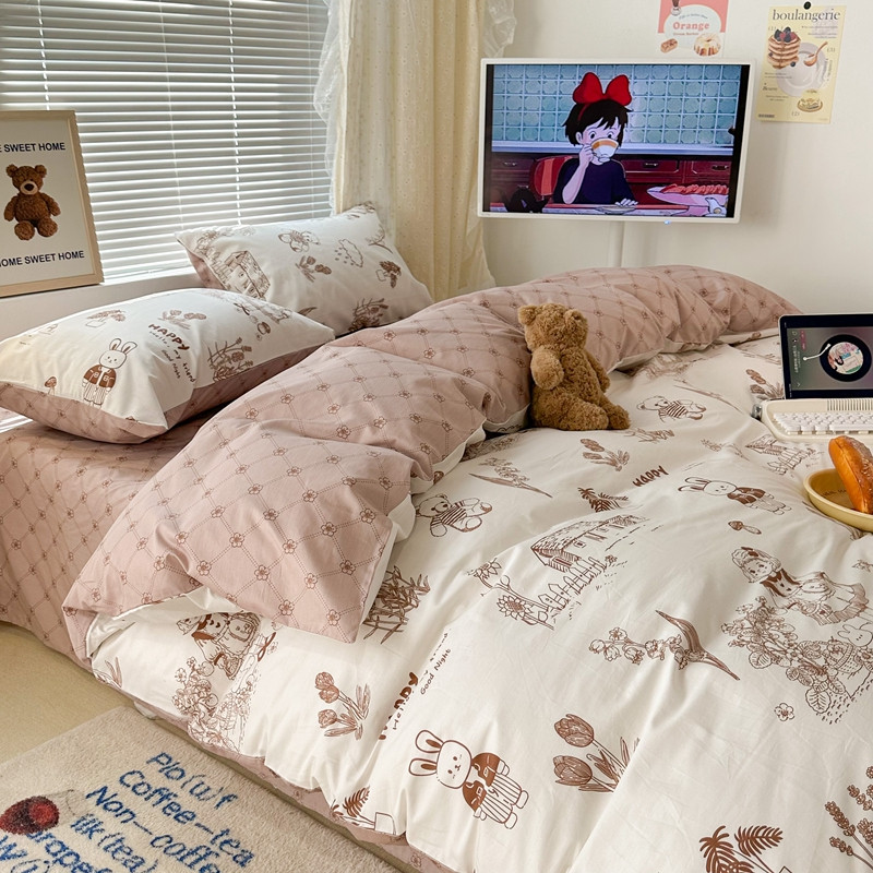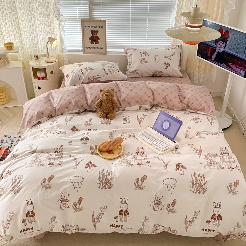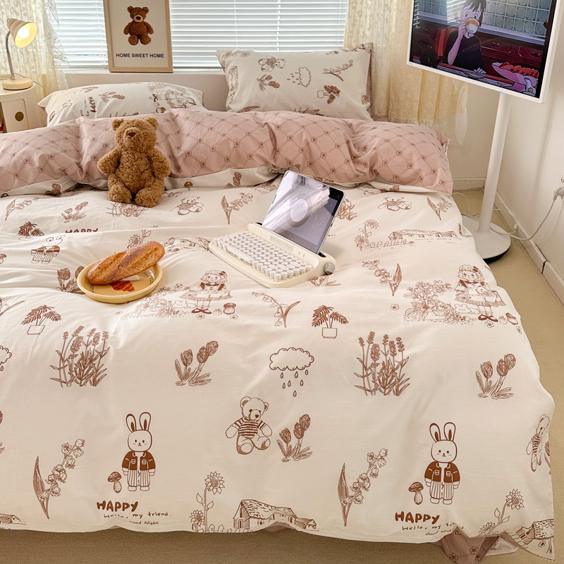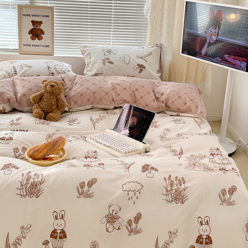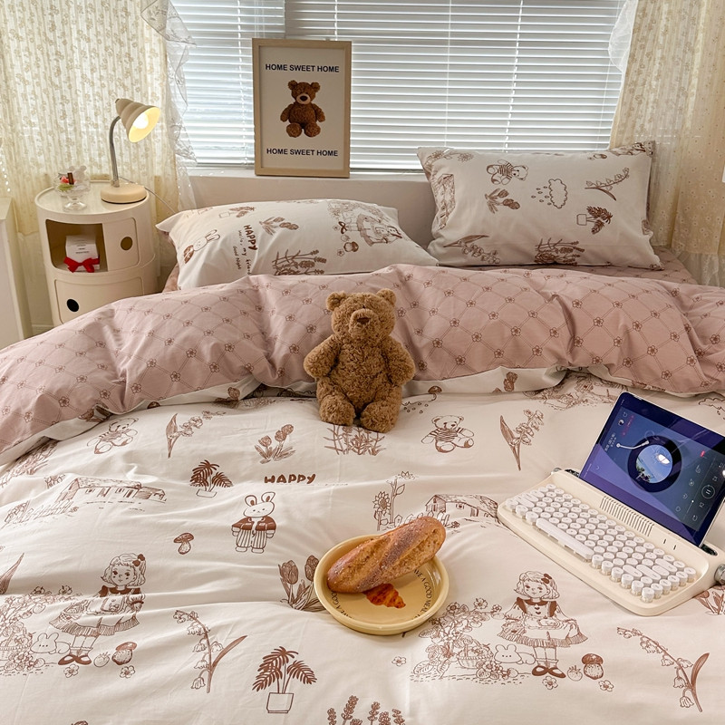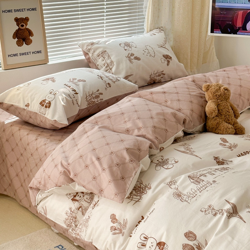 (总)昔可家纺 2024新款印花牛奶绒四件套系列-洛丽塔风,萝莉小兔,小熊烘焙屋,小熊玩偶屋