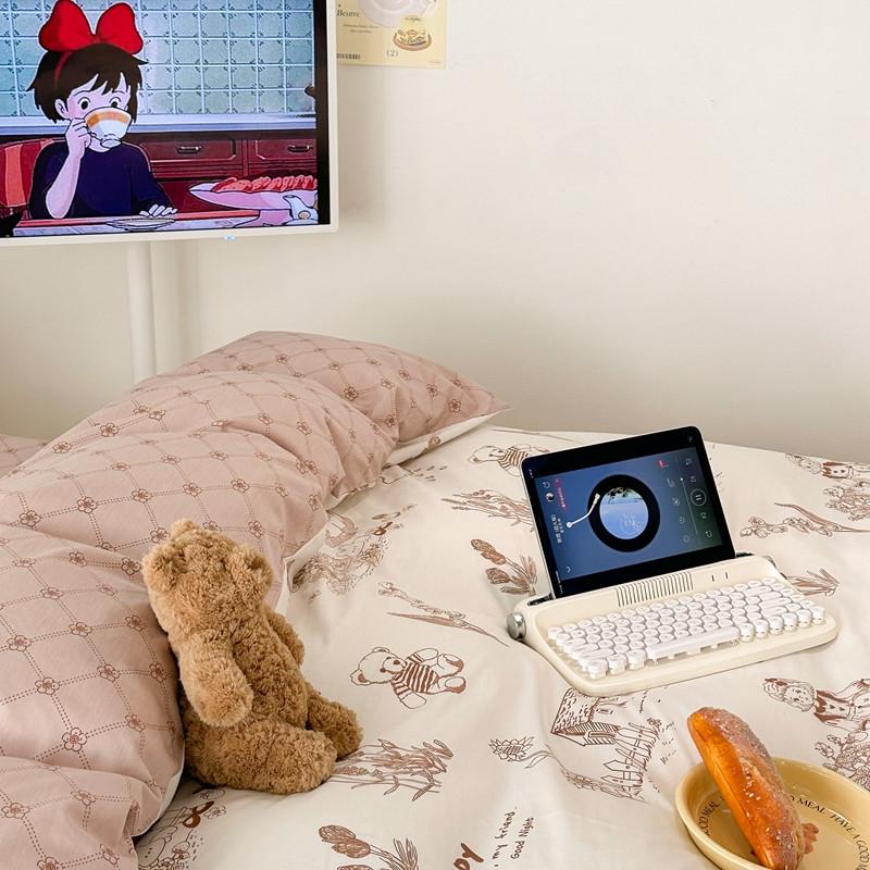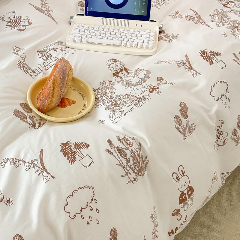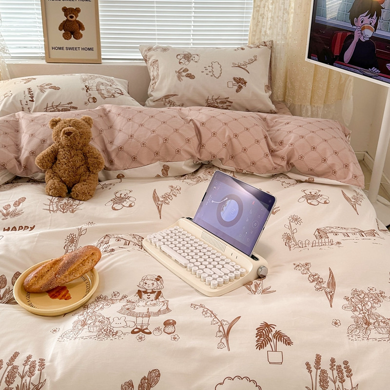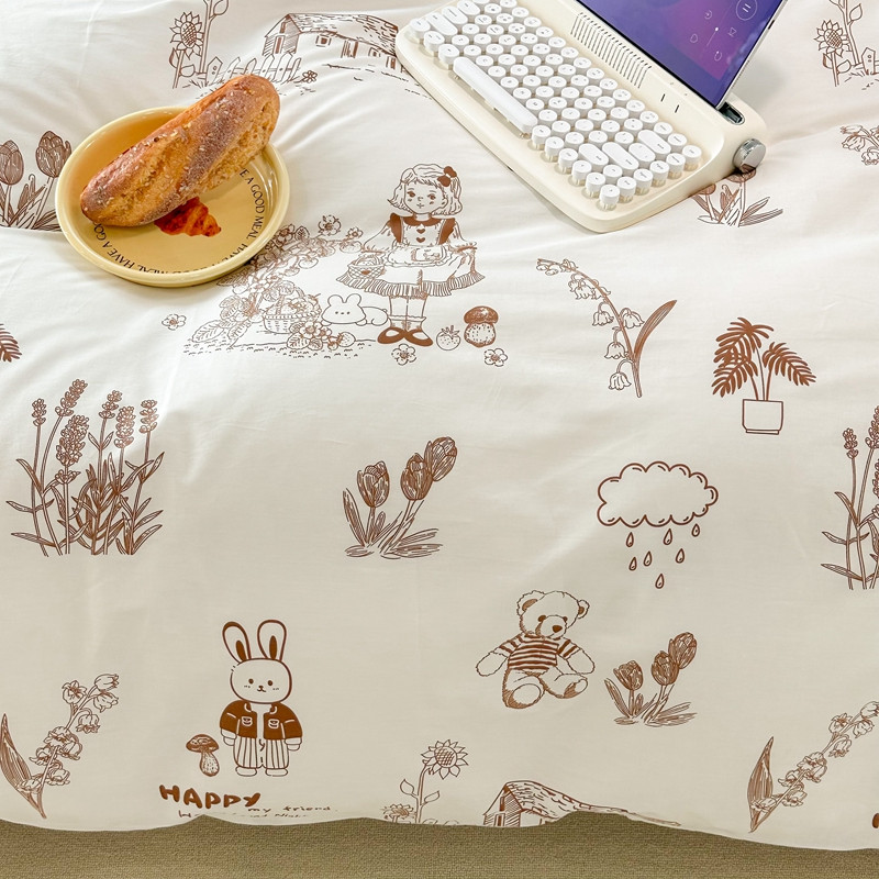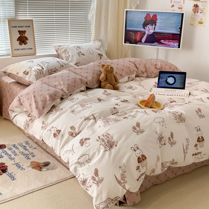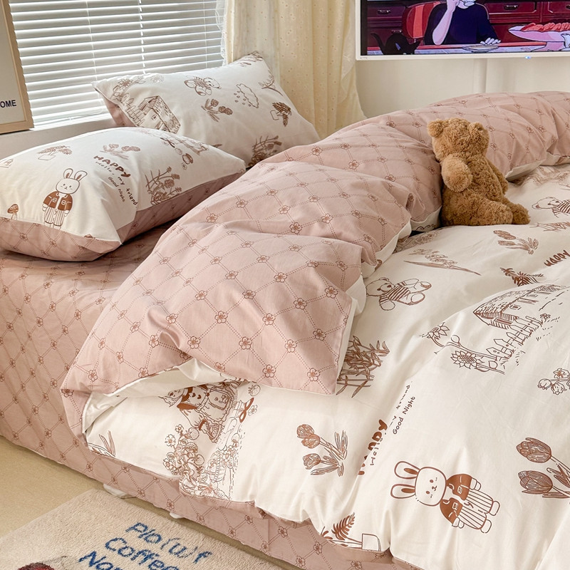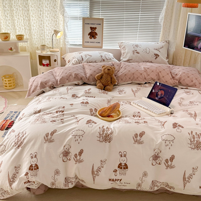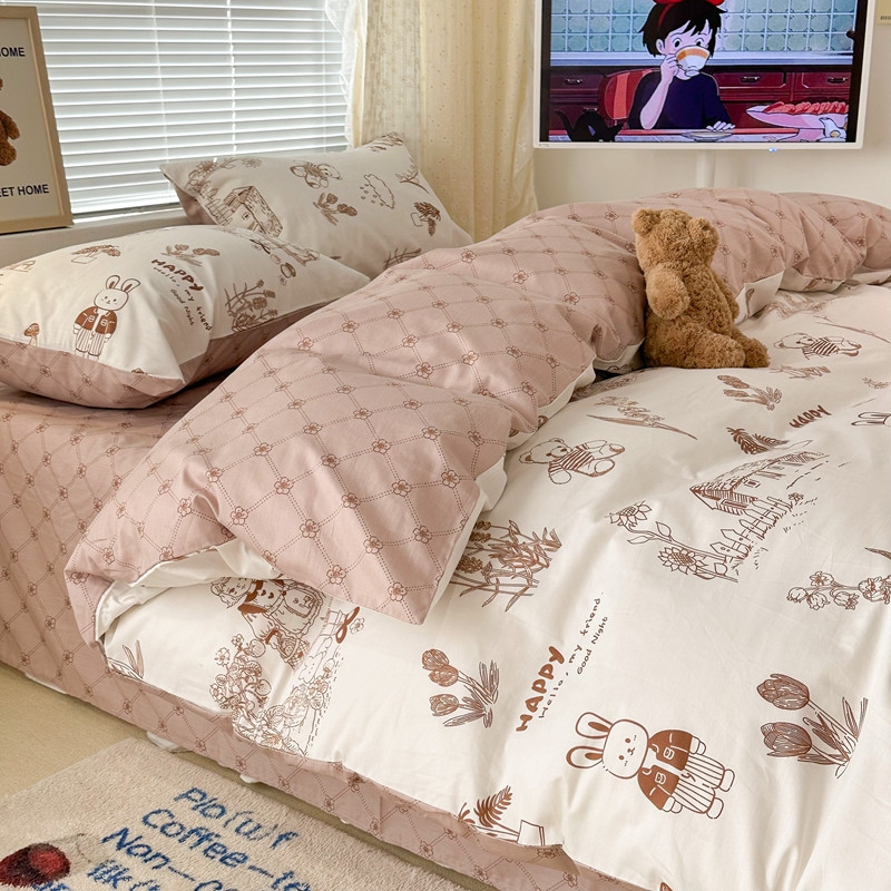 (总)昔可家纺 2024新款印花牛奶绒四件套系列-洛丽塔风,萝莉小兔,小熊烘焙屋,小熊玩偶屋