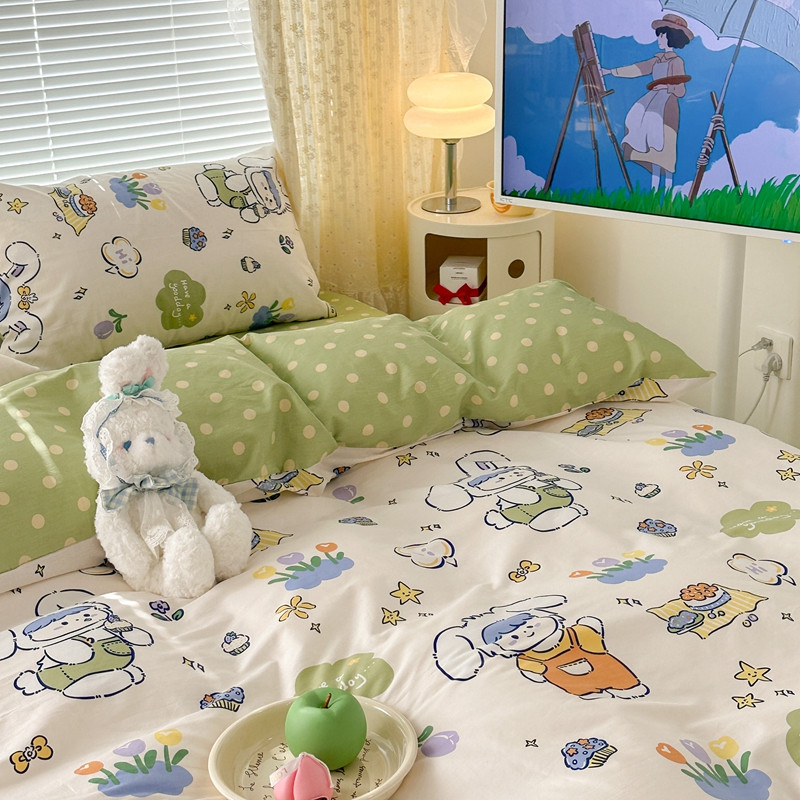 昔可 2023新款全棉二次元卡通系列四件套 兔茸茸的野餐