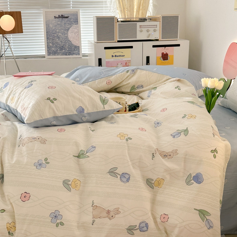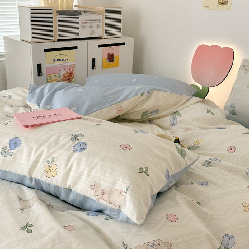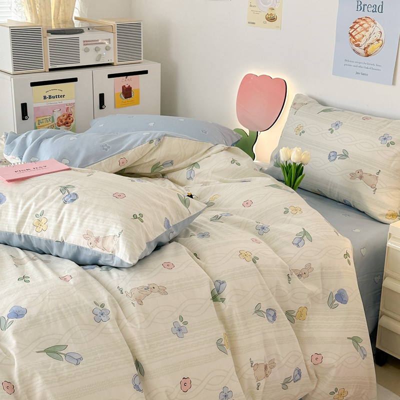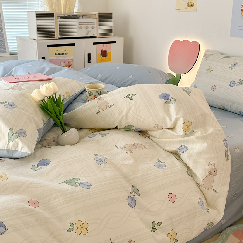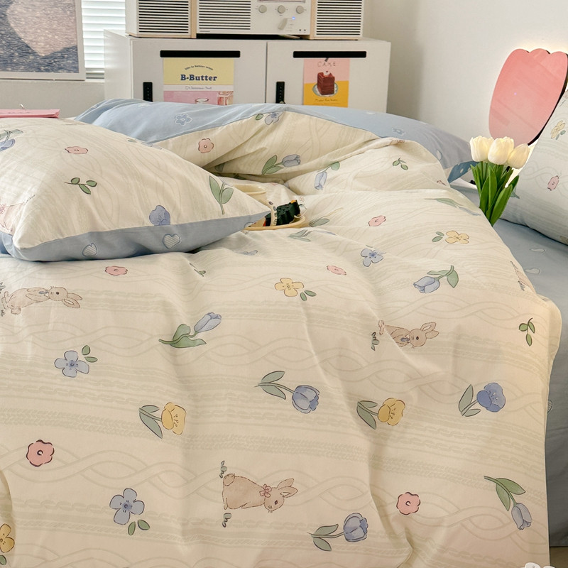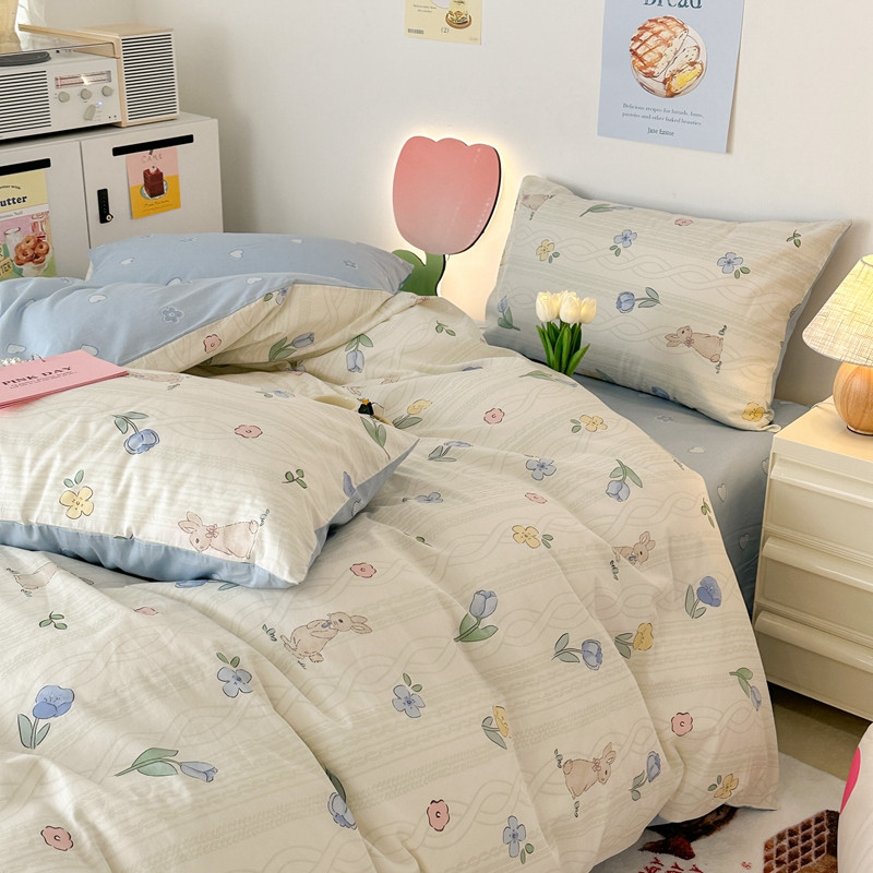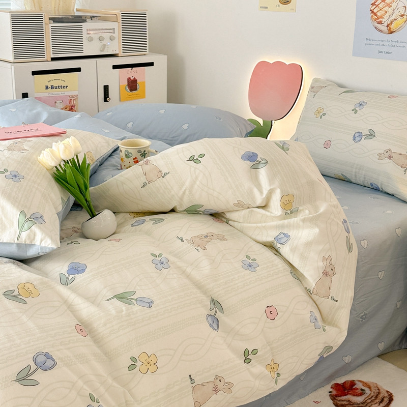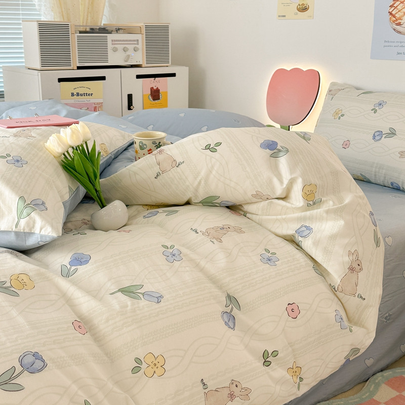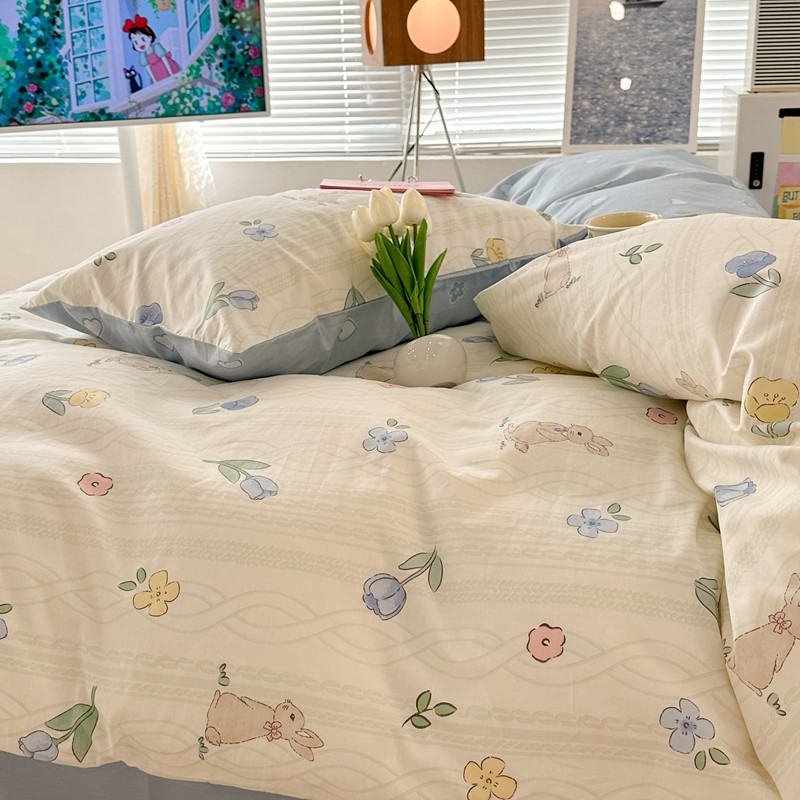 昔可 2023新款小清新全棉四件套 森系花园兔