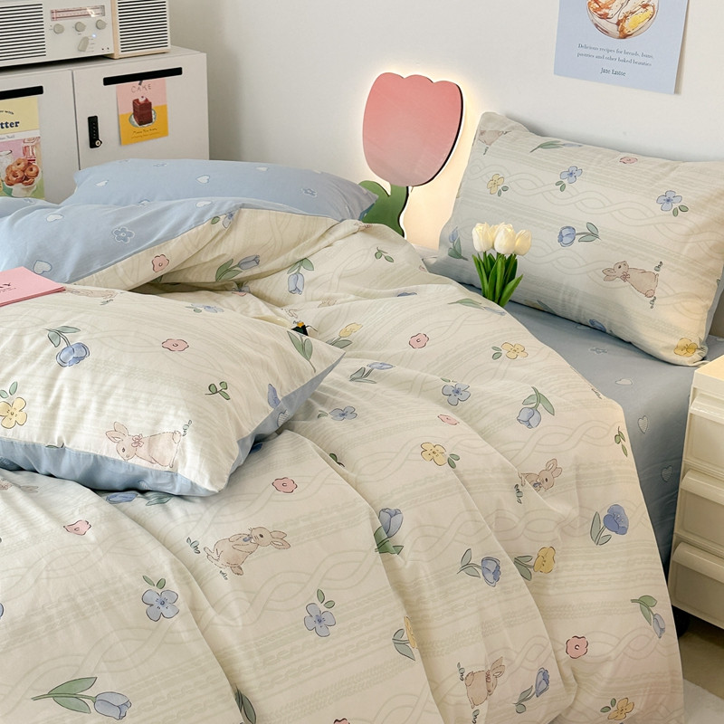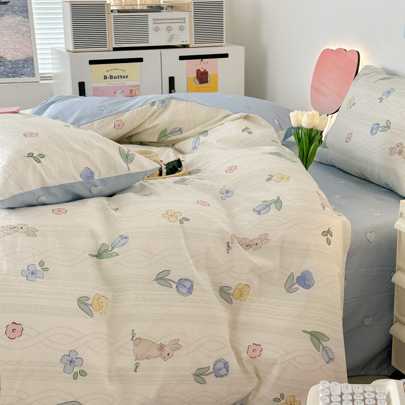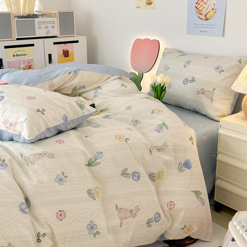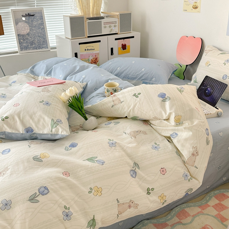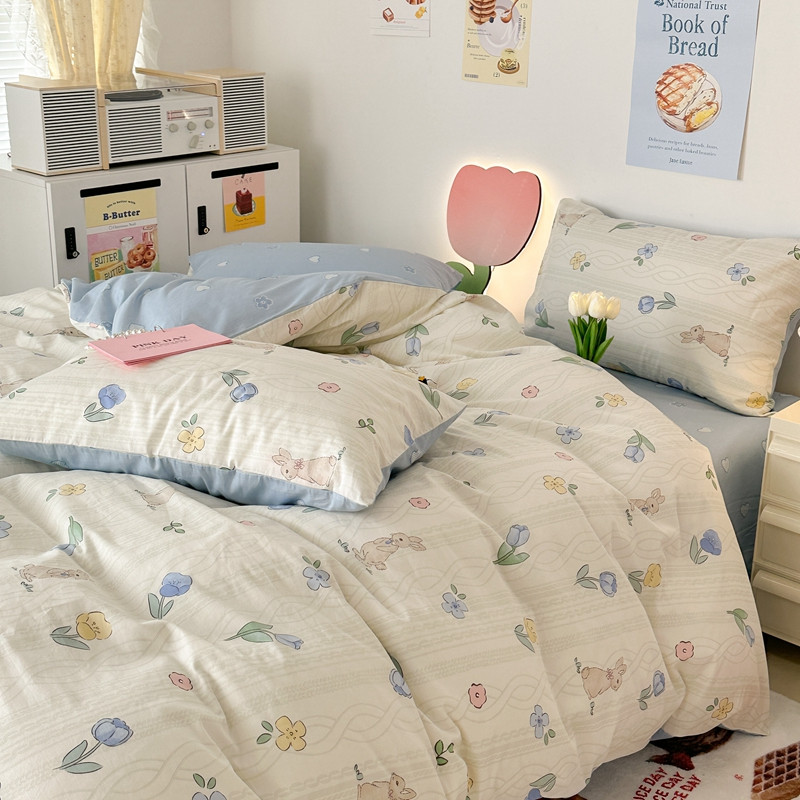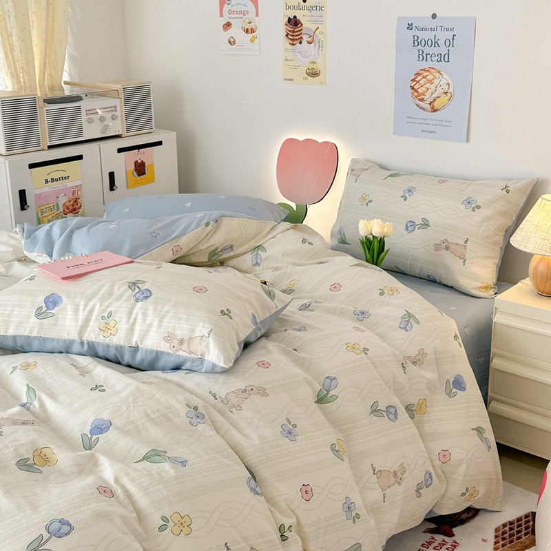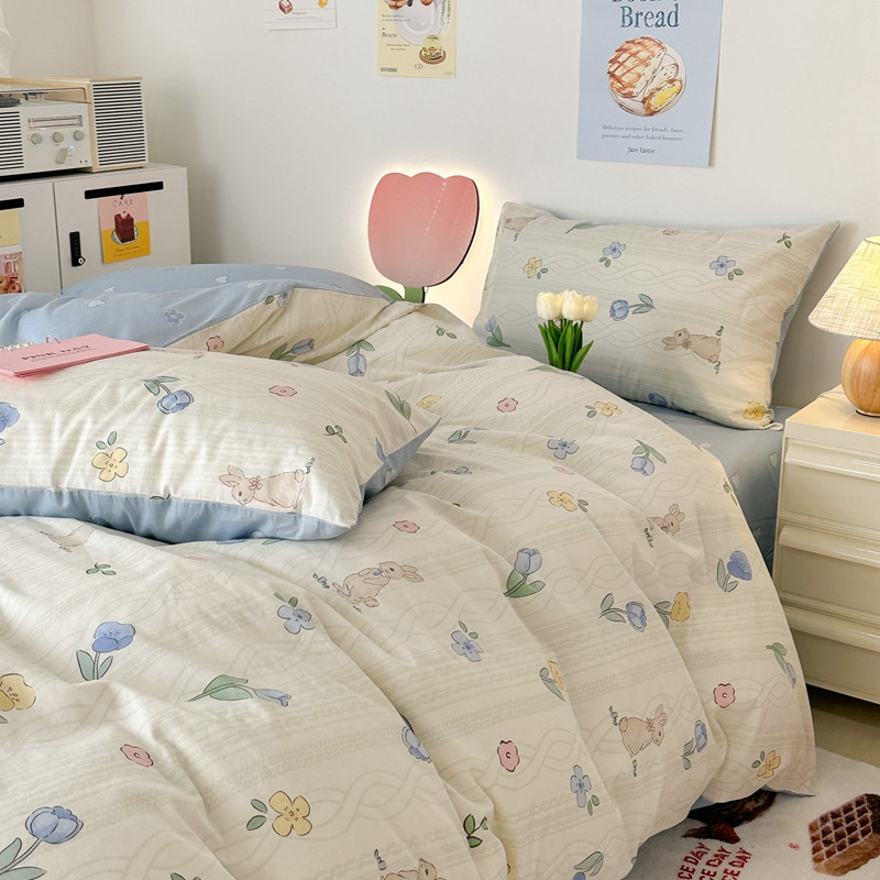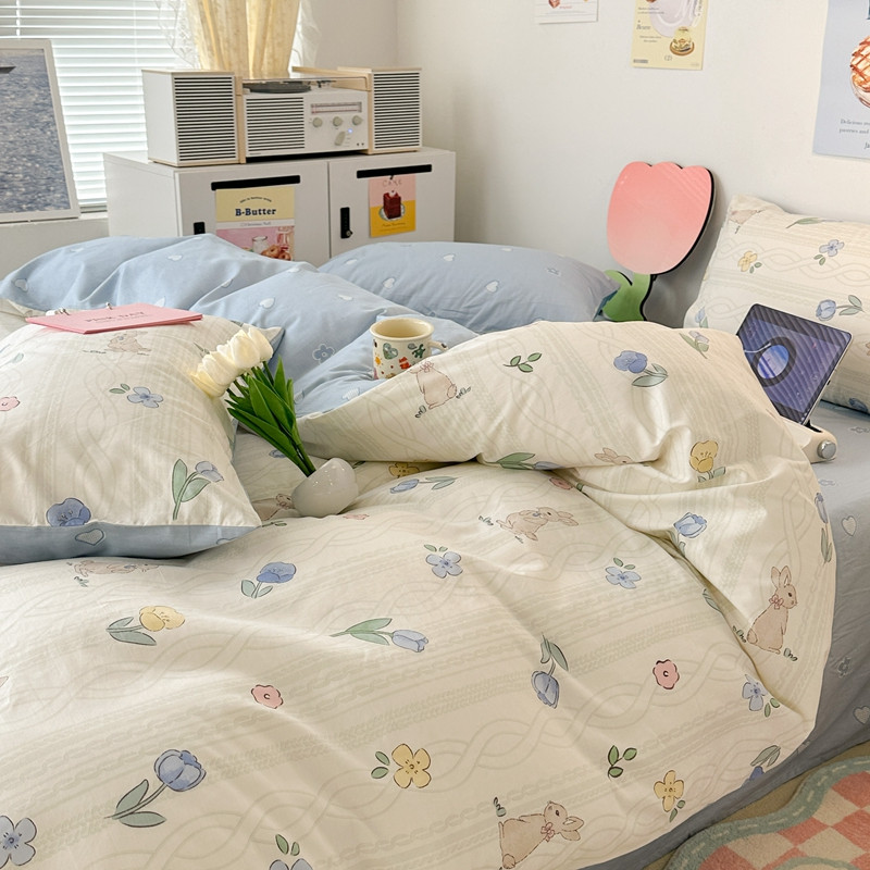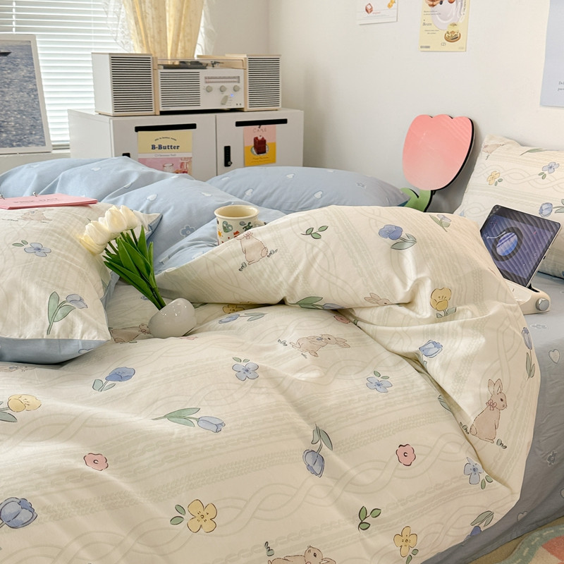 昔可 2023新款小清新全棉四件套 森系花园兔