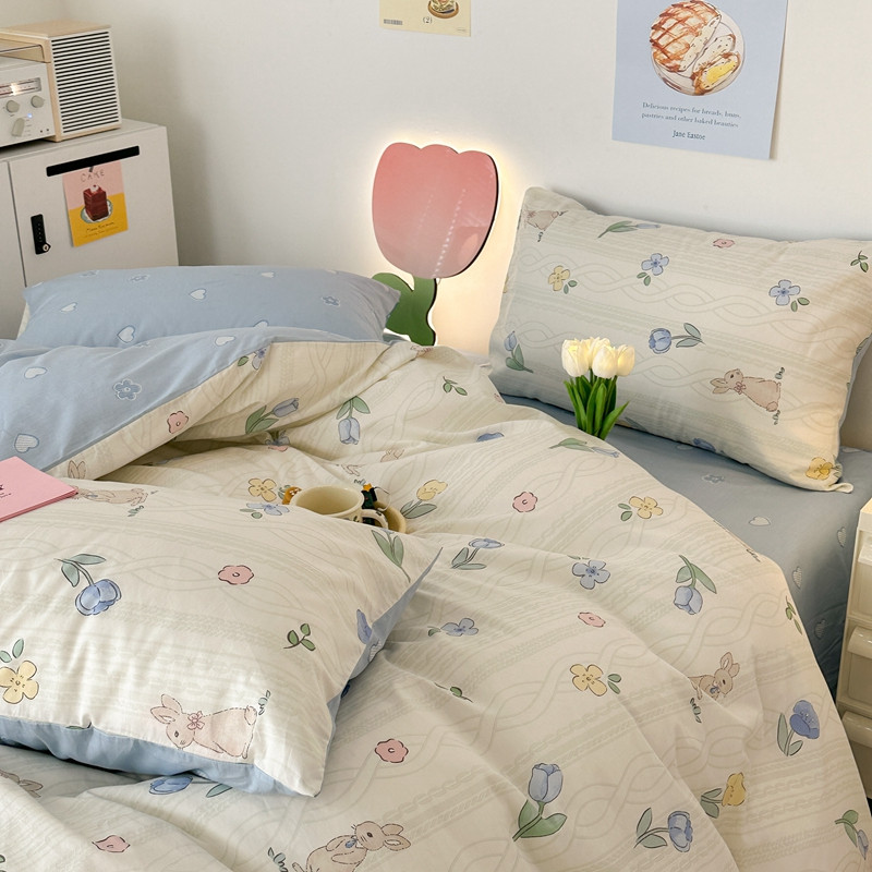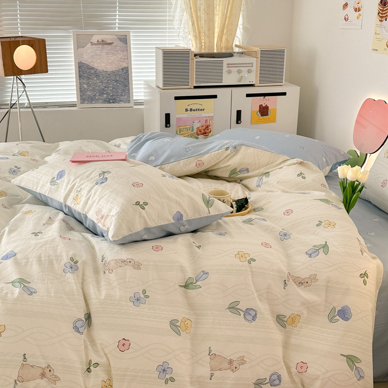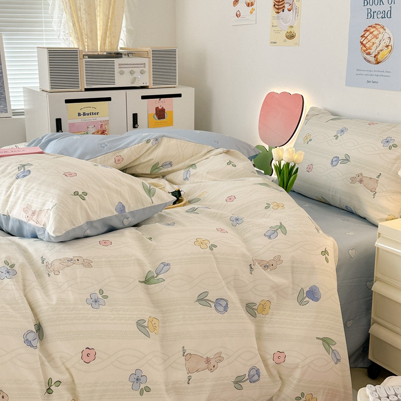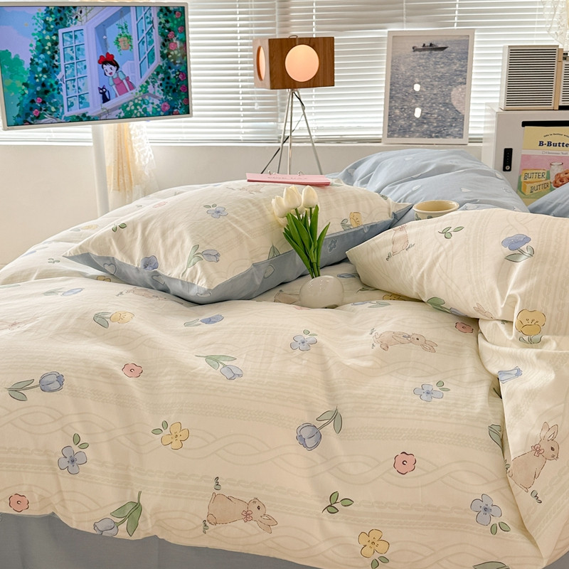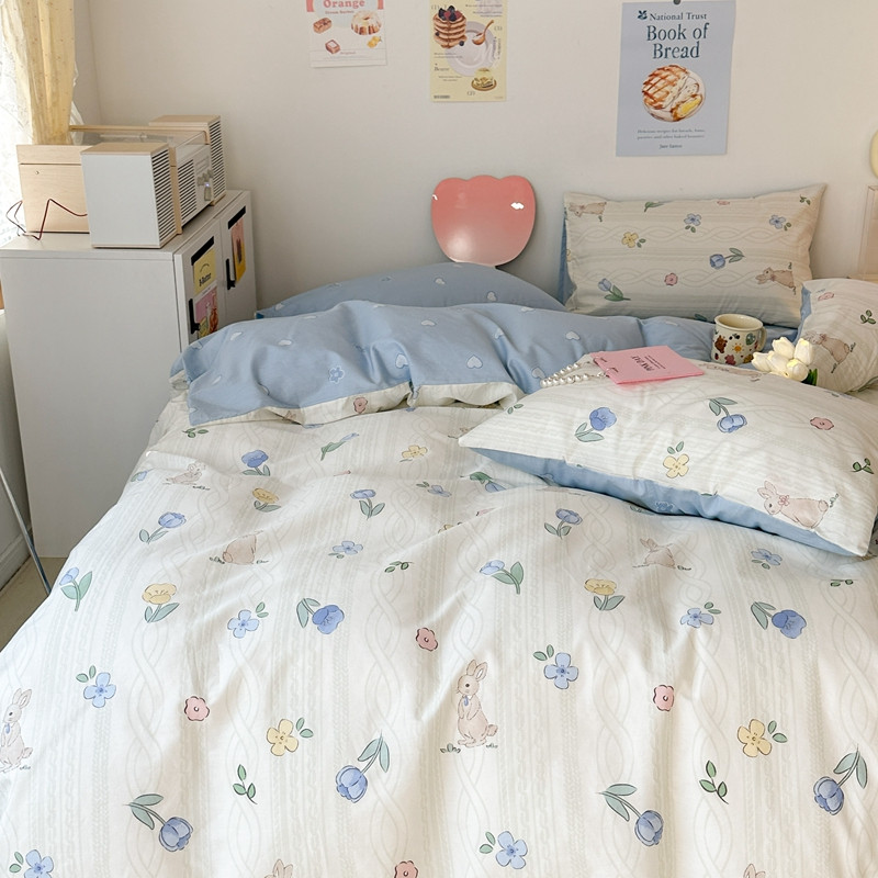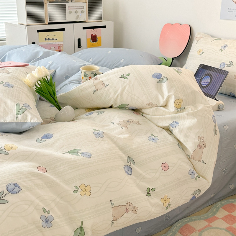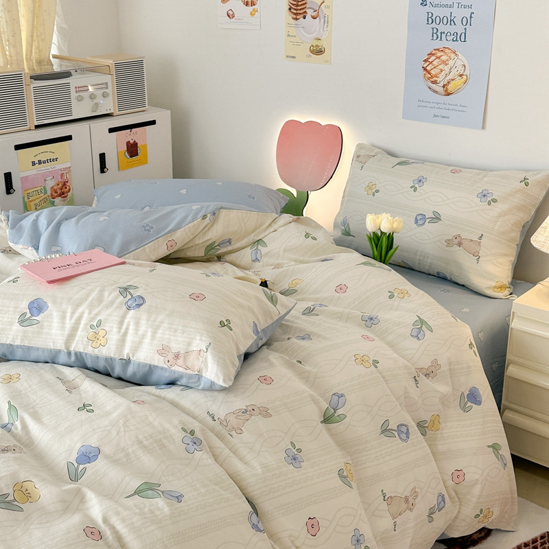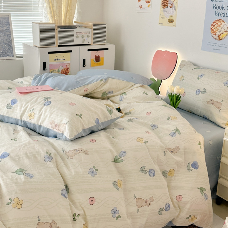 昔可 2023新款小清新全棉四件套 森系花园兔