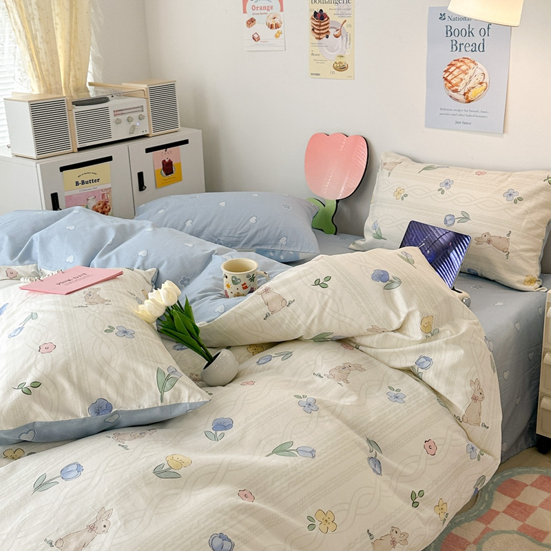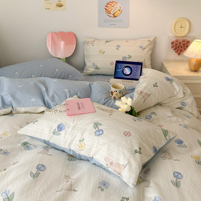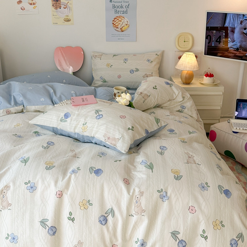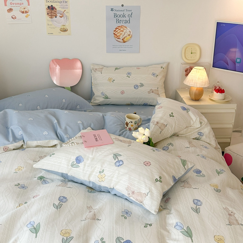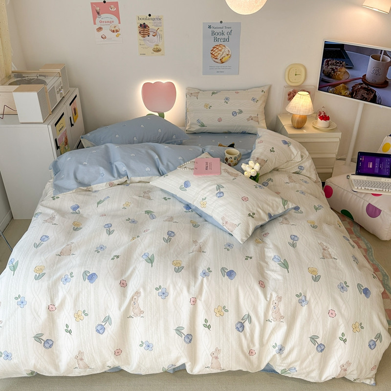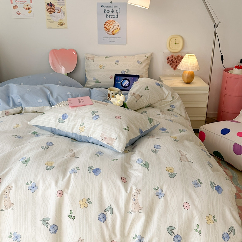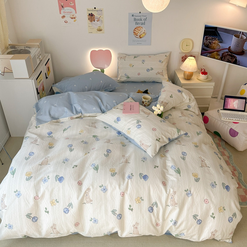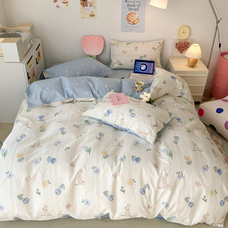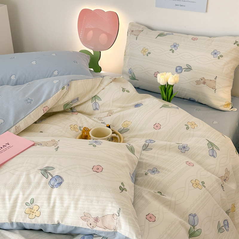 昔可 2023新款小清新全棉四件套 森系花园兔