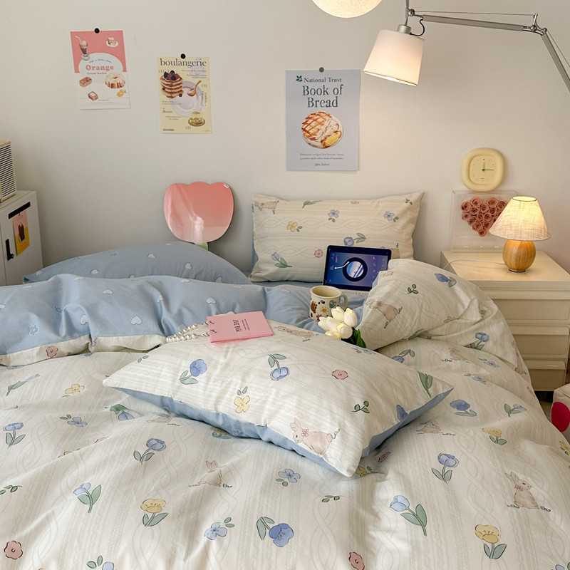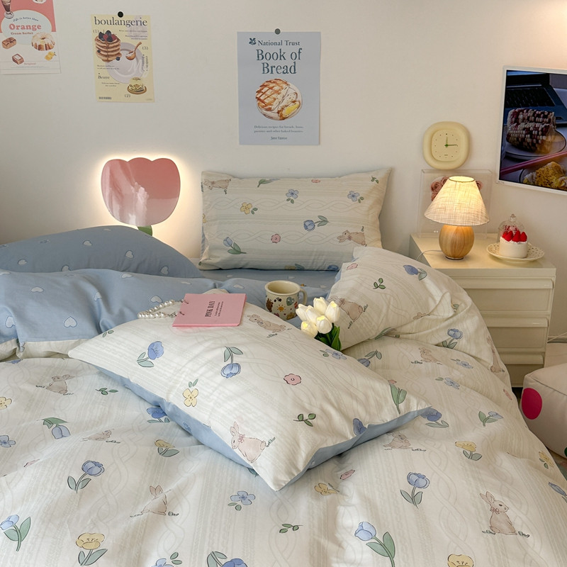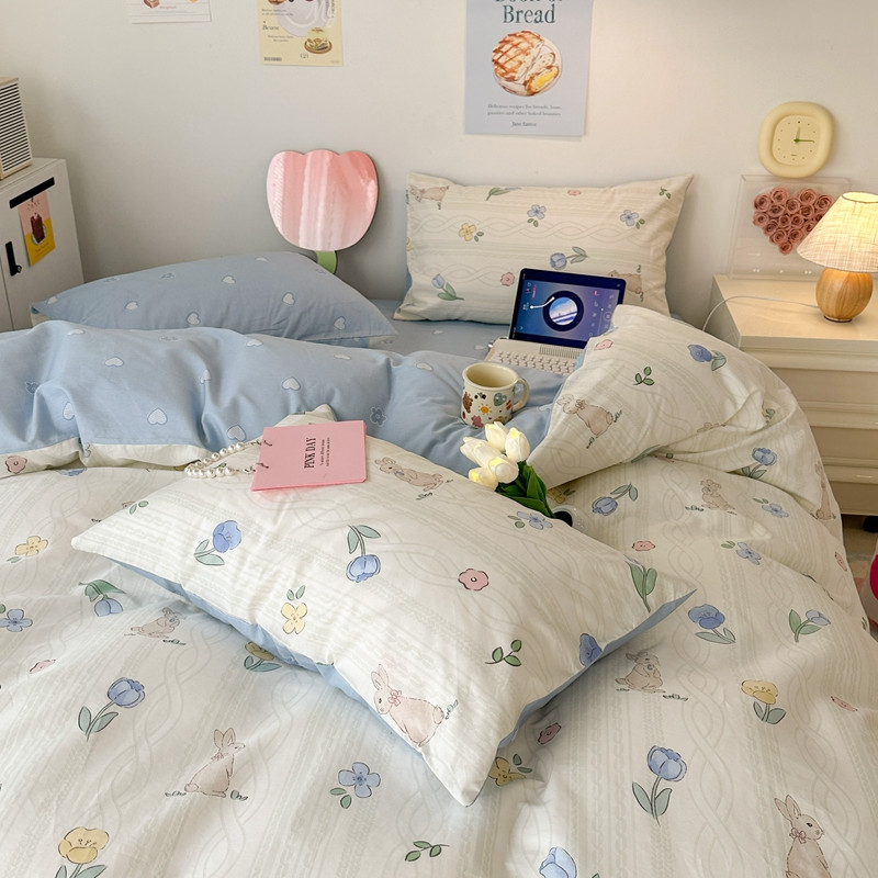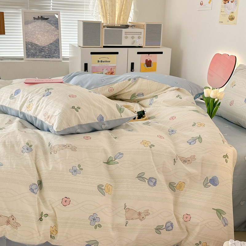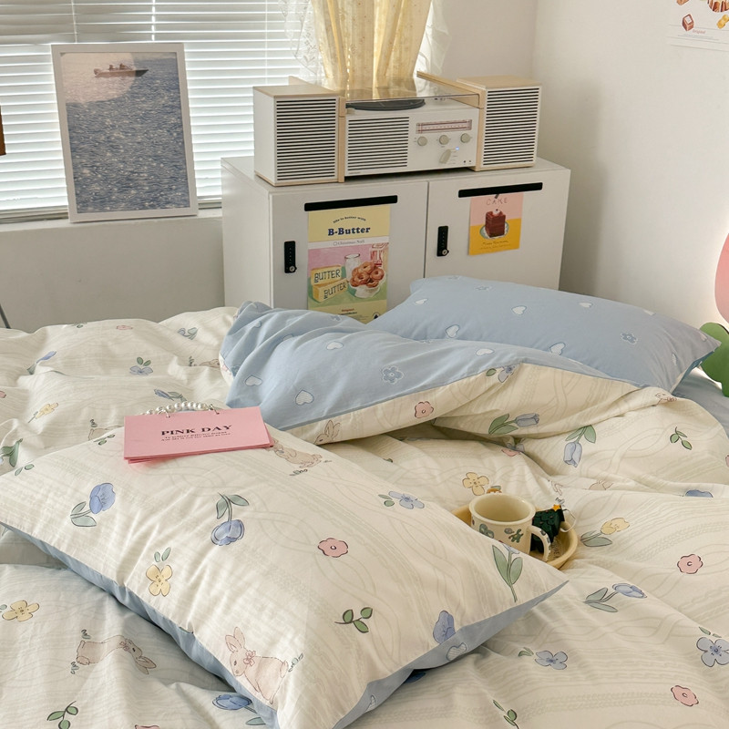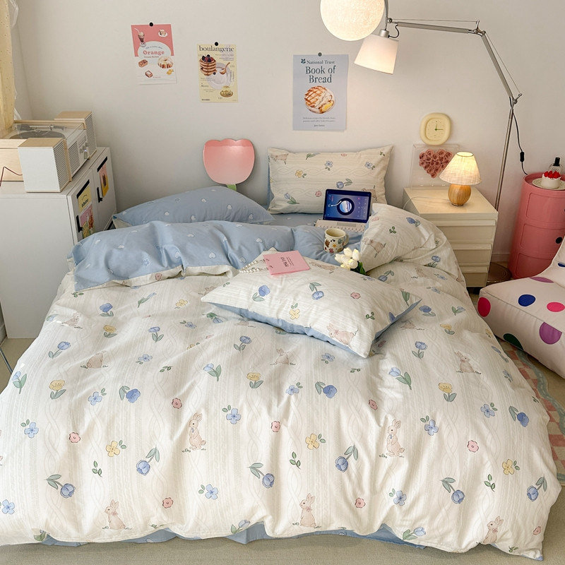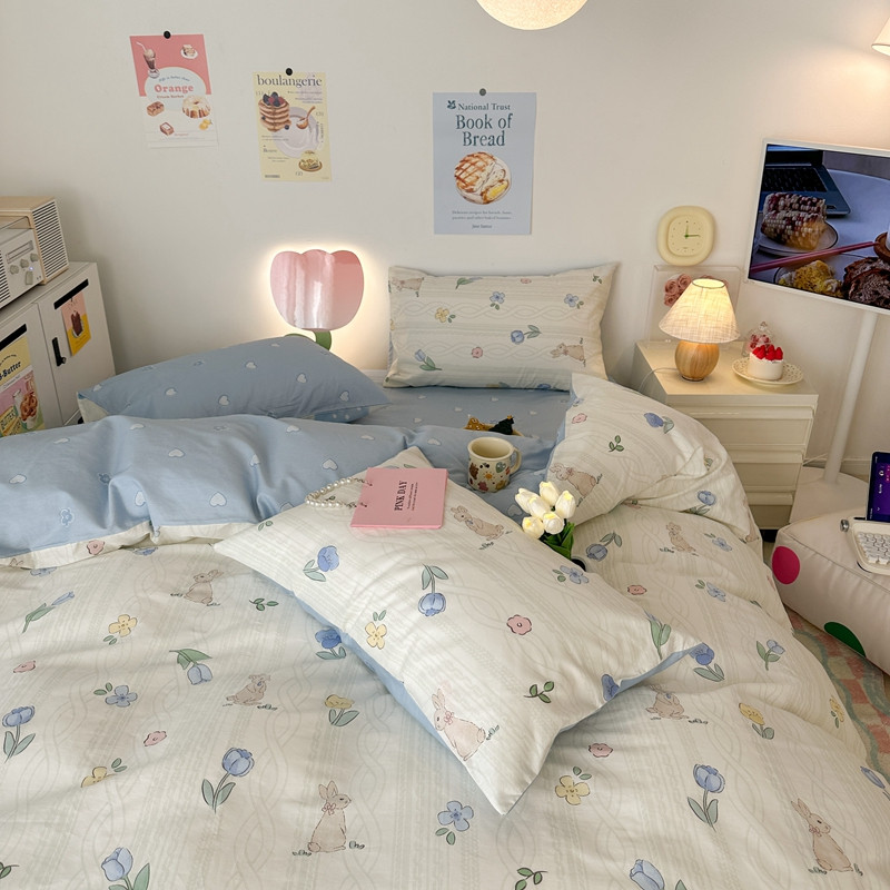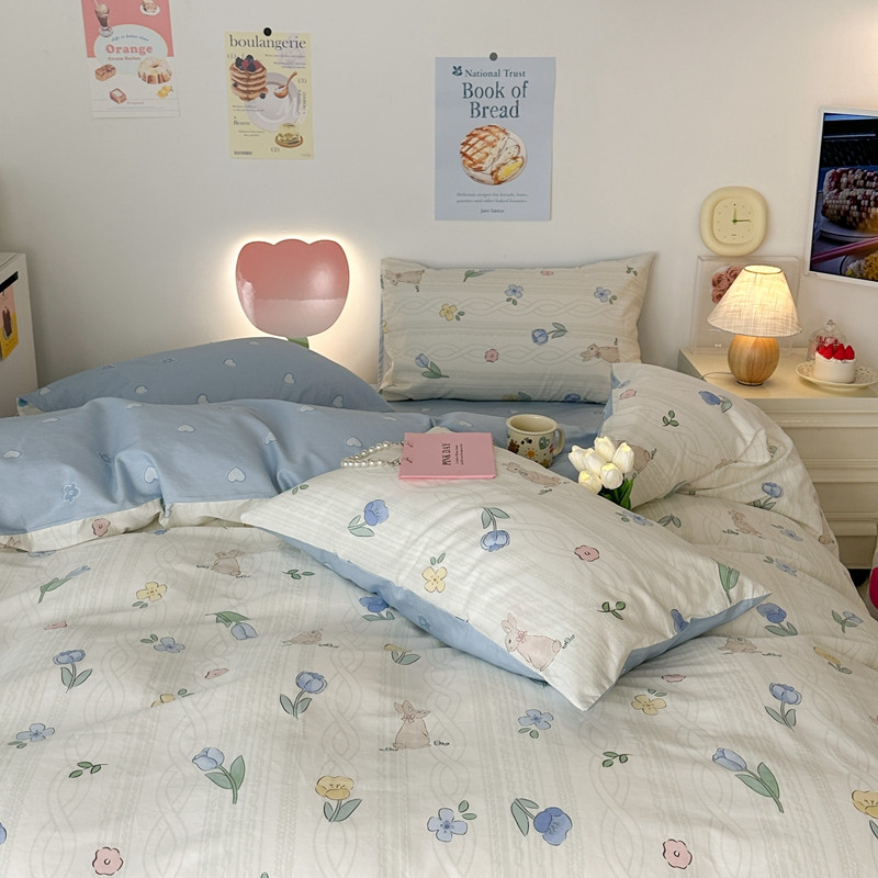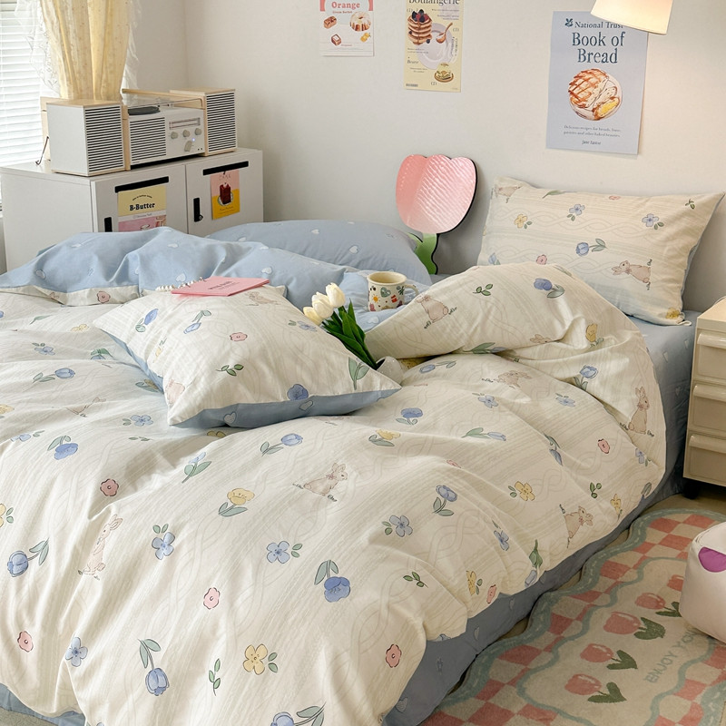 昔可 2023新款小清新全棉四件套 森系花园兔