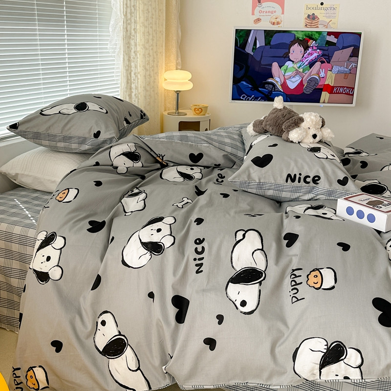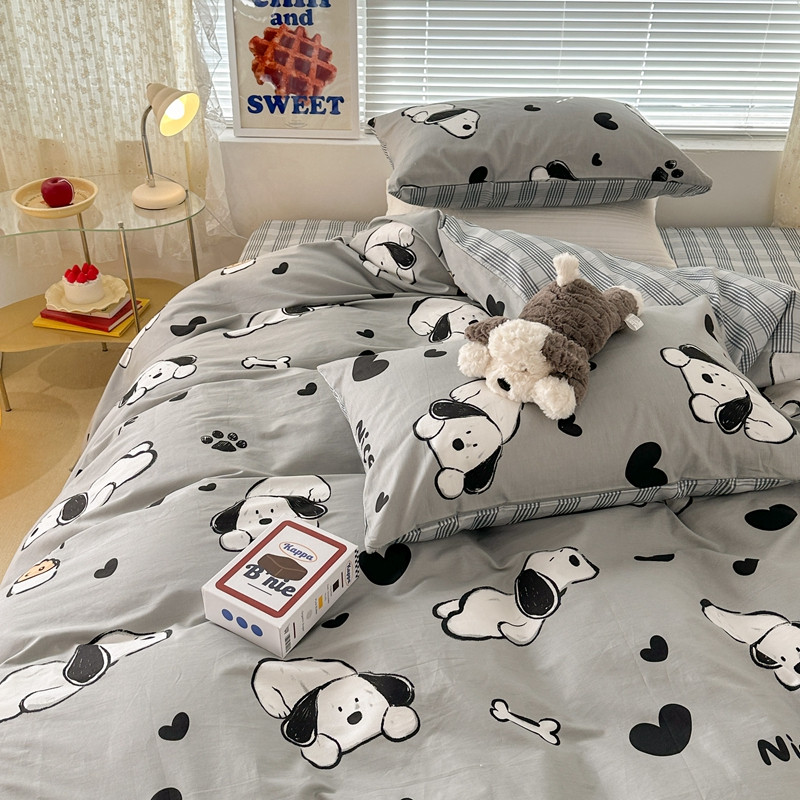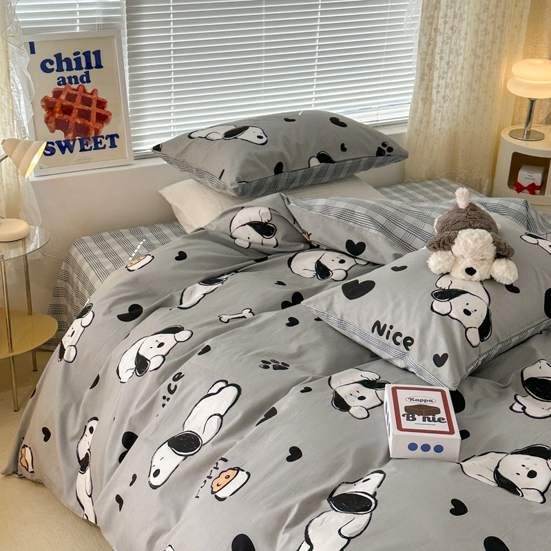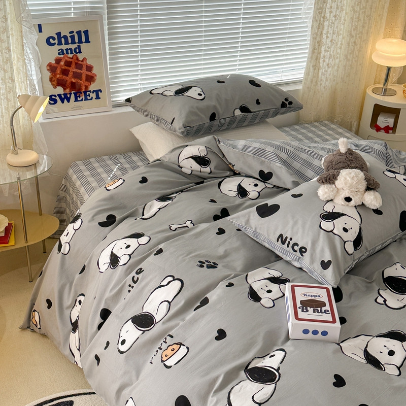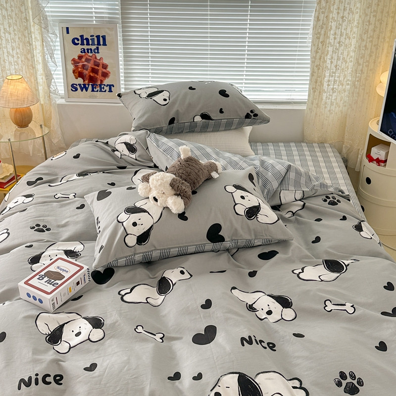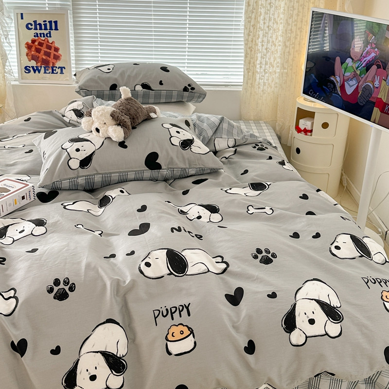 商品名称:昔可 2023新款全棉卡通系列四件套 脚印狗狗 灰