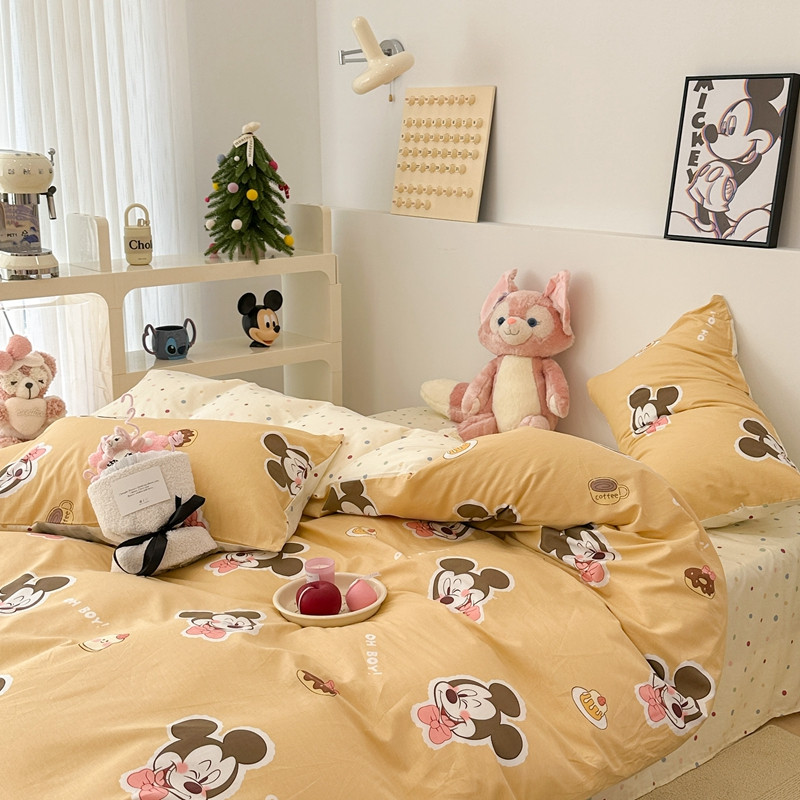 昔可家纺 2023新款迪士尼系列全棉四件套 蛋糕米奇黄