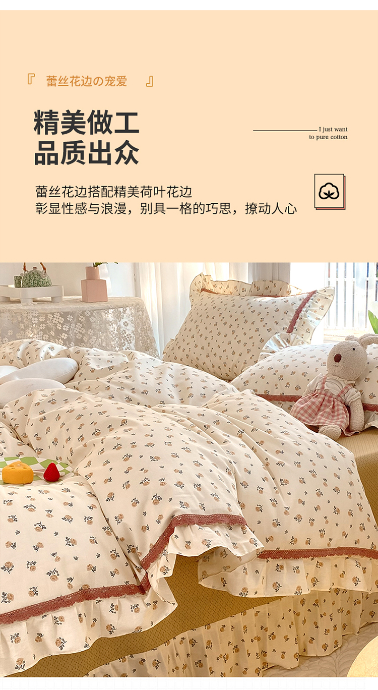 (总)艾唯希2025新款全棉小香风工艺四件套纯棉小花边碎花被套韩式公主风,初朵,春漾,漫丁蔷薇,觅秋,密玲花语,慕归十里,小青藤-米,小樱-咖,雅集,雅蔓花语,樱花,悠然雅居-粉