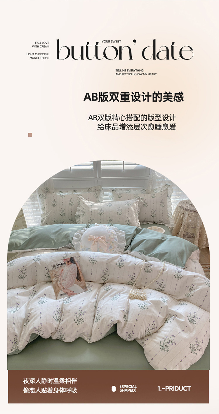 商品名称:潮邦 2025新款13372全棉韩式花卉四件套【含买家秀】 萝莉塔紫