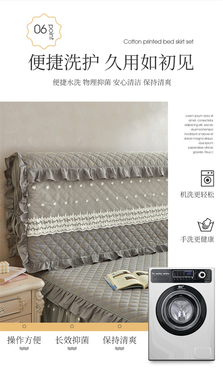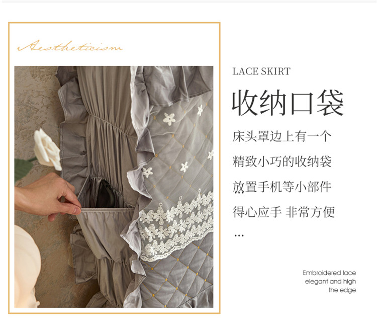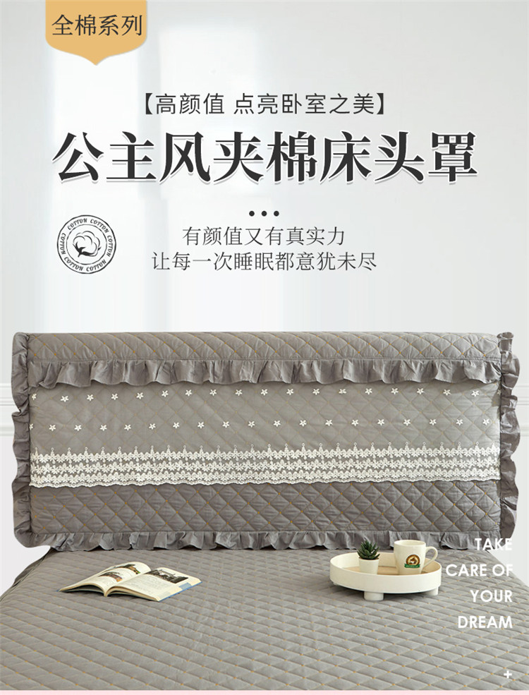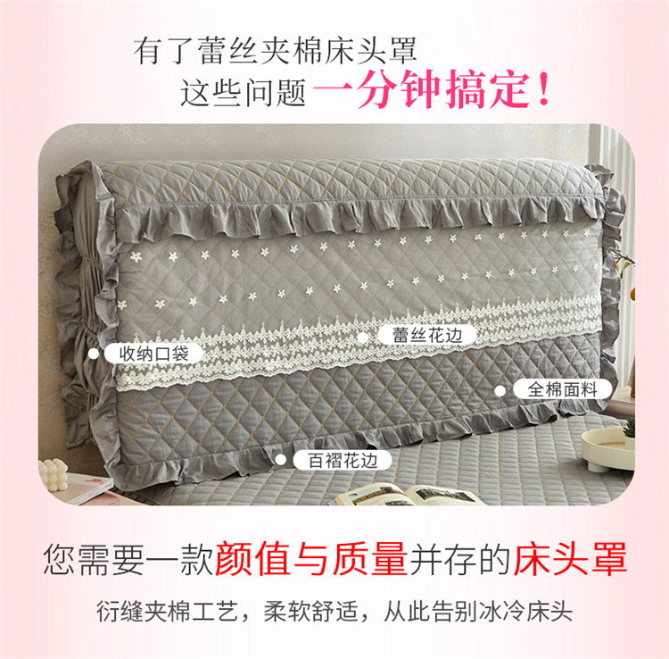 商品名称:十个点 2024新款全棉公主夹棉床头罩 灰色