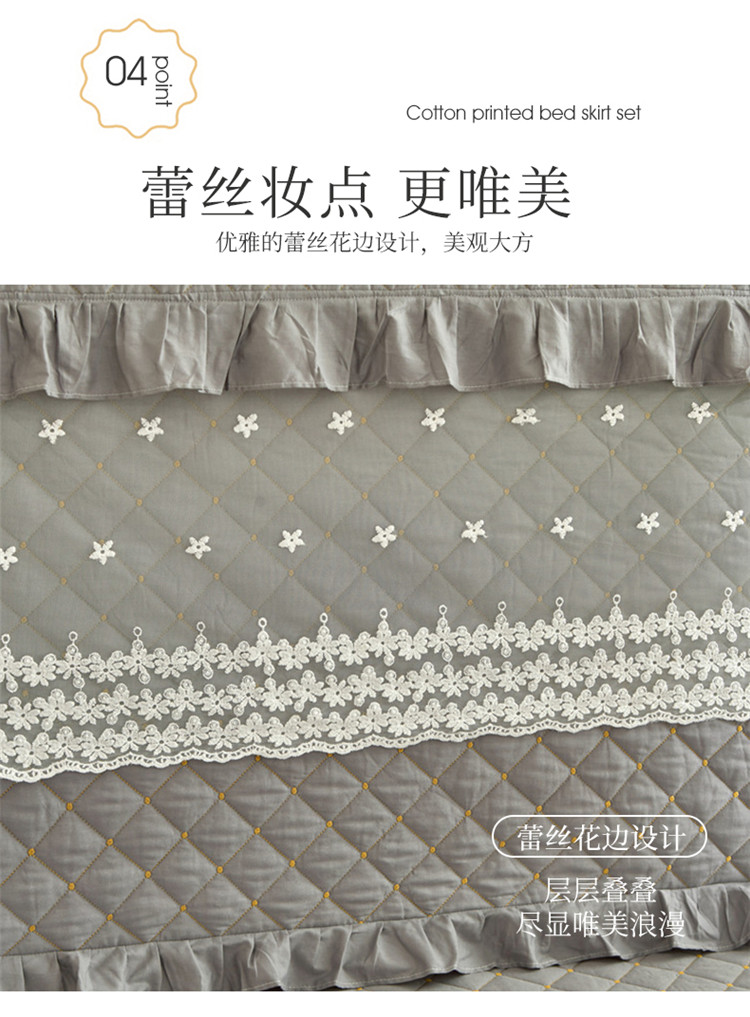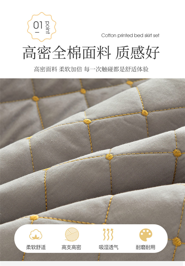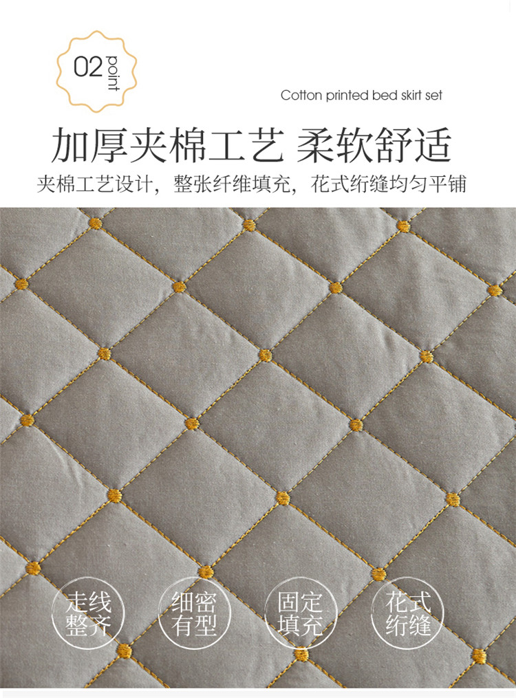 (总)十个点家纺 2025新款千鸟格磨毛绗缝夹棉纯色花边床裙三件套,经典白色,经典兰色,经典浅灰,经典浅驼,经典深灰,经典玉粉