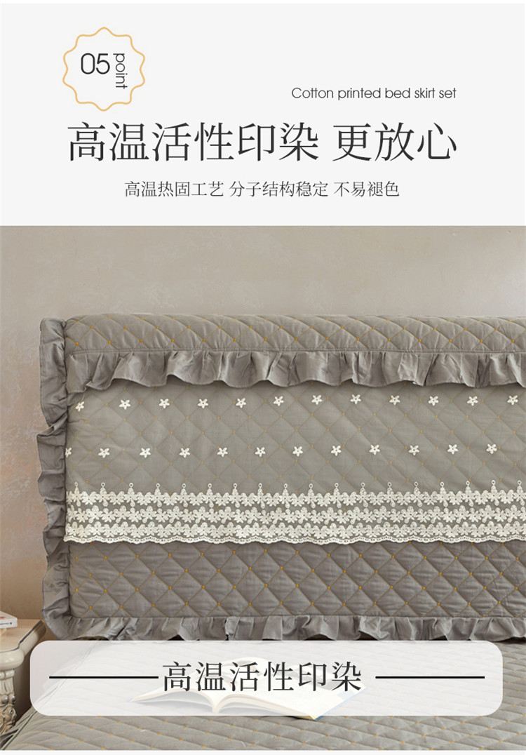 十个点 2024新款全棉公主夹棉床头罩 灰色