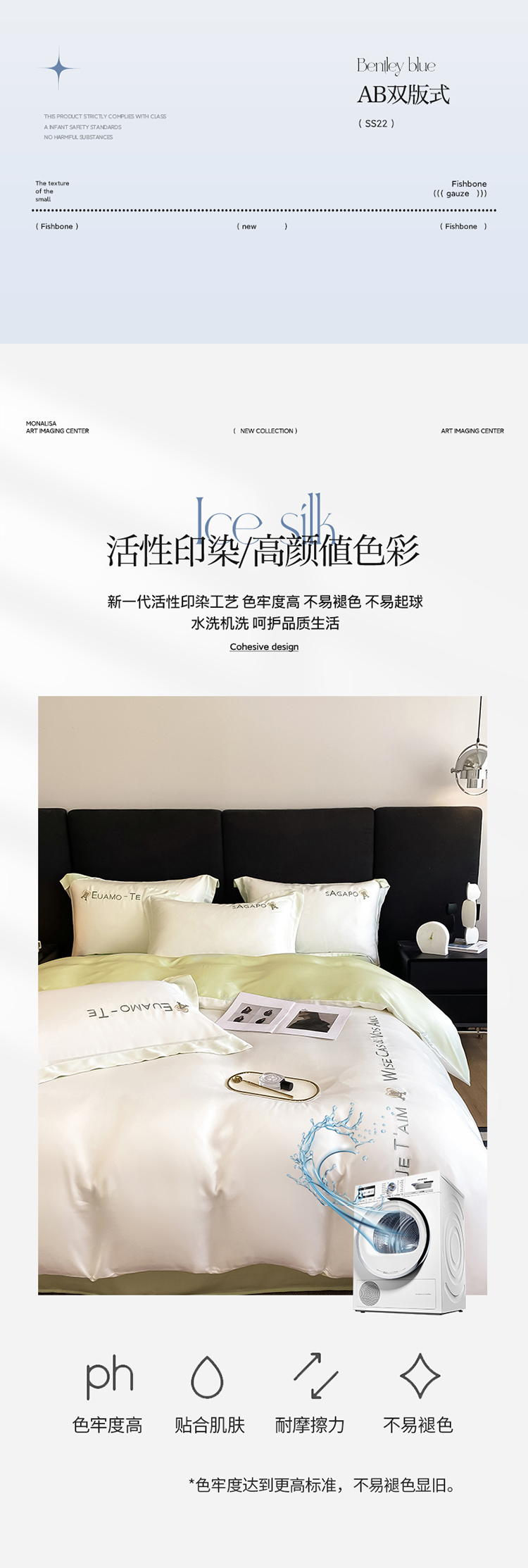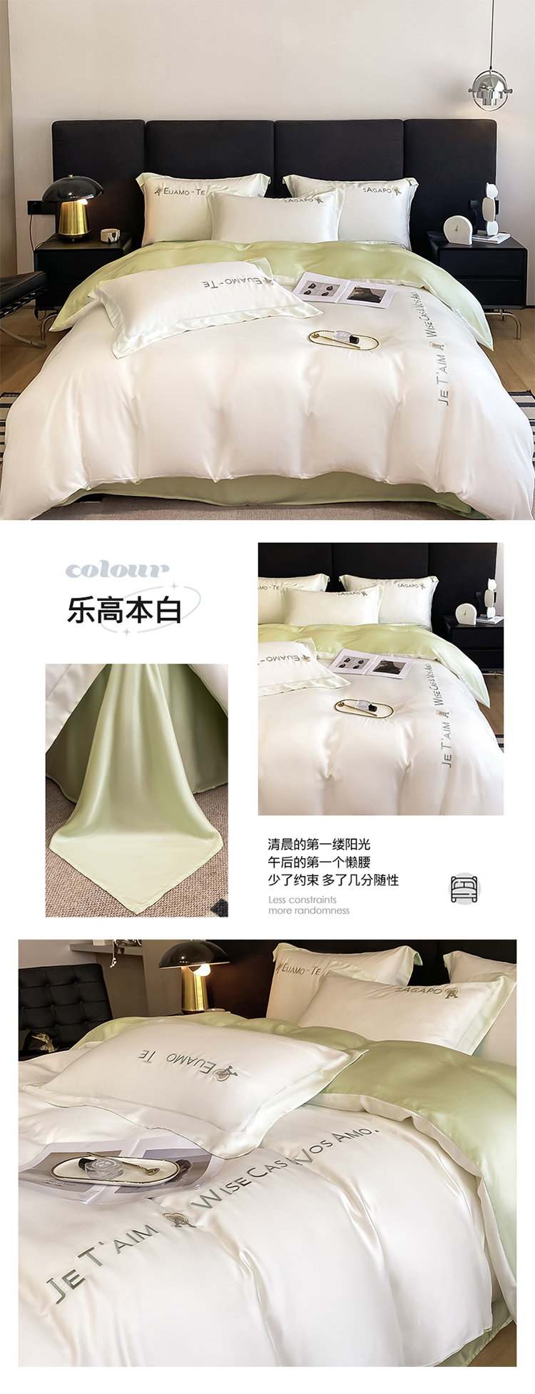 (总)金麦家纺 2025新款冰丝绣花四件套-心愿系列,心愿粉色,心愿燕麦奶,心愿天空蓝,心愿淡雅绿,心愿浅灰
